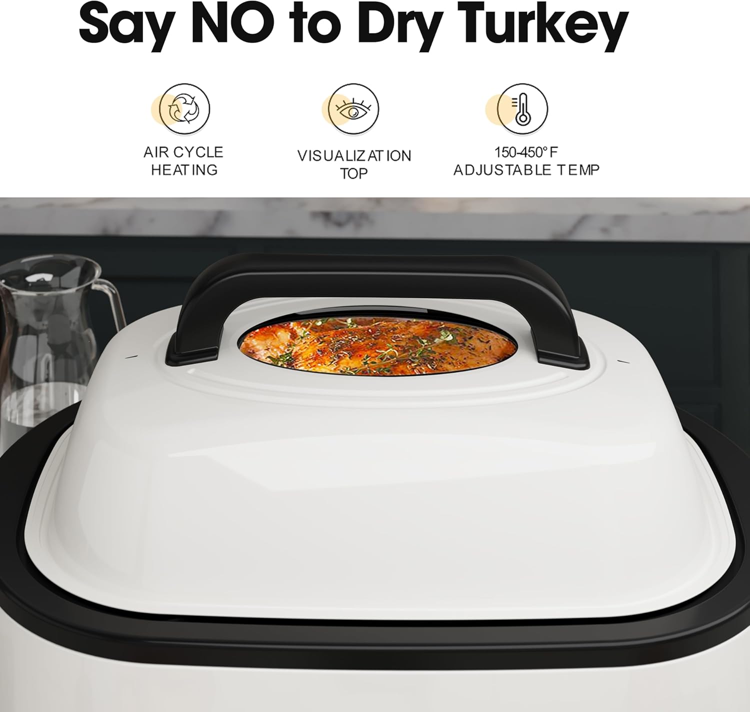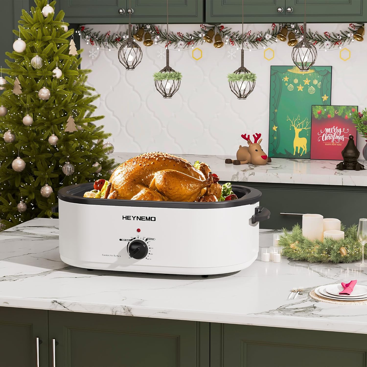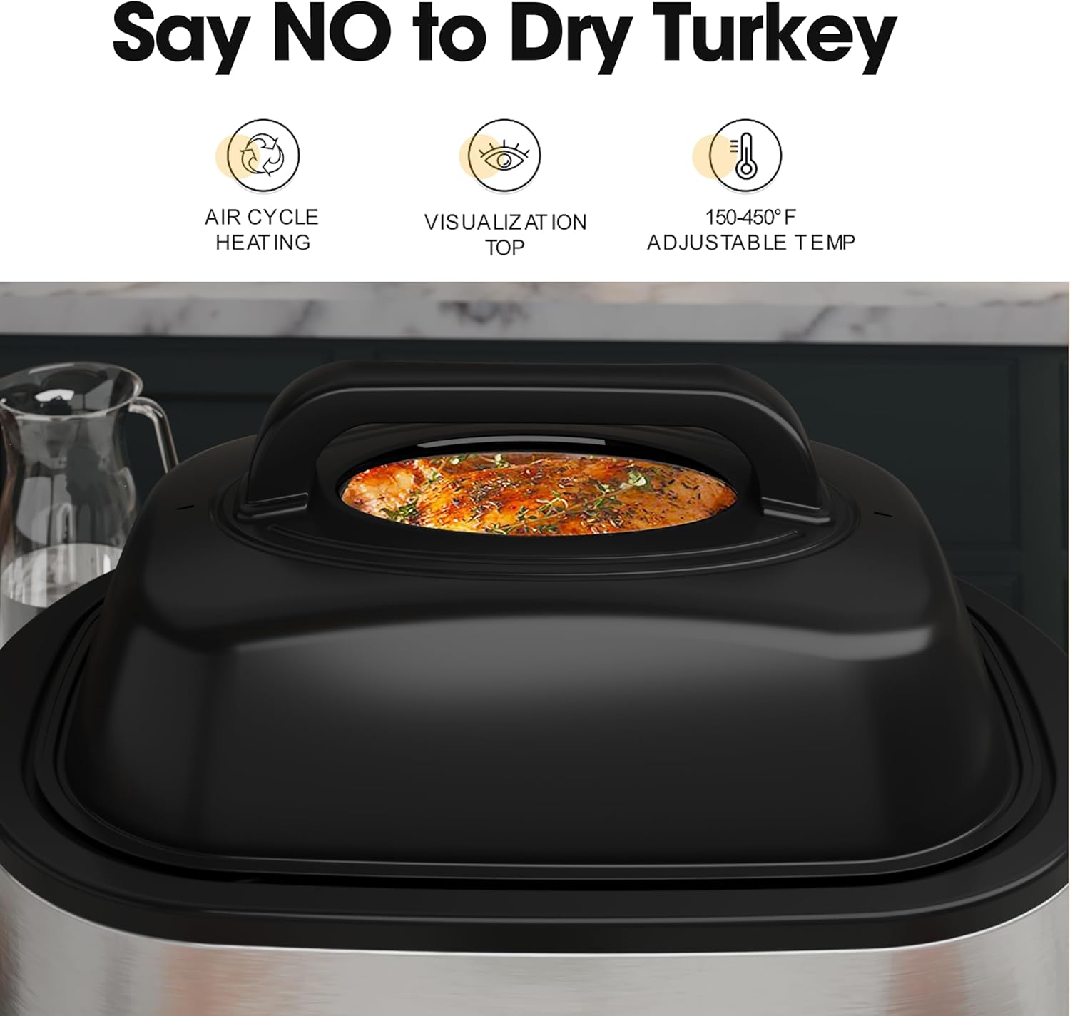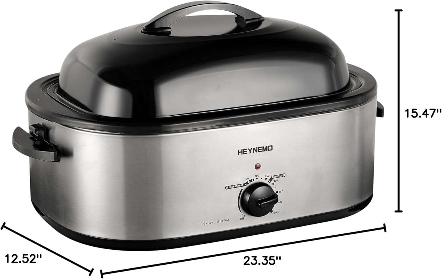 HEYNEMO Electric Roaster, Roaster Oven 26 Quart with Self-Basting Lid, Turkey Roaster Oven with Removable Pan and Rack, Adjustable Temperature Control Powerful 1450W Stainless Steel, Black