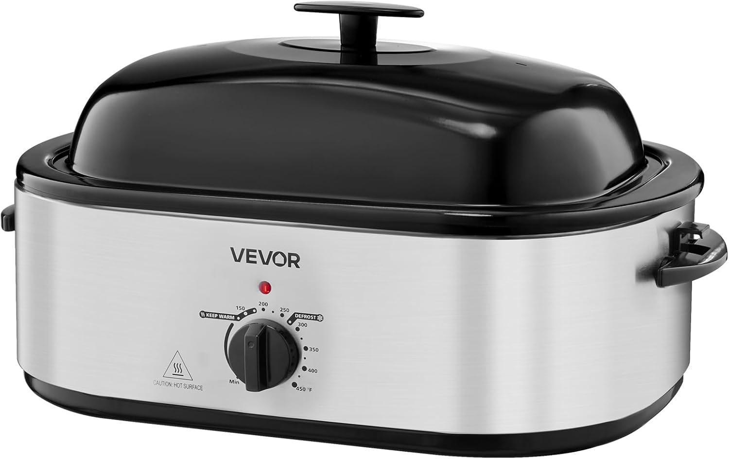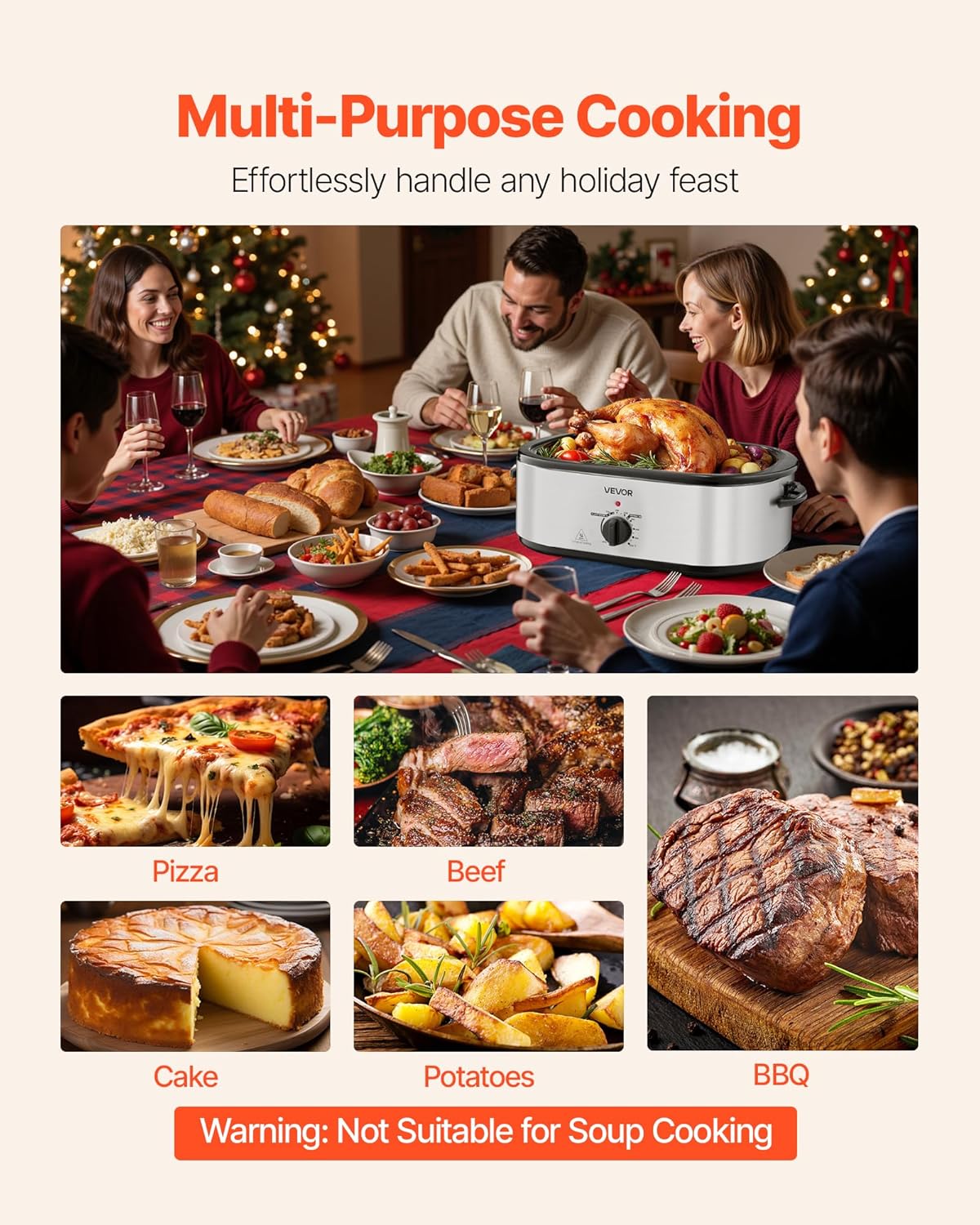 VEVOR Roaster Oven, 22QT Electric Roasting Pan, 150-450℉ Adjustable Temperature Multifunctional Electric Roaster Oven with Self-Basting Lid, Defrost & Warm Function for Holiday Meal, Fits 26lb Turkey