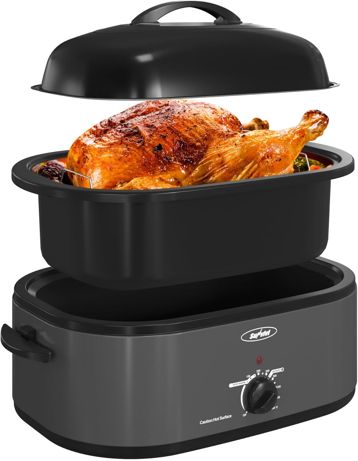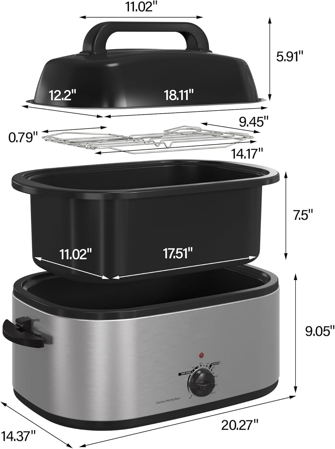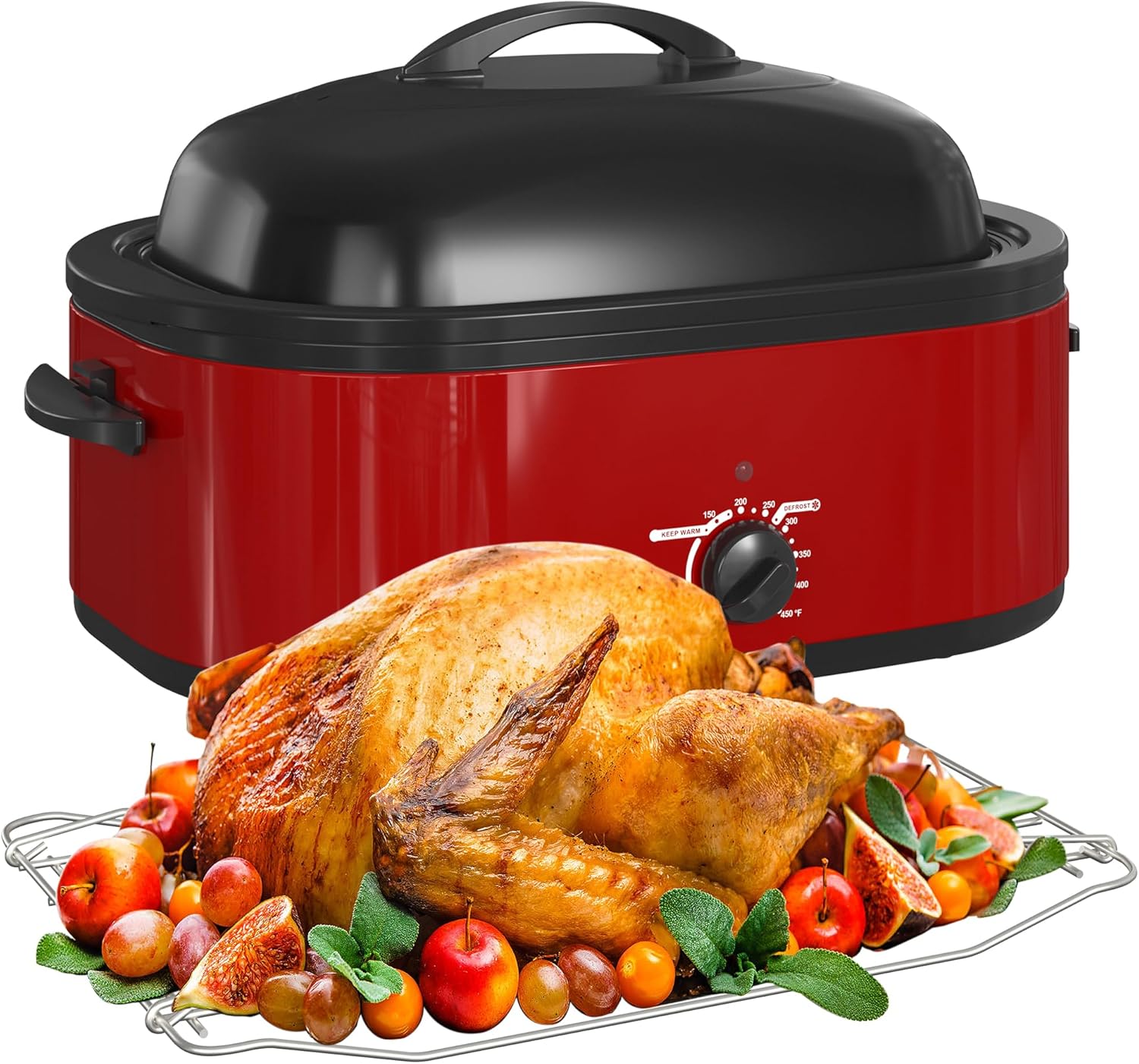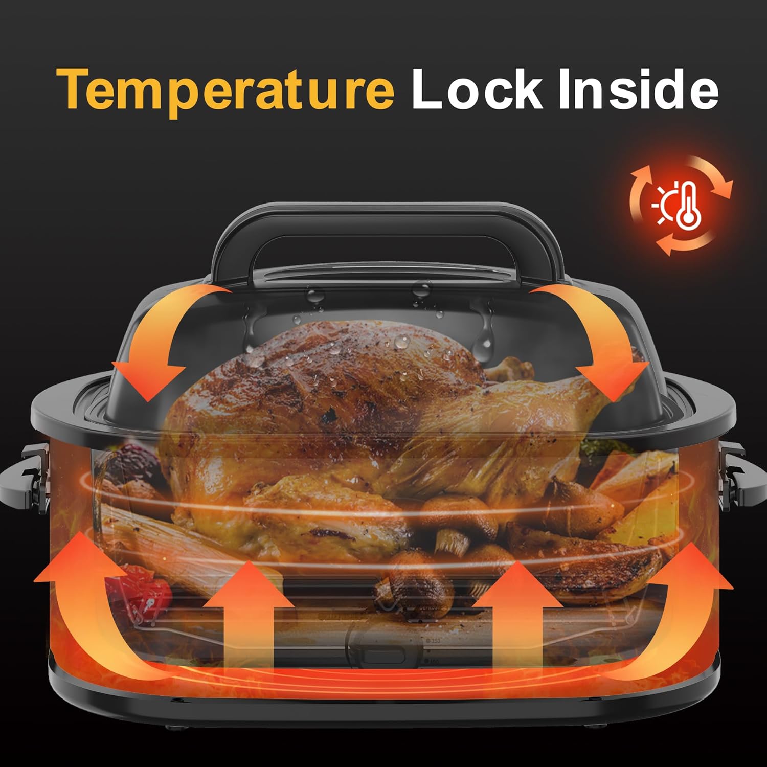 RoyalCraft 22-Quart Electric Roaster Oven with Visible Self-Basting Lid, Turkey Roaster Oven with Removable Pan and Rack, Perfect for Large Meals and Holiday Feasts, Silver