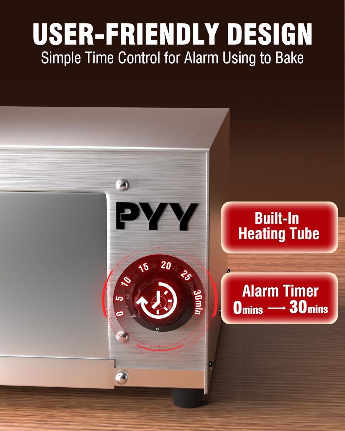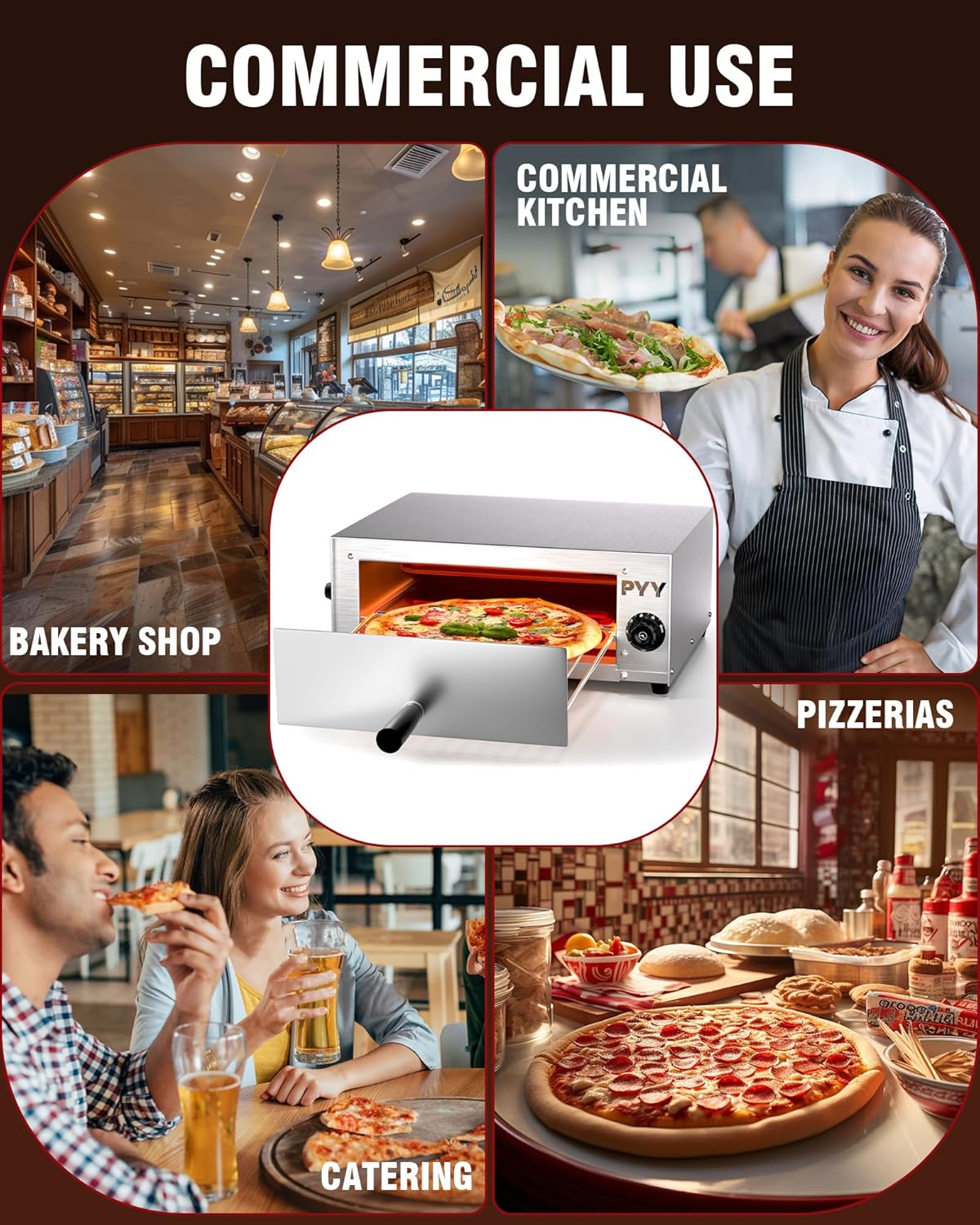 PYY Pizza Oven Electric - 12 Inch Tabletop Pizza Oven Indoor Stainless Steel Professional Pizza Cooker Baker Countertop with Timer & Crumb Tray for Home Restaurant 1100W,Silver