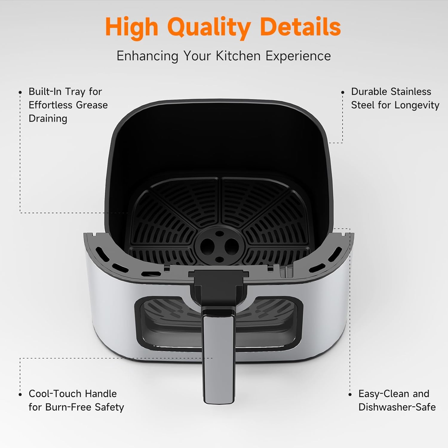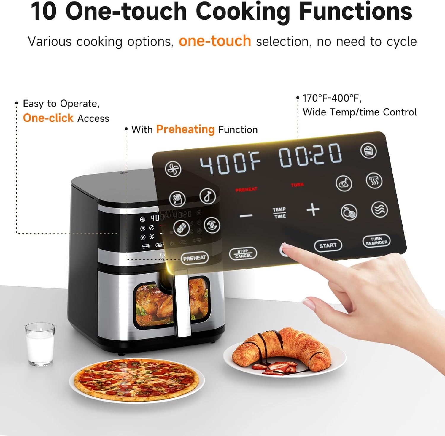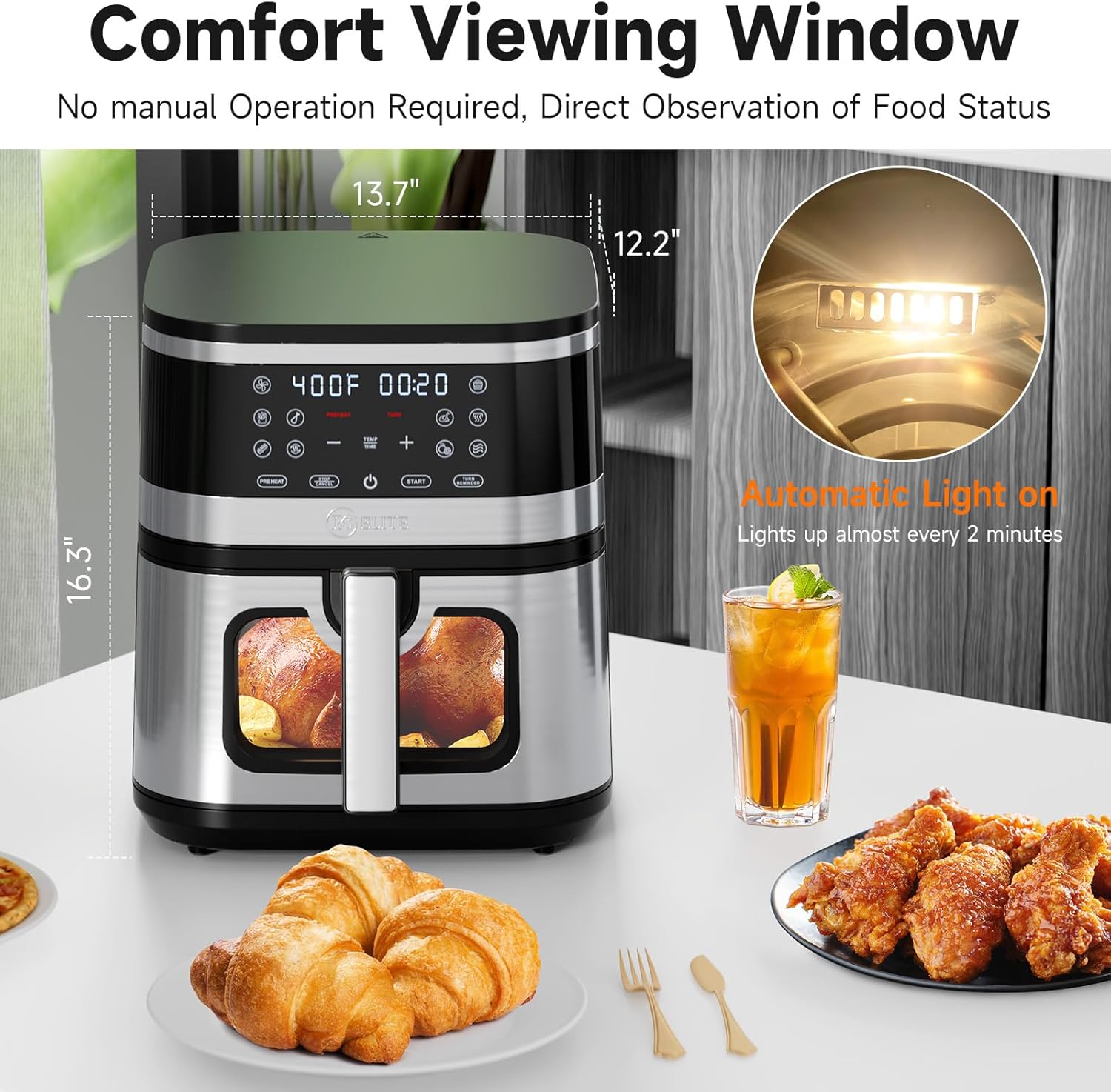 Kitchen Elite® Air Fryer Oven Stainless Steel, XL 8.5QT Large Airfryer with View Window, 10 one-touch Functions, Precise Temp Control, 90% Less Oil, Rapid Heating, Roast, Dehydrate, 1700W [Enhanced]