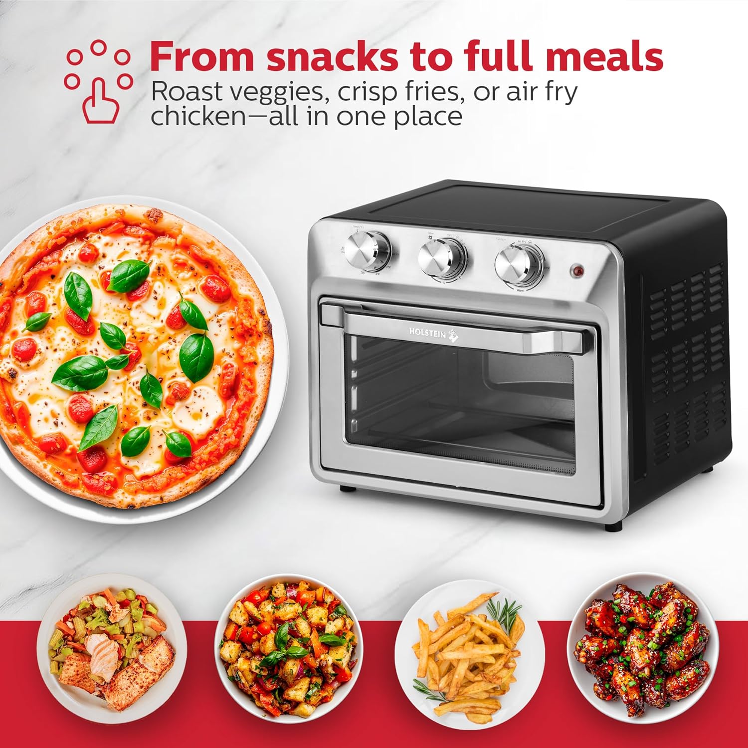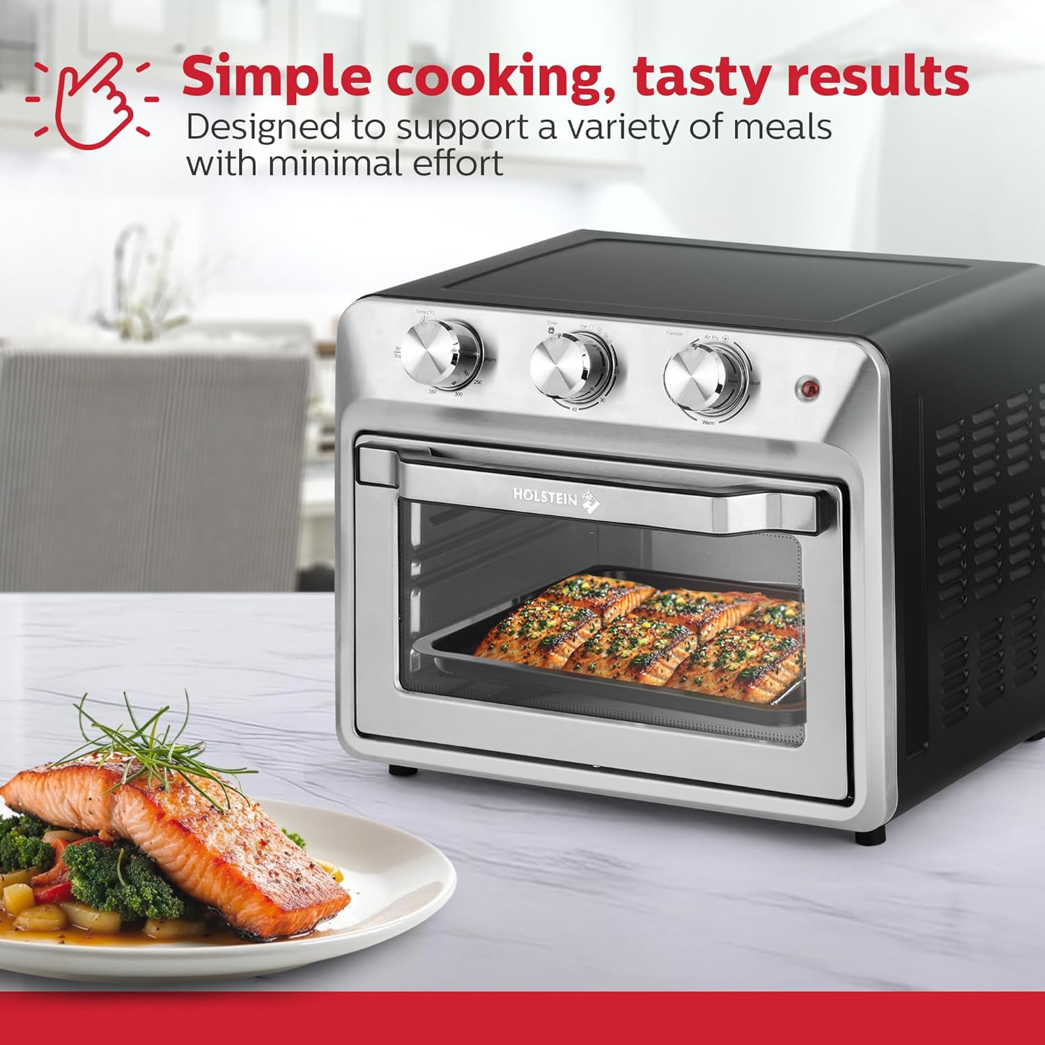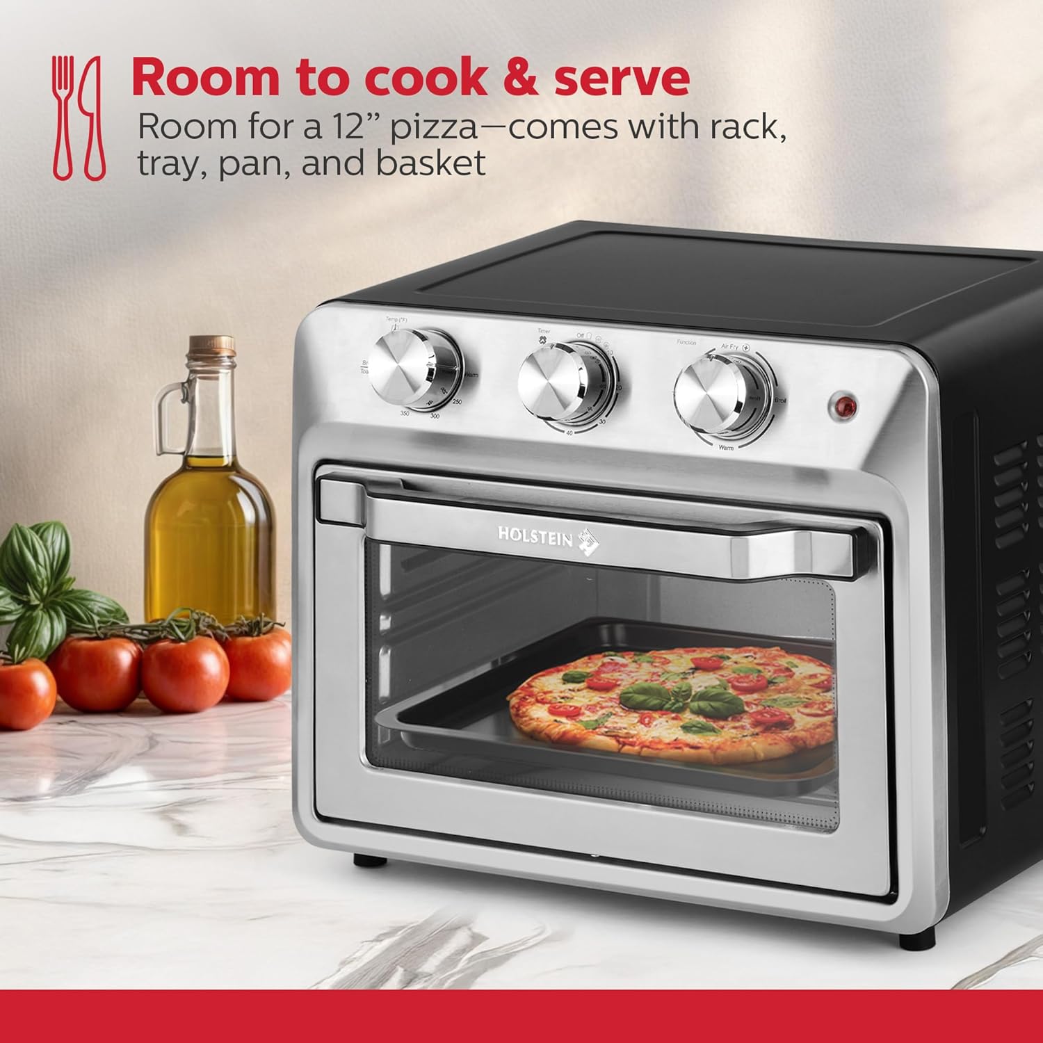 Holstein Housewares 21QT Air Fryer Oven. Multi-Function Countertop Oven for Toast, Bake, Broil, Roast & Air Fry with Glass Door, Timer & Dishwasher Safe Accessories. Large 6 Slice Capacity