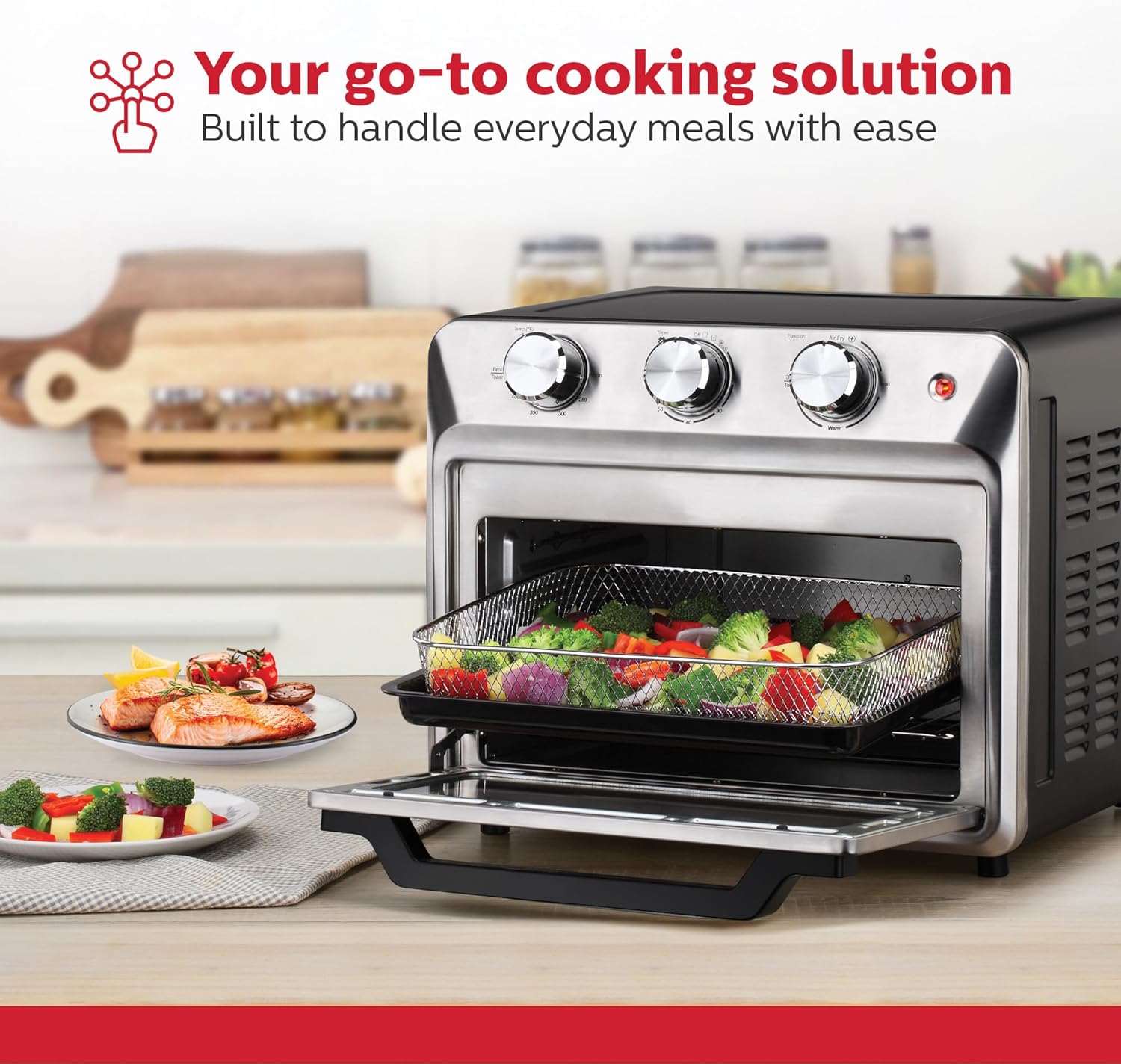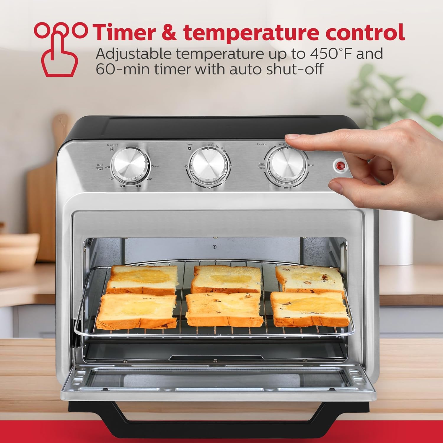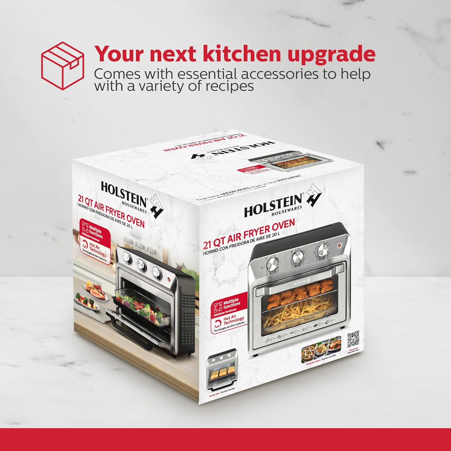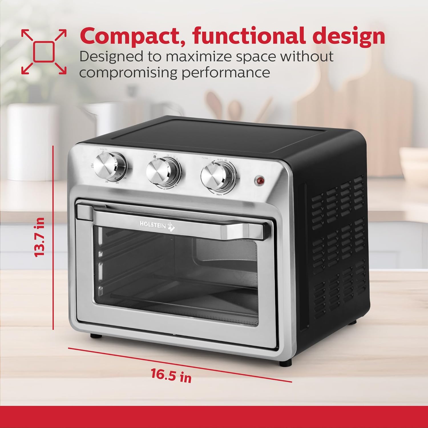 Holstein Housewares 21QT Air Fryer Oven. Multi-Function Countertop Oven for Toast, Bake, Broil, Roast & Air Fry with Glass Door, Timer & Dishwasher Safe Accessories. Large 6 Slice Capacity