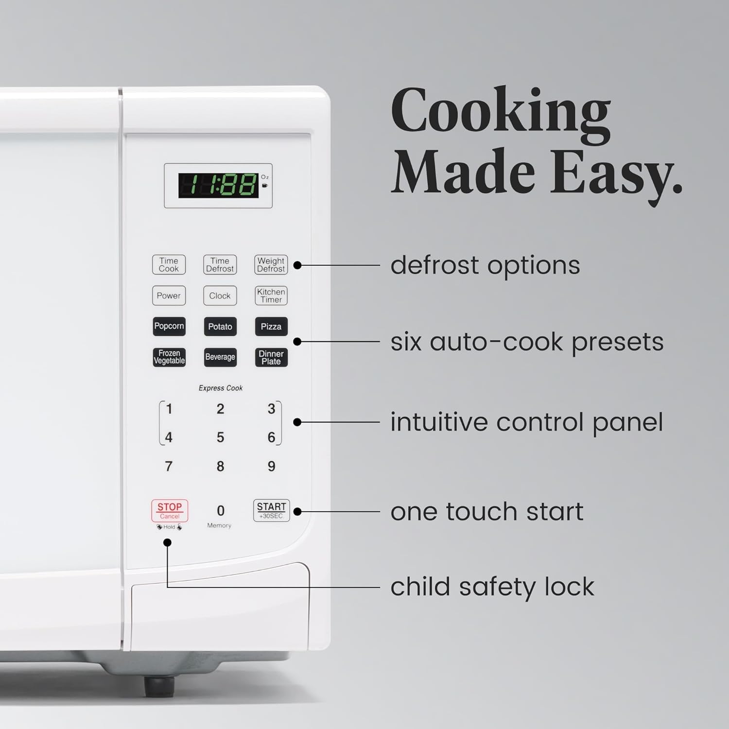 Frigidaire Countertop Microwave - Digital Control Panel - 6 Auto Cooking Settings - 10 Power Levels - Child Safety Lock - 0.7 Cu. Ft., White