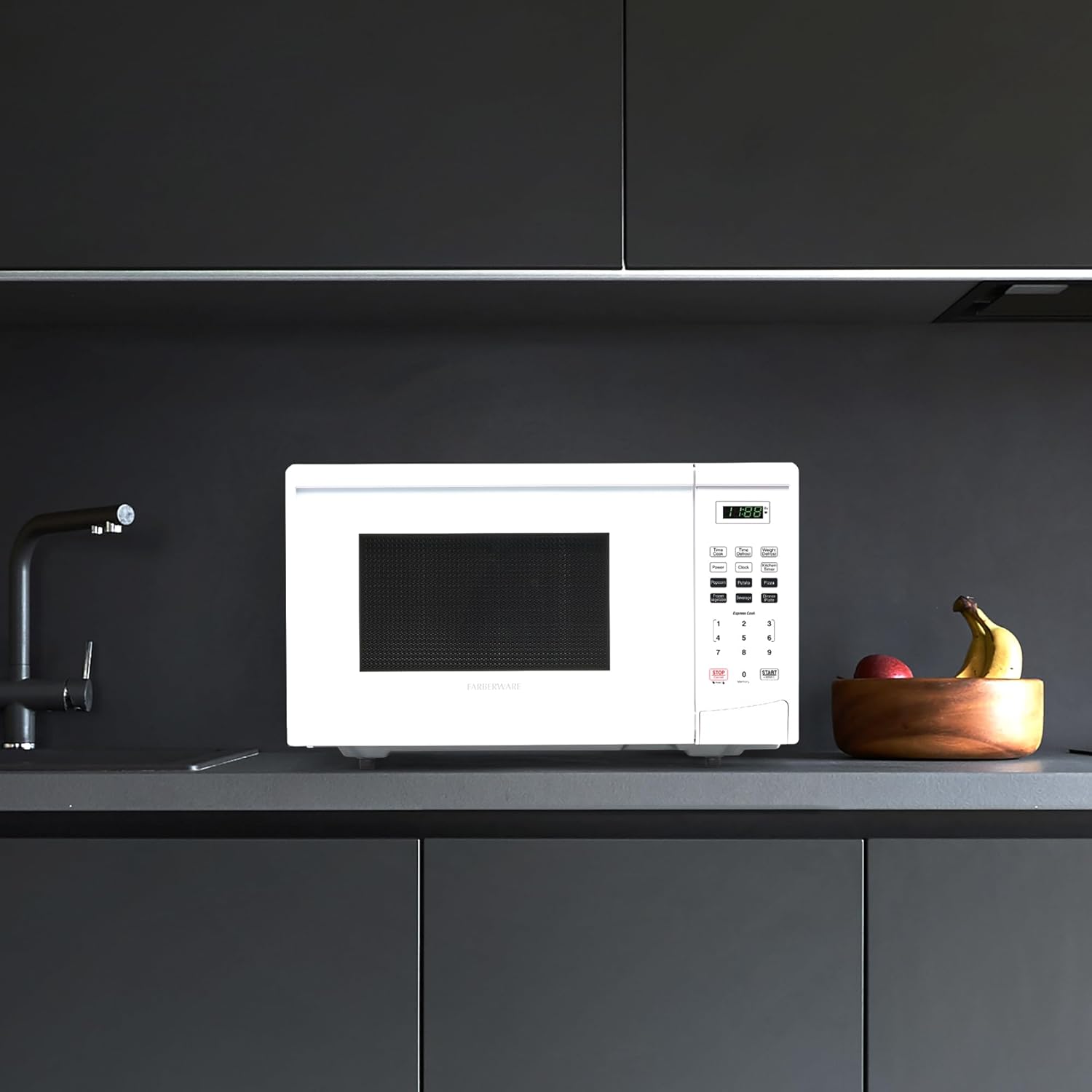 Farberware 0.9 Cu. Ft. Countertop Microwave Oven – 900 Watts Power, Auto Cook Settings, Defrost, Easy Clean and Child Safety Lock - Black