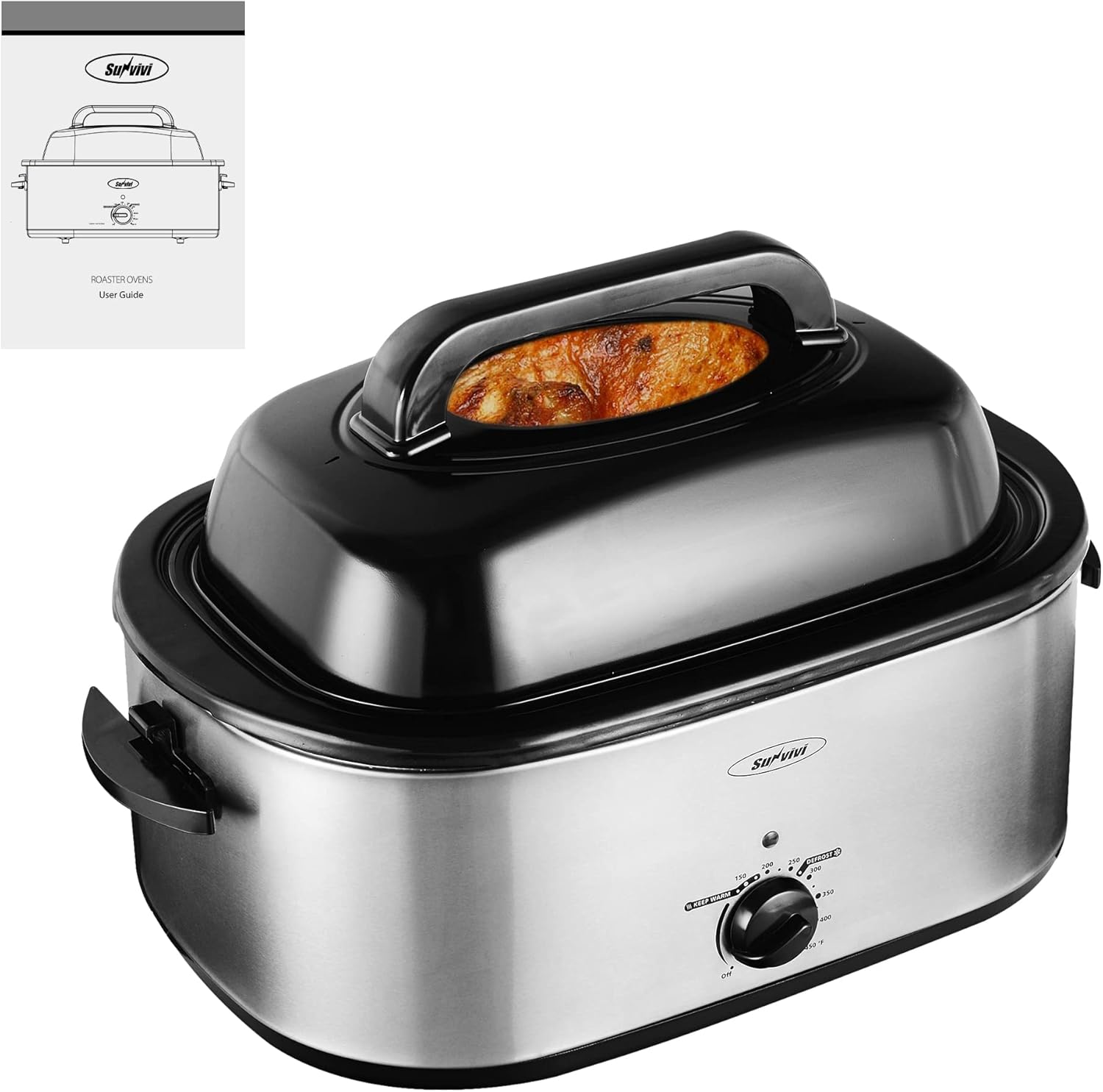 Roaster Oven, Electric Roaster Oven with Viewing Lid, Large Roaster with Removable Pan & Rack, Turkey Roaster with Unique Defrost/Warm Function, Stainless Steel, Sliver, 22QT