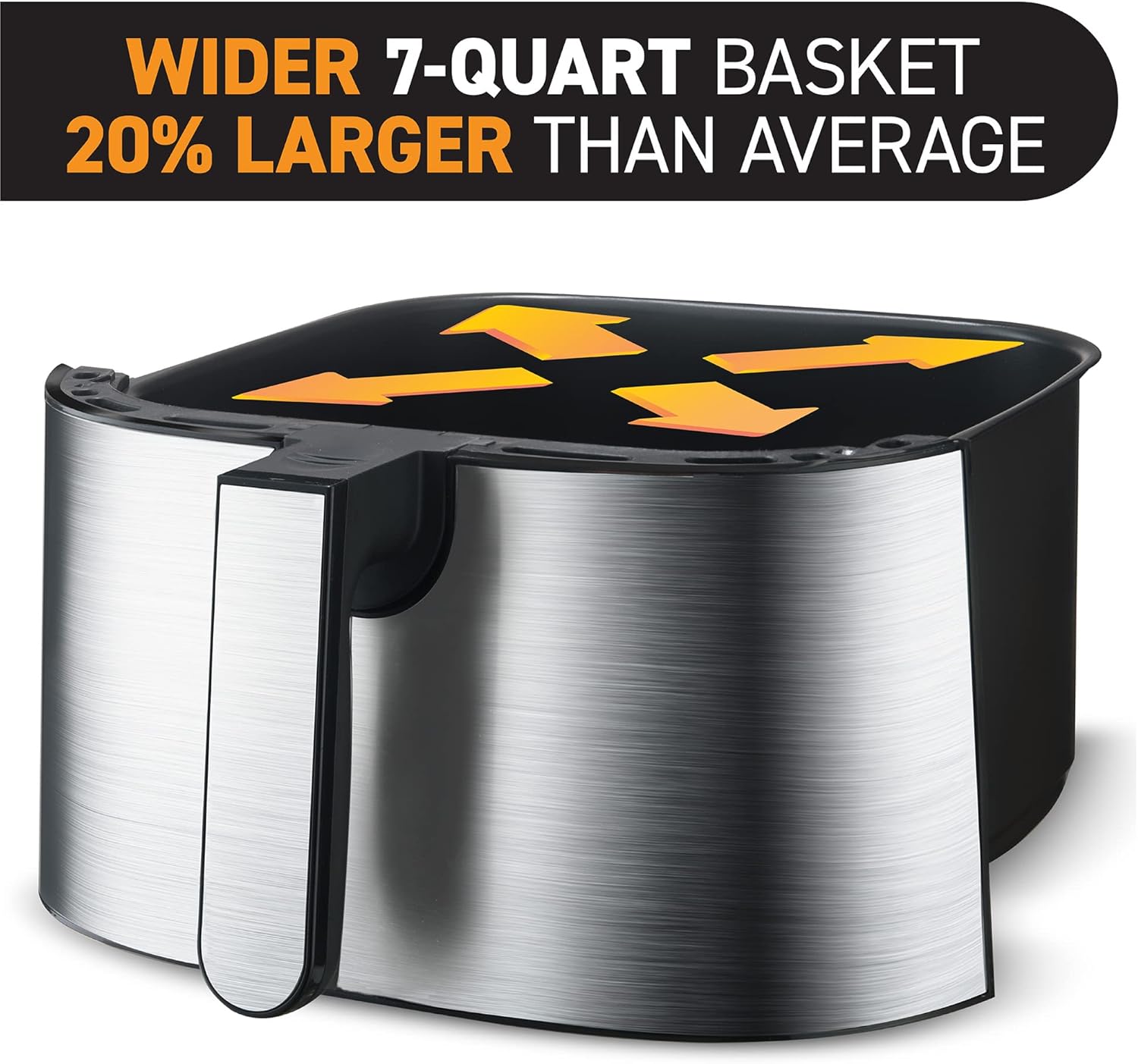 Gourmia Air Fryer Oven Digital Display 7 Quart Large AirFryer Cooker 12 Touch Cooking Presets, XL Air Fryer Basket 1700w Power Multifunction GAF778 Black and stainless steel air fryer FryForce 360°