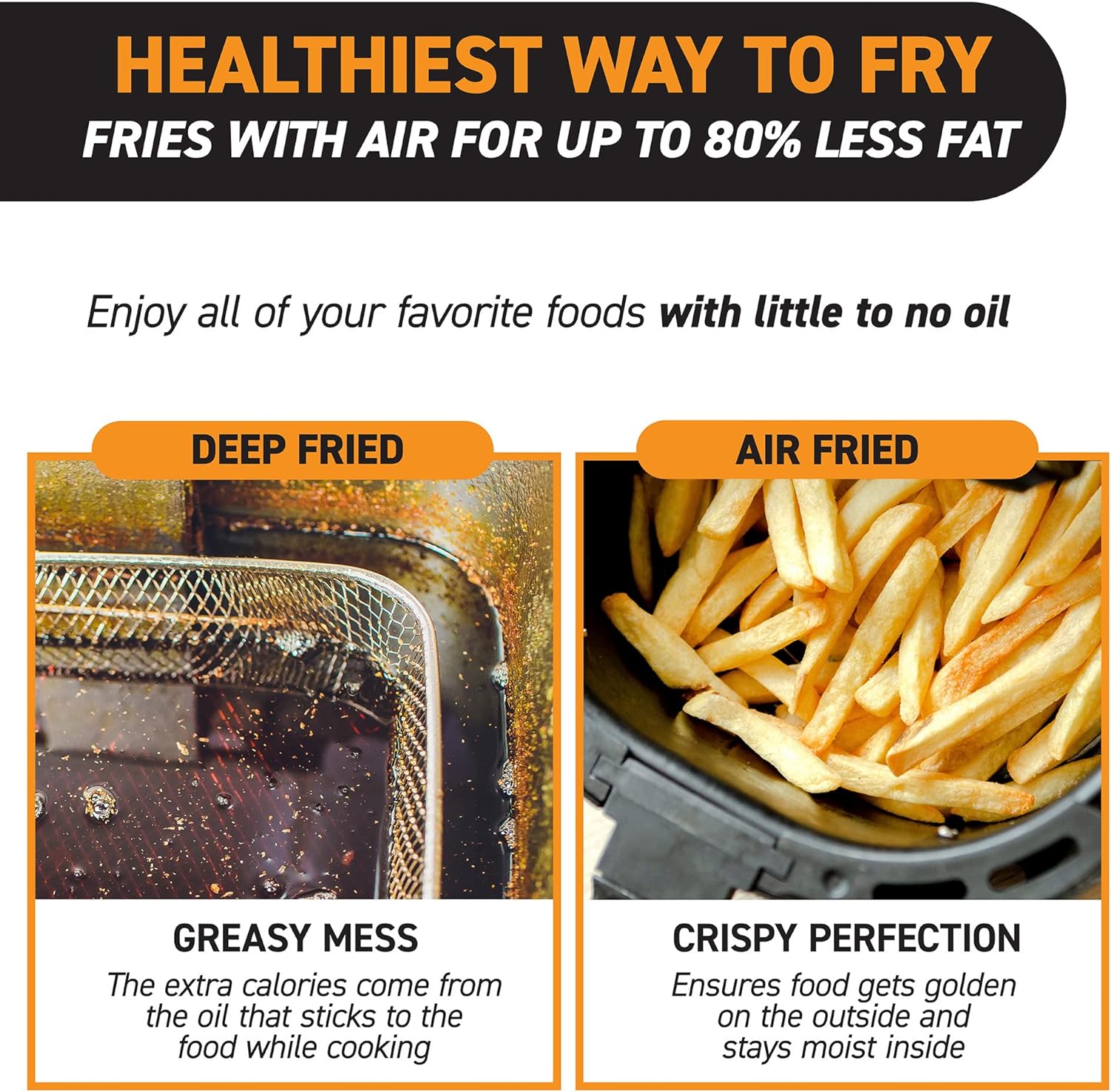 Air Fryer, 6.2QT Air Fryer Oven with LED Digital Touchscreen, 12 Preset Cooking Functions Air fryers, Bake, Reheat, Keep Warm, Nonstick and Dishwasher-Safe Basket, Stainless Steel/Black