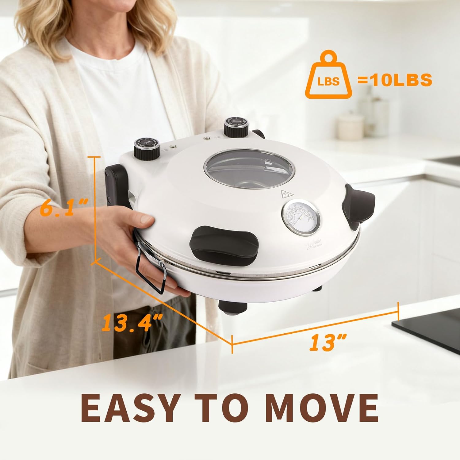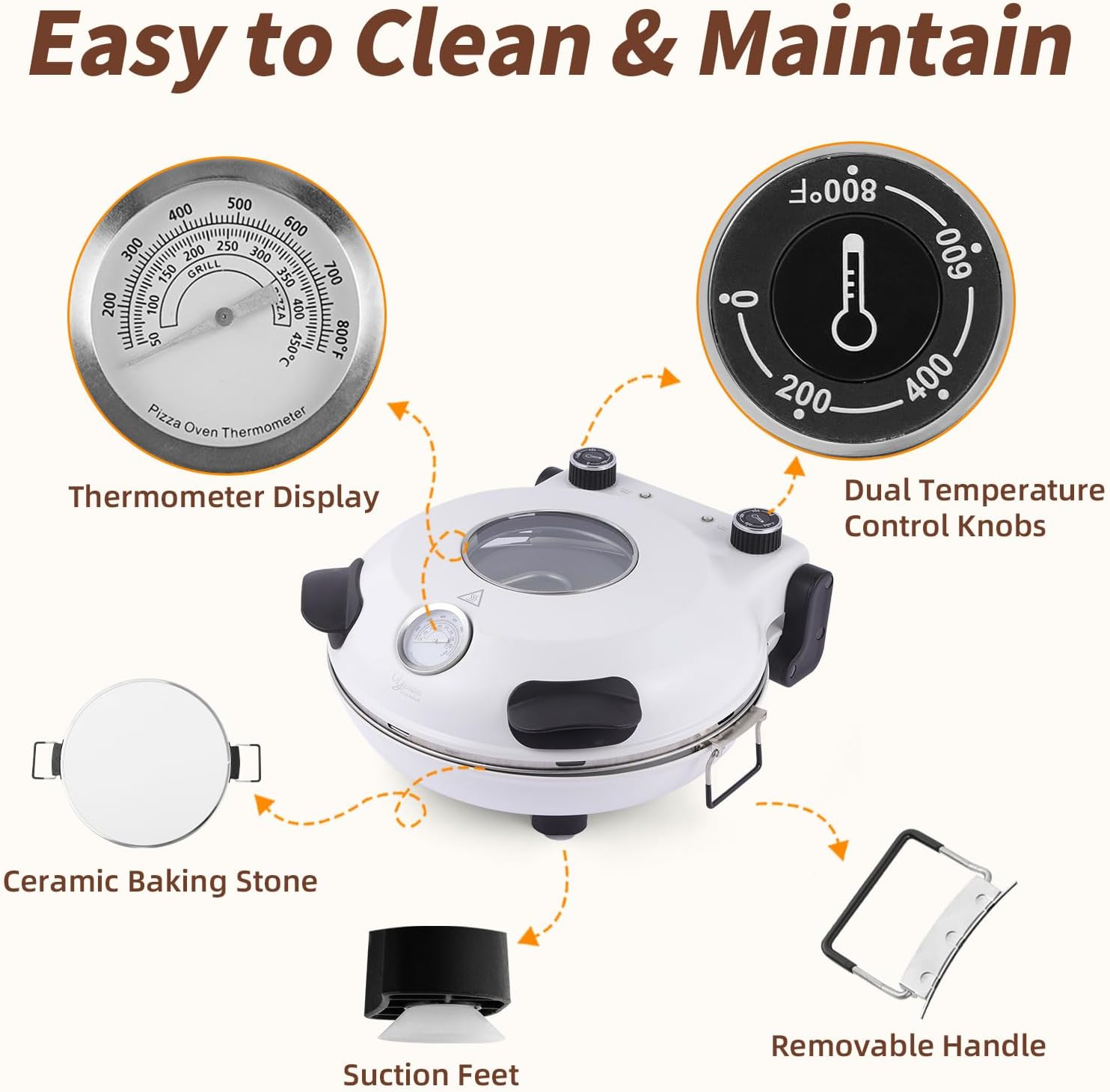 12" Electric Pizza Oven - Countertop Pizza Maker with Ceramic Stone, Heats up to 800°F, Portable Indoor Pizza Oven for Homemade Pizzas, White