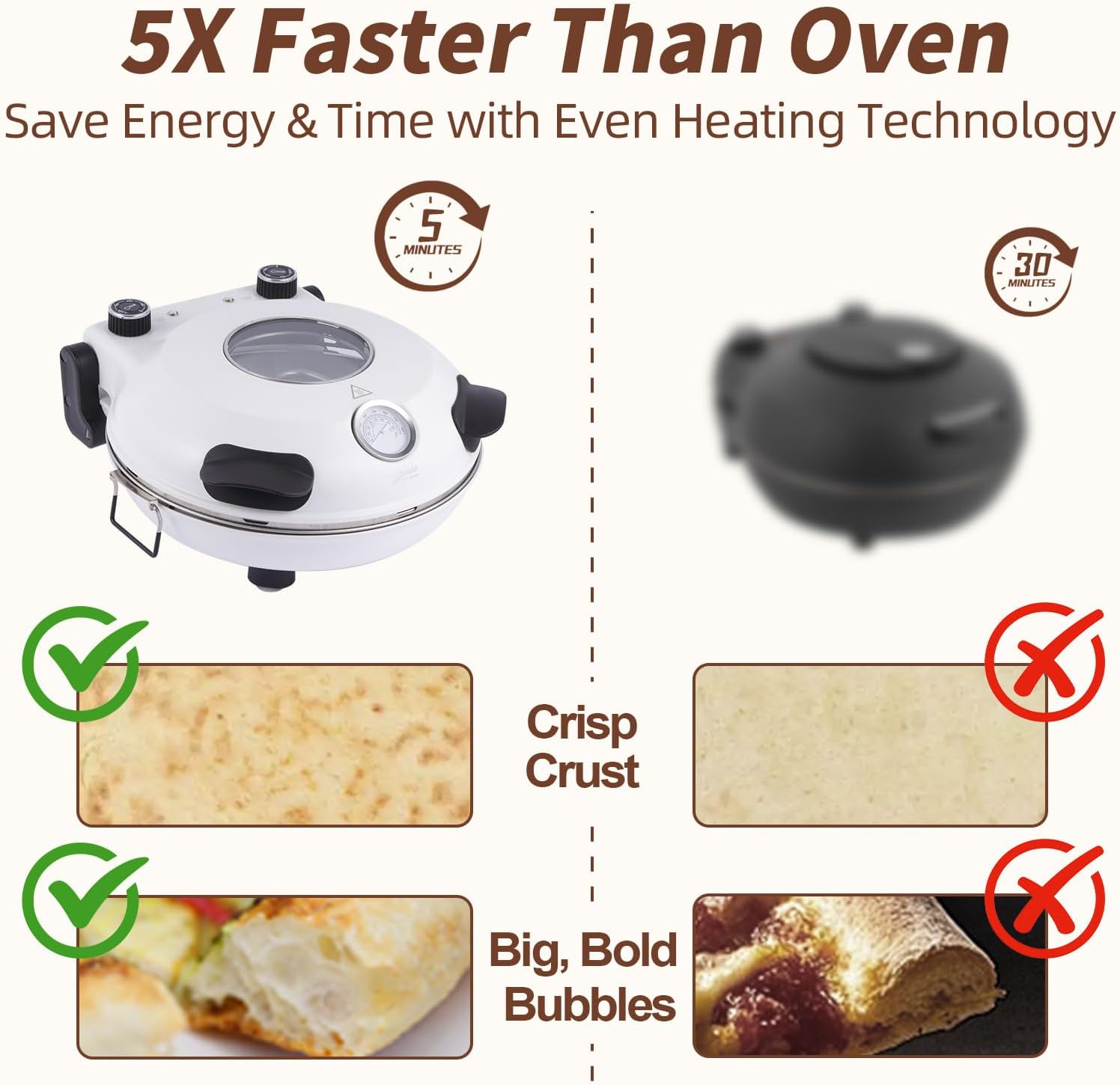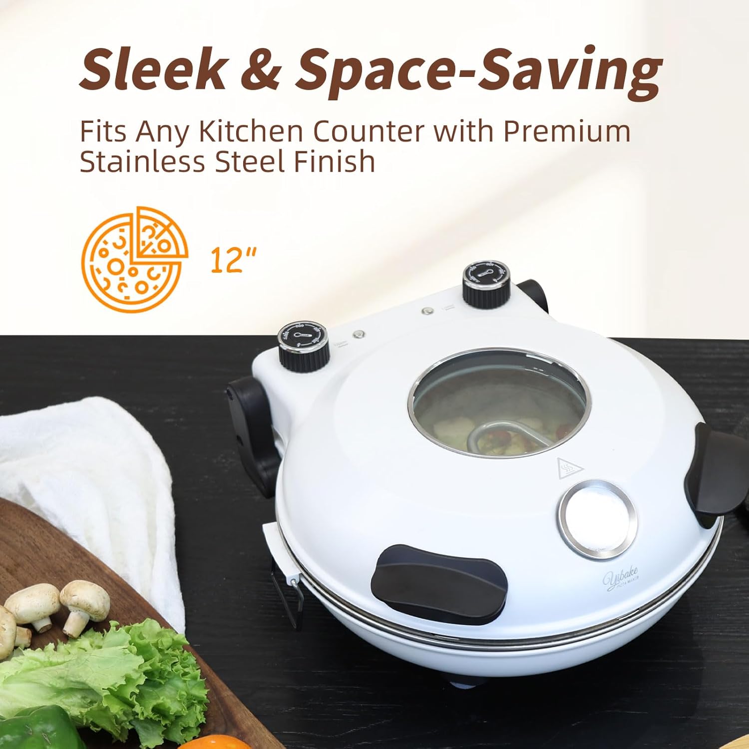 Pizza Oven Indoor, 12 Inch Retro Pizza Maker, Rapid Heating 800˚F, 1200W Glazed Ceramic Stone Electric Pizza Cooker, Two-button Precise Temperature Control, Viewing Window for Precise Cooking