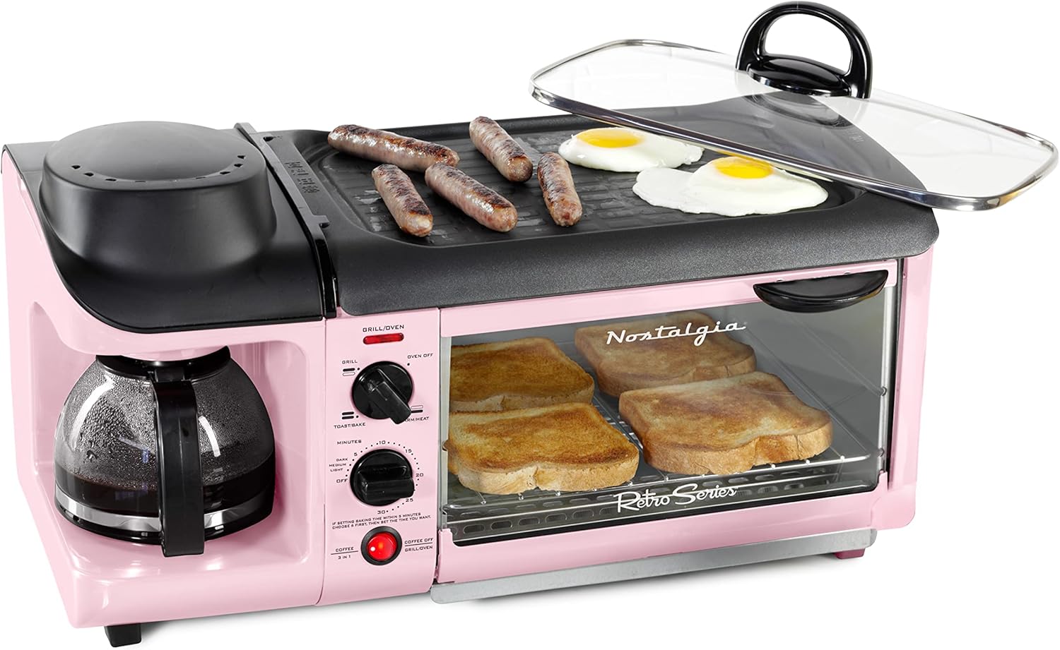 Nostalgia 3-in-1 Breakfast Station - Includes Coffee Maker, Non-Stick Griddle, and 4-Slice Toaster Oven - Versatile Breakfast Maker with Timer - Red