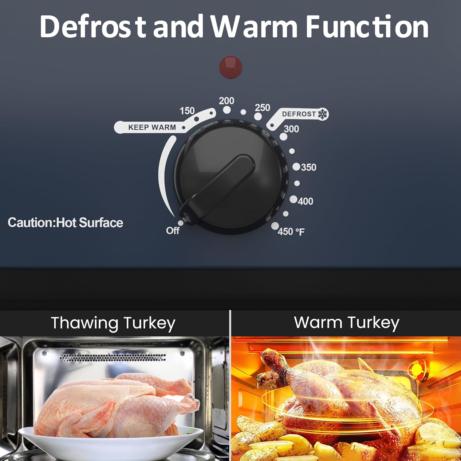 Sunvivi 20QT Roaster Oven, Electric Roaster with 3 Compartments, Turkey Roaster Oven with Self-Basting Lid, Removable Pan & Rack, Defrost & Warm Function, Fit Turkey Up to 24LB, Stainless Steel, Blue