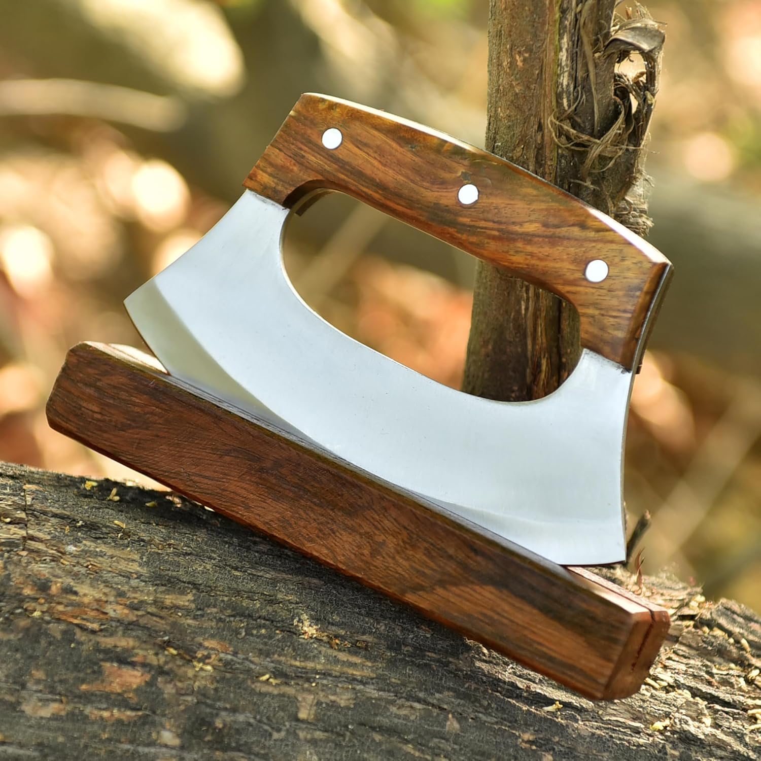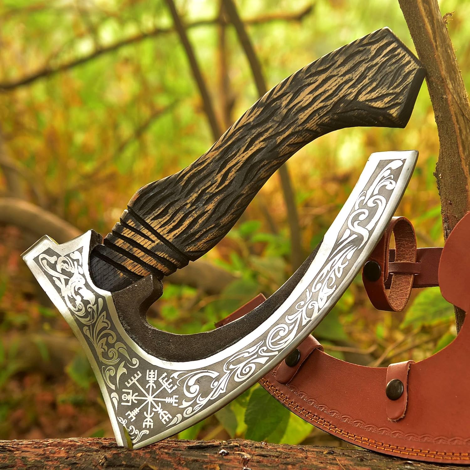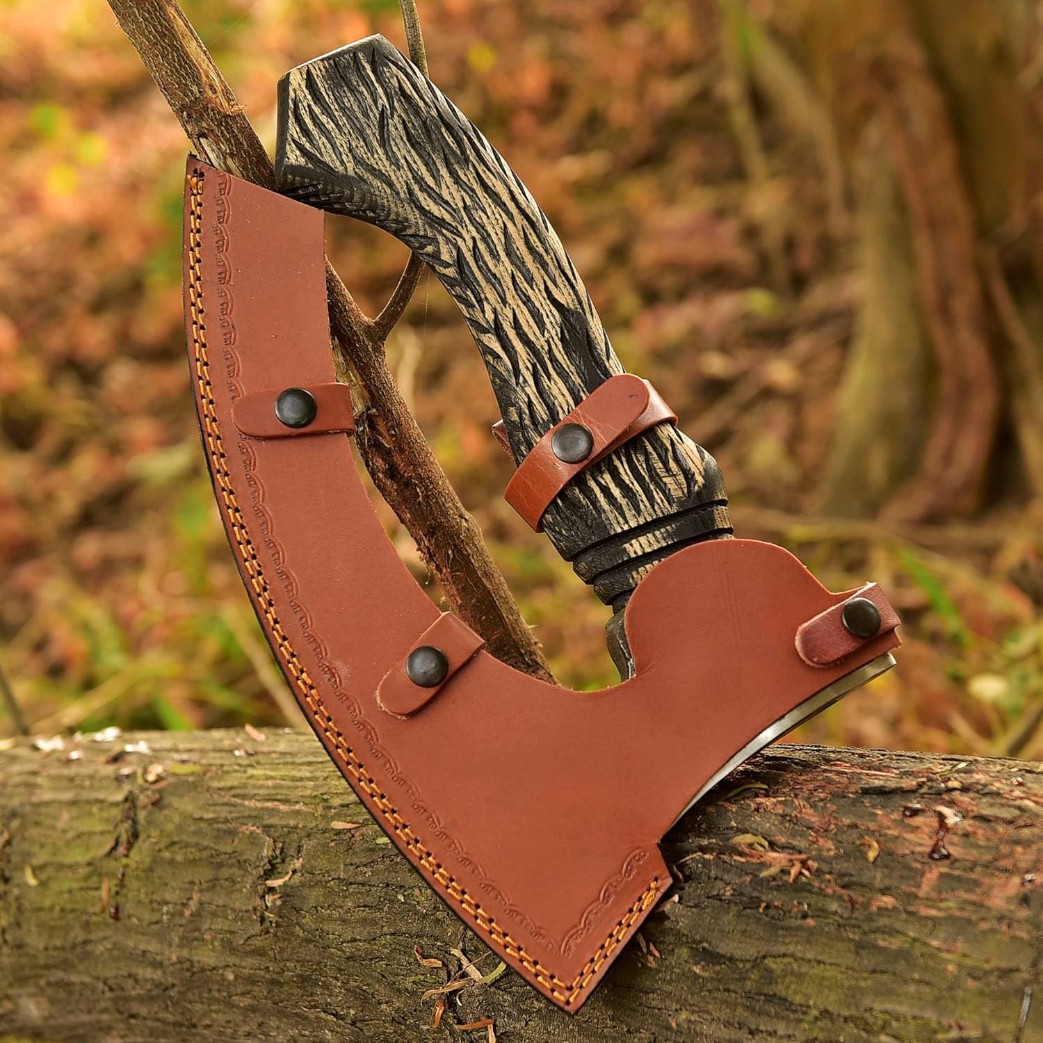 Viking Pizza Cutter Hand Forged Hatchet Mini Axe | Carbon Steel Slicer Chef Axe With Leather Sheath | Premium Pizza Oven Accessories for Camping, Hunting & Gifts for Men