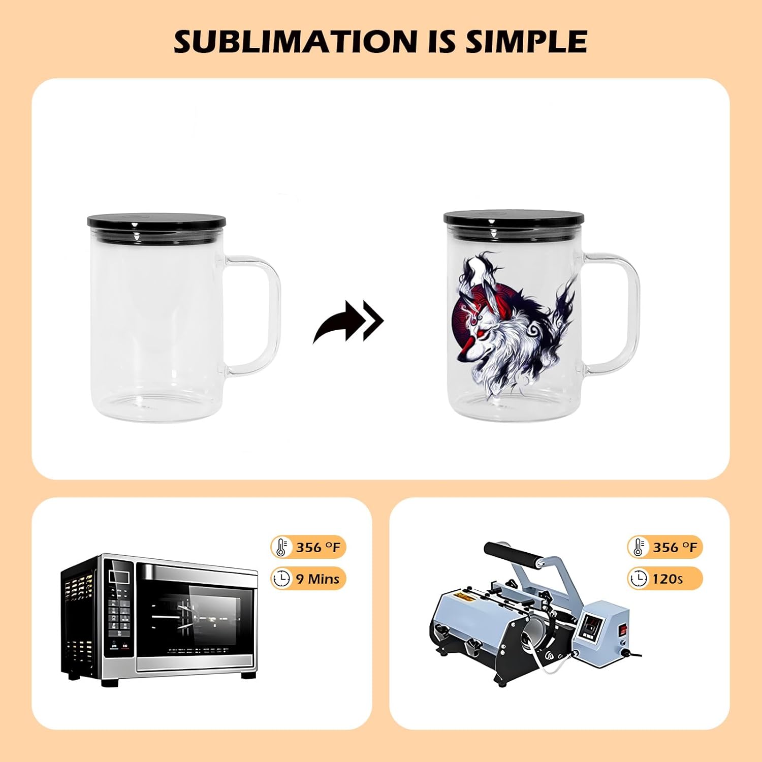 17 oz Sublimation Glass Cup with Handle, 25 pack Sublimation Glass Tumblers with Colored Acrylic Lid, Beer Glasses With Handle, Suitable for coffee, milk, beer, Individual box, clear