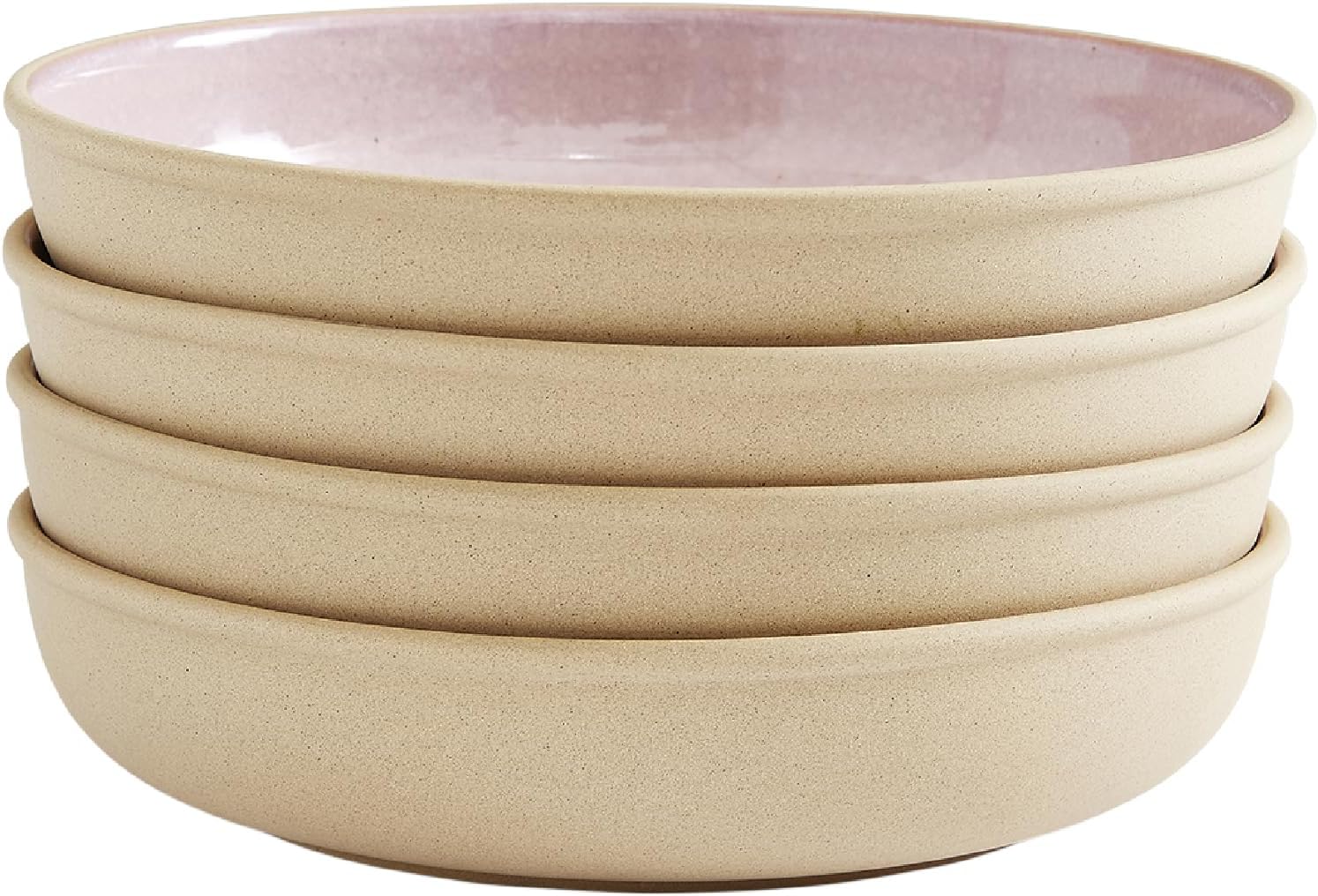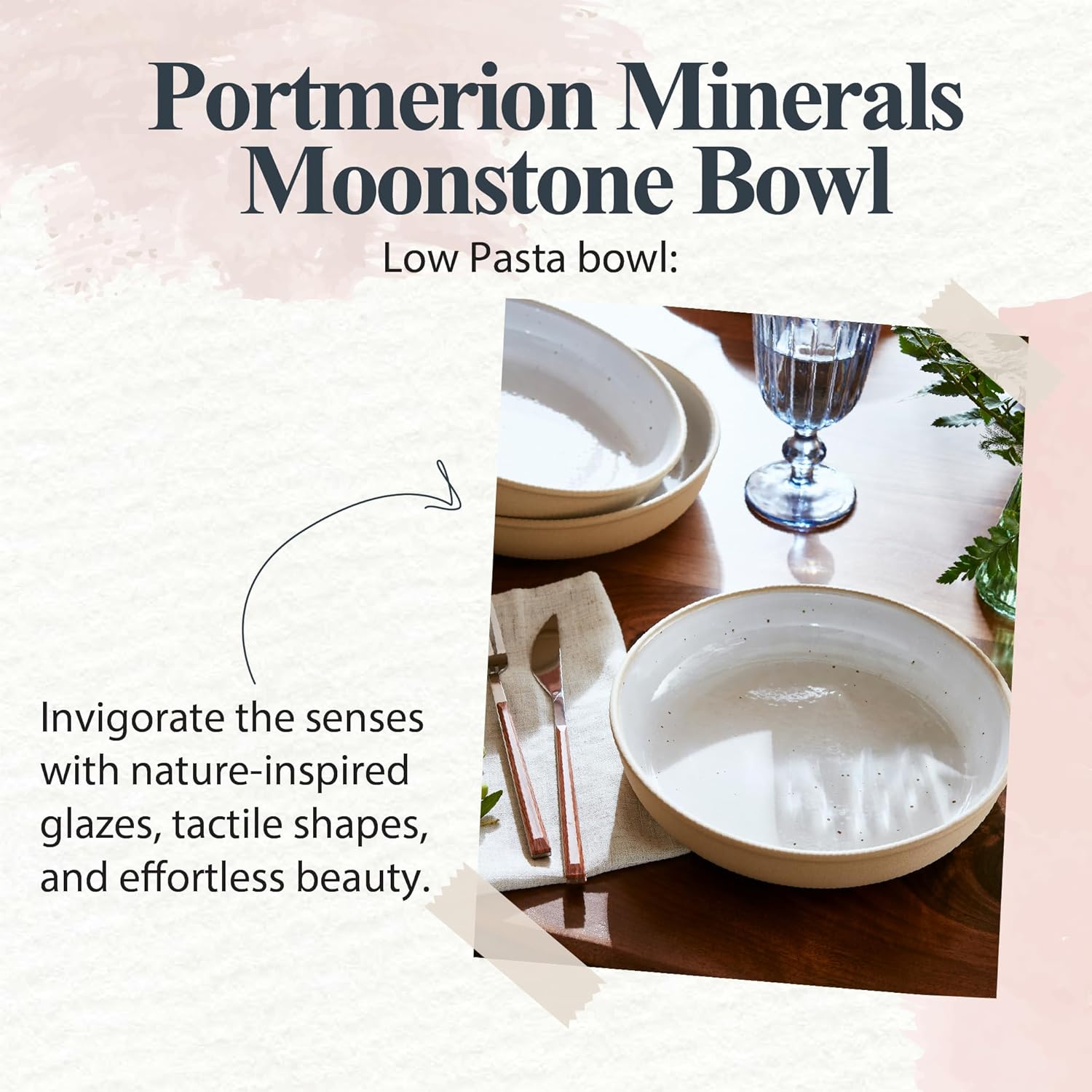 Portmeirion Minerals 8.7-Inch Low Serving Bowl, Moonstone (Set of 4) - Made in Portugal, Unique Stoneware Glaze for Kitchen, Microwave & Dishwasher Safe - Shallow Tableware for Cereal, Soup, Salad