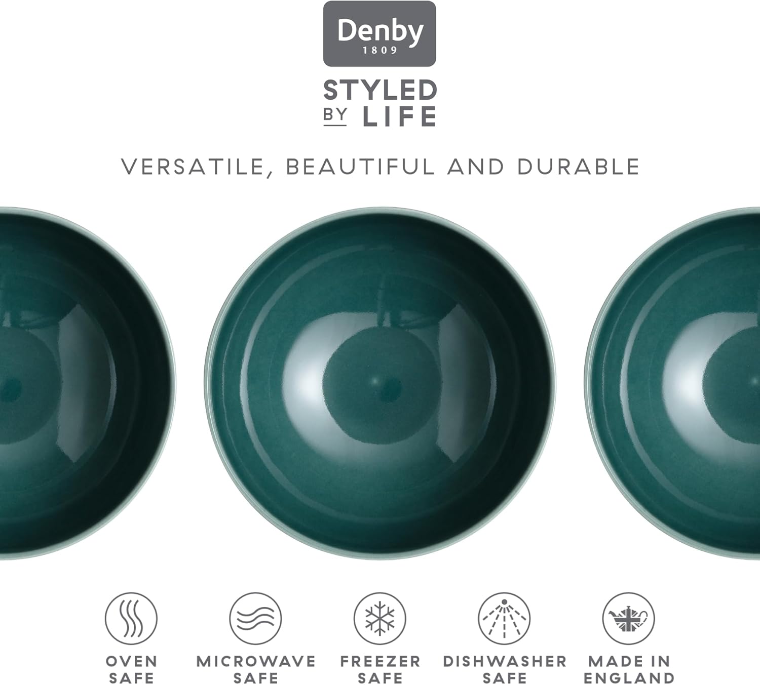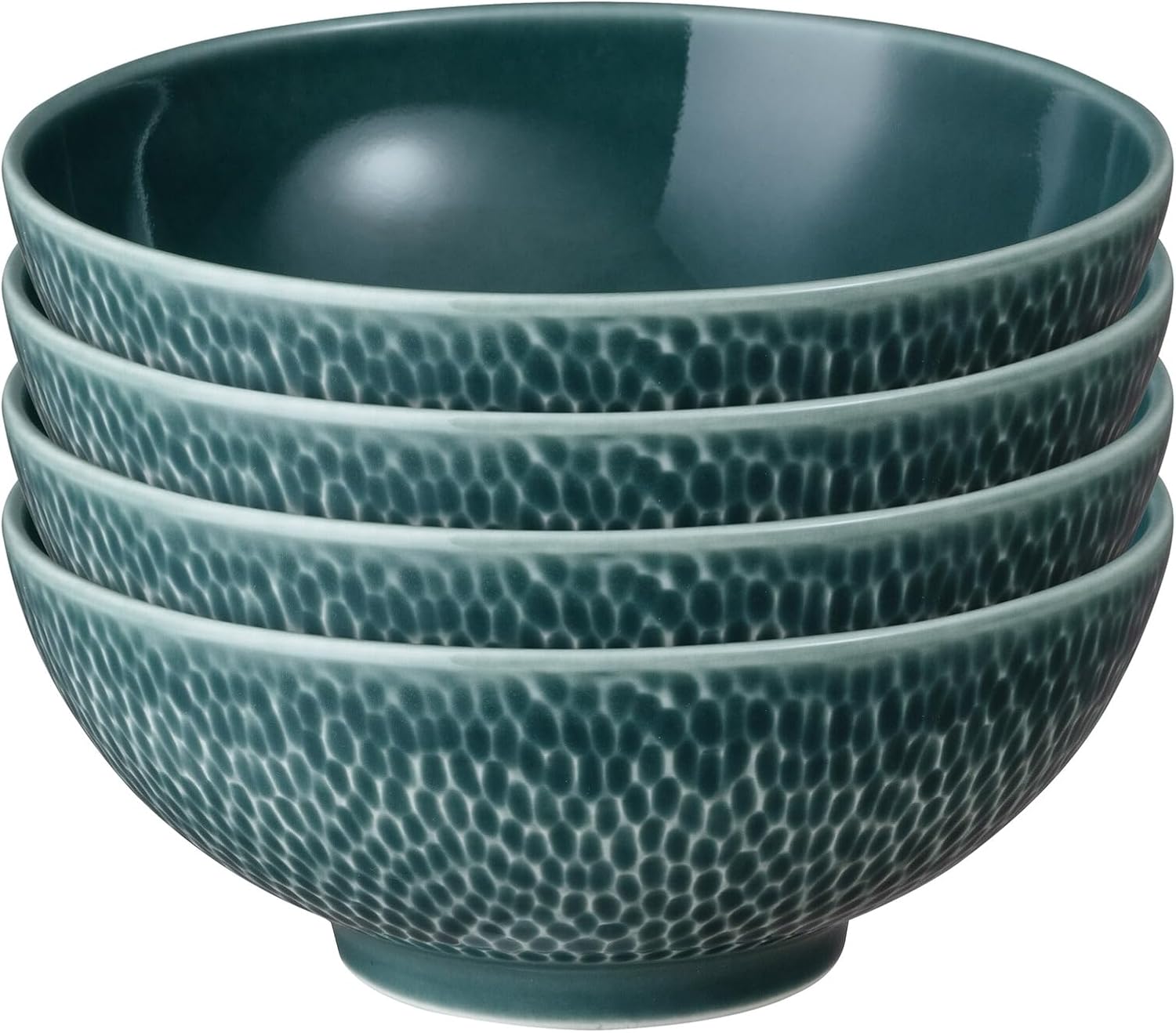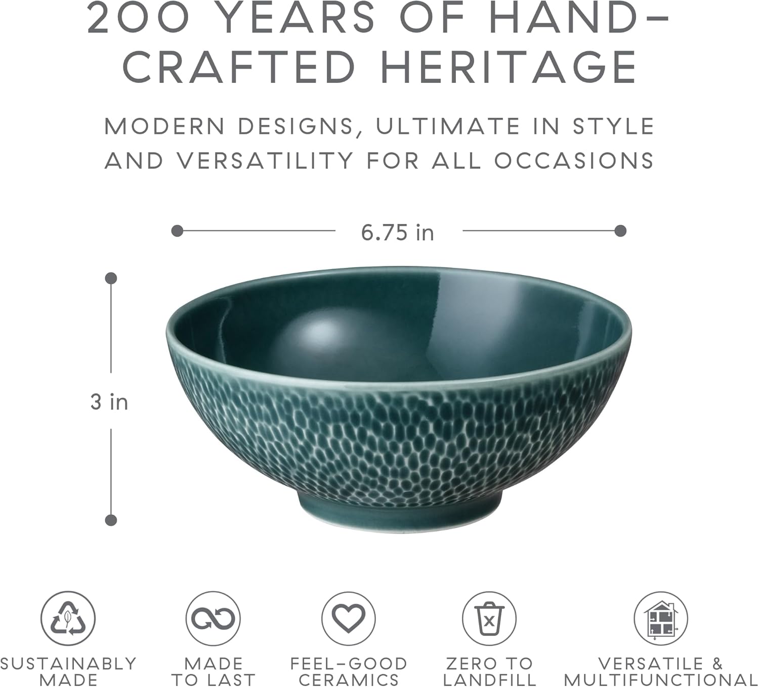 Denby - Carved Green Cereal Bowls Set of 4-6.75 Inch - Dishwasher Microwave Oven Safe - Uniquely Textured Porcelain Cereal Bowls - Scratch Chip Resistant