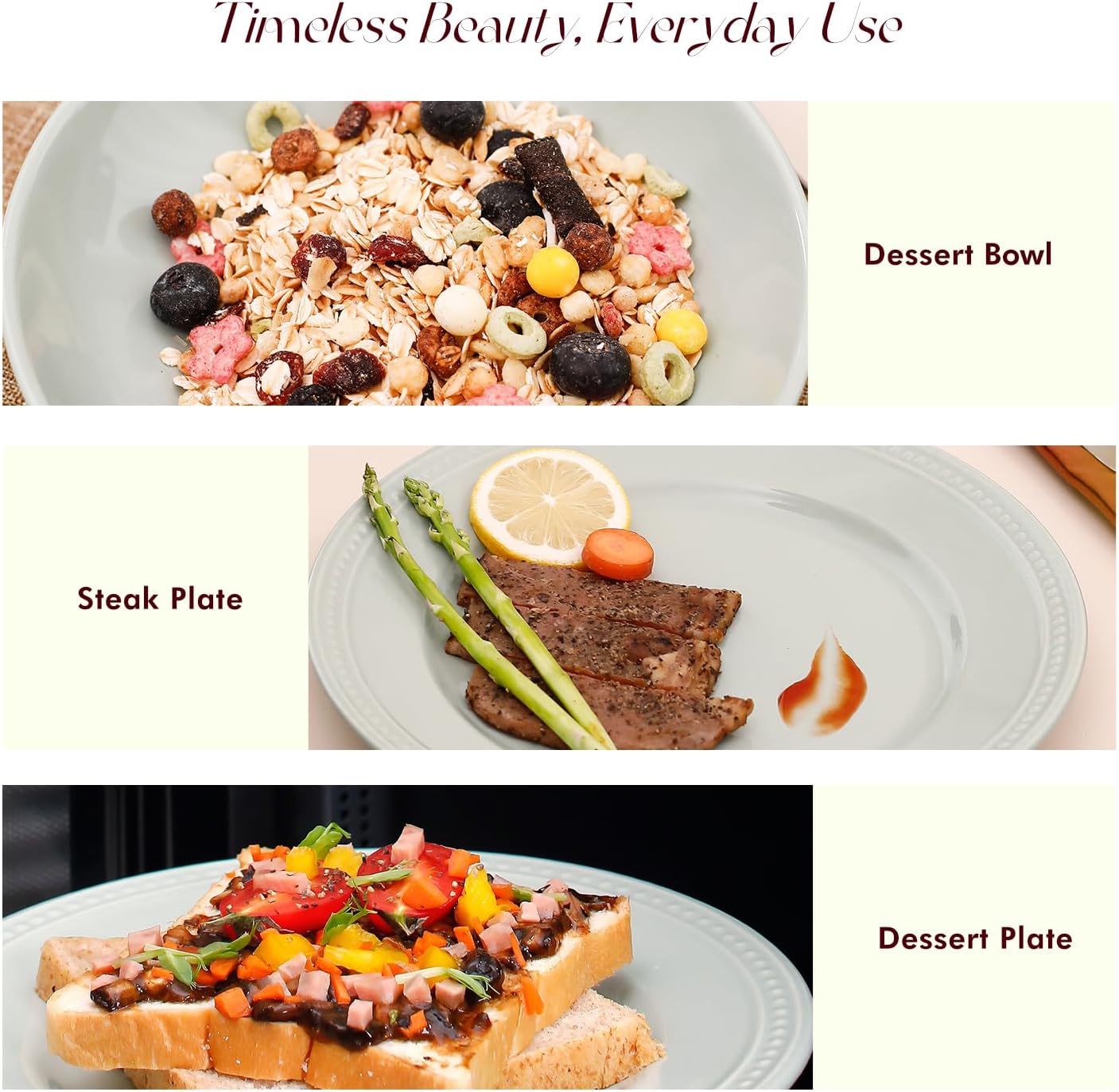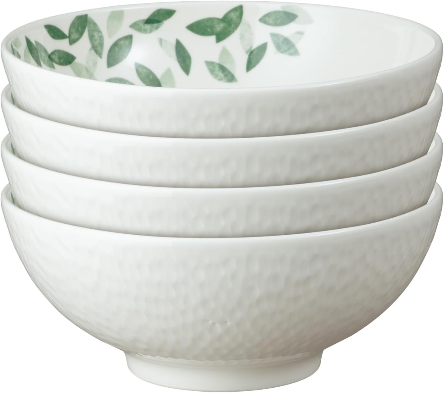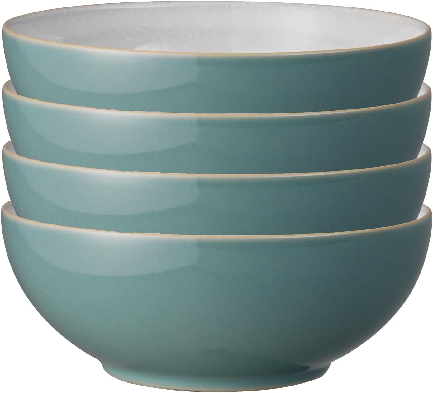 Denby - Carved Green Cereal Bowls Set of 4-6.75 Inch - Dishwasher Microwave Oven Safe - Uniquely Textured Porcelain Cereal Bowls - Scratch Chip Resistant