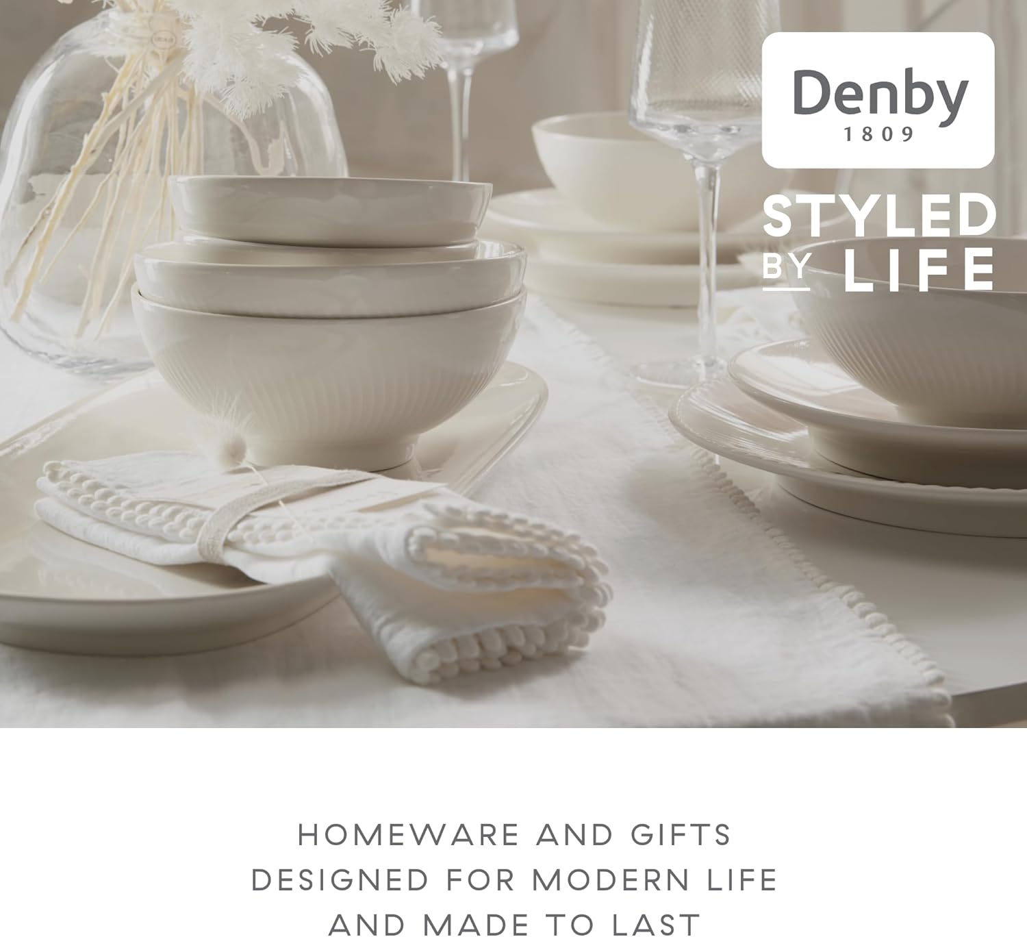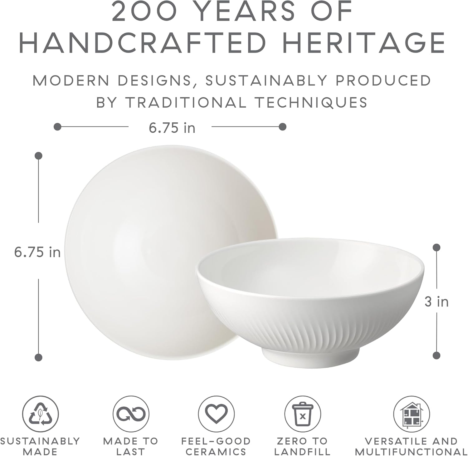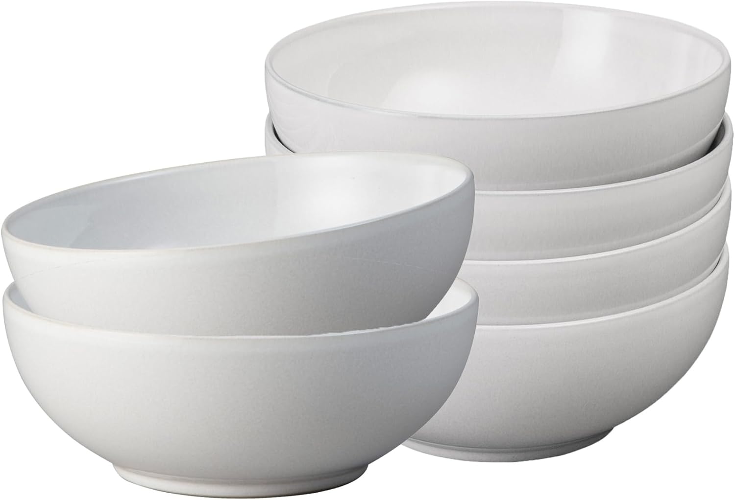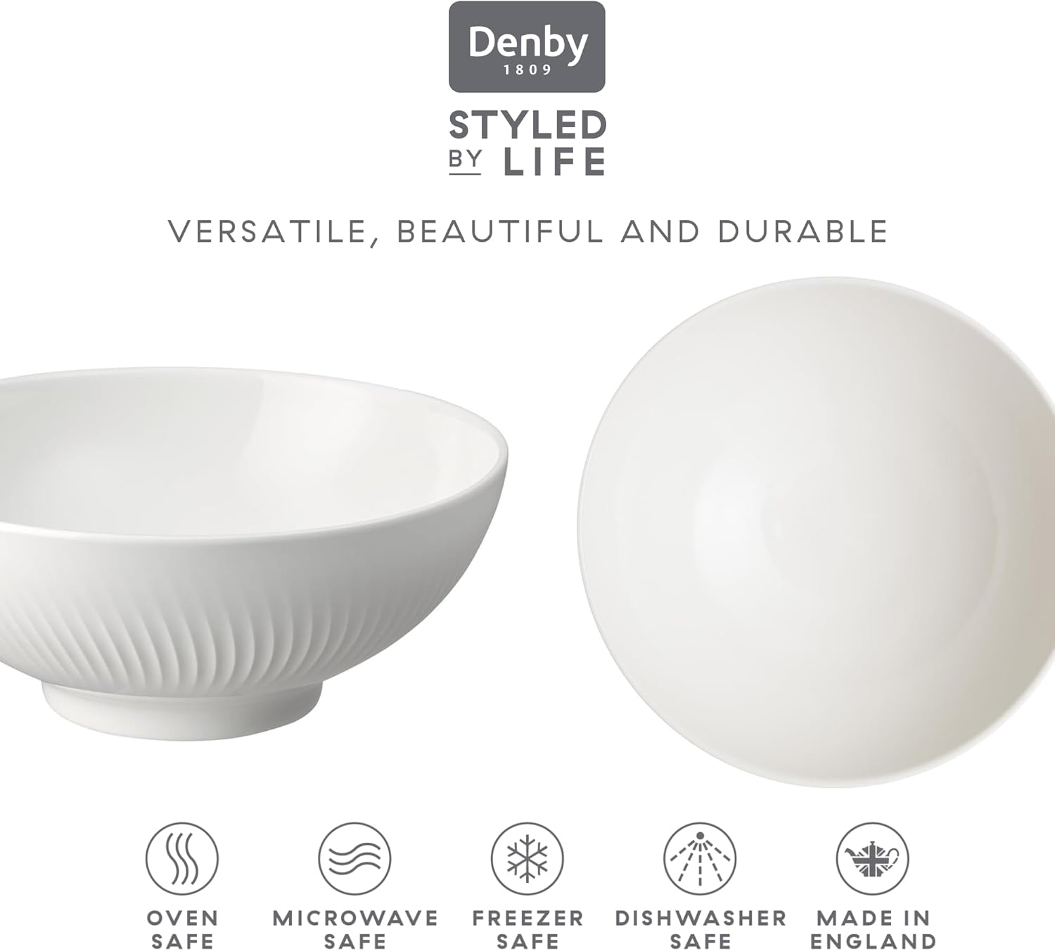 Denby - Arc White Porcelain Cereal Bowls Set of 6 - Dishwasher Safe, Microwave Safe Tableware - Scratch Chip Resistant, 6.7" Soup, Dessert, Ice Cream Bowls For Kitchen