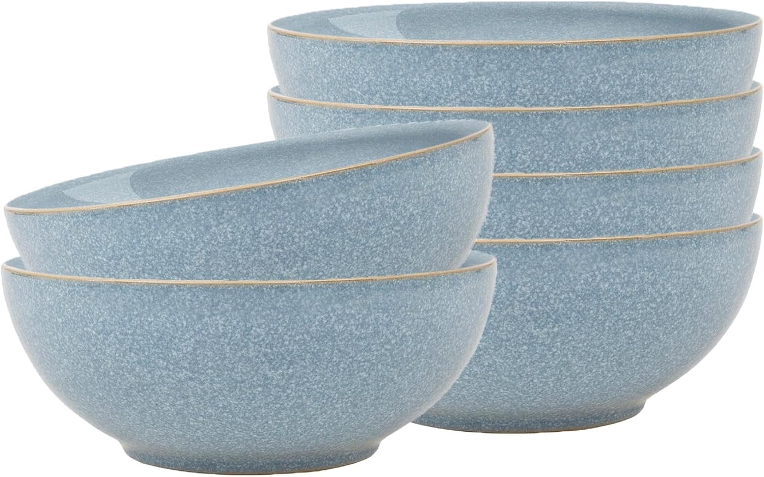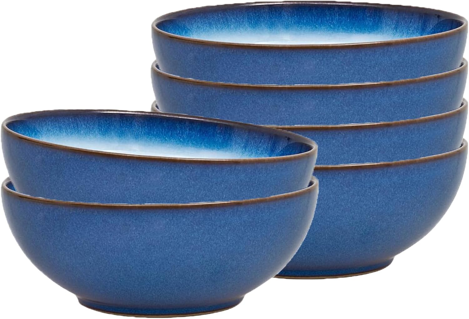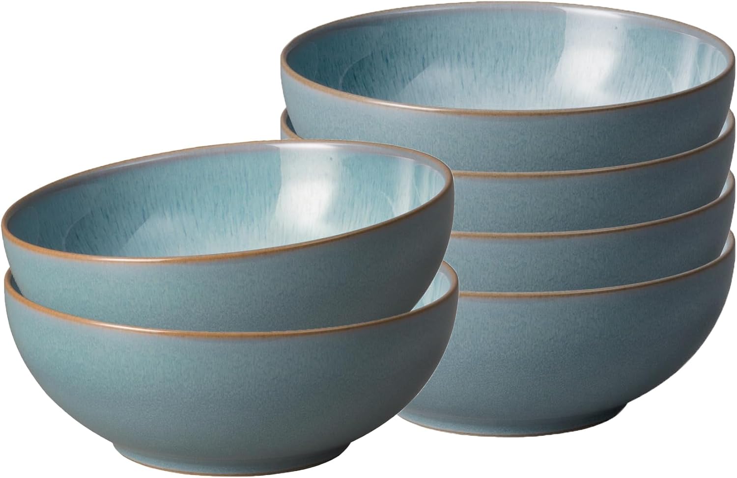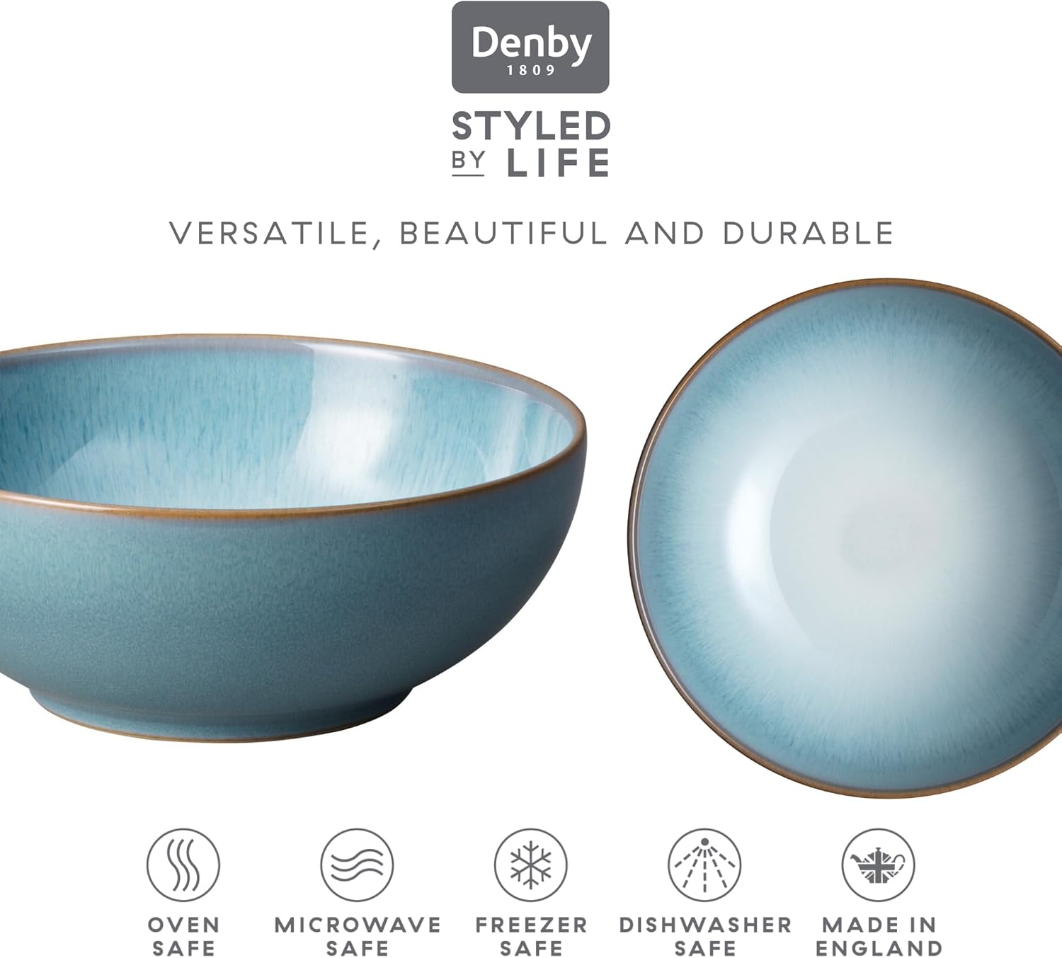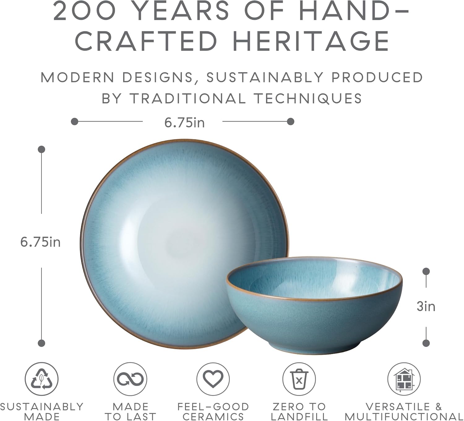 Denby - Azure Haze Coupe Cereal Bowls Set of 6-820ml, 6.75in - Dishwasher Microwave Safe - Blue Teal Reactive Glaze Ceramic Stoneware Soup Bowls Tableware - Scratch Chip Resistant