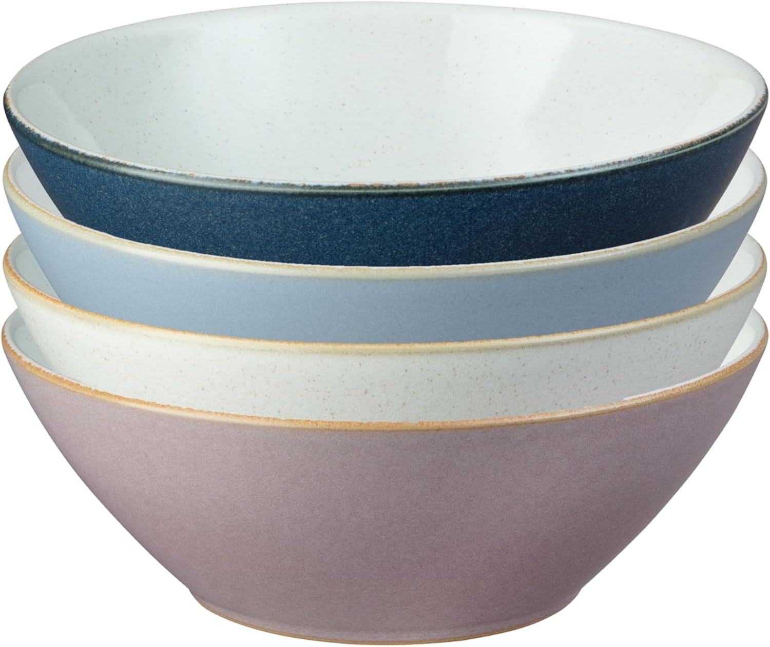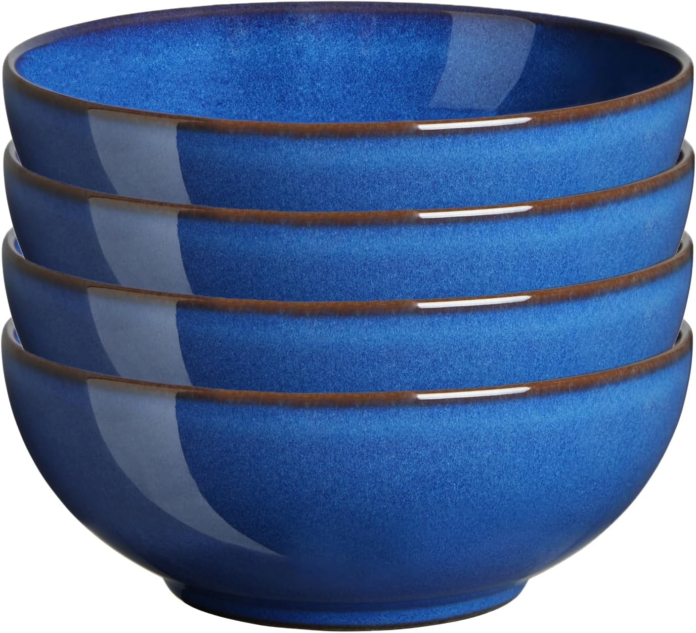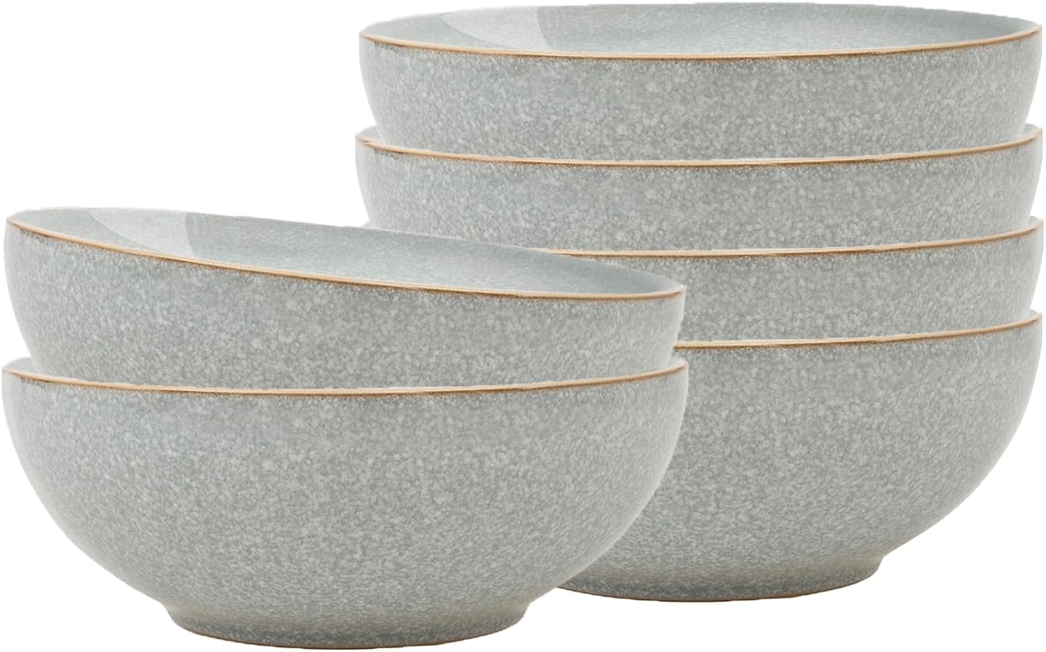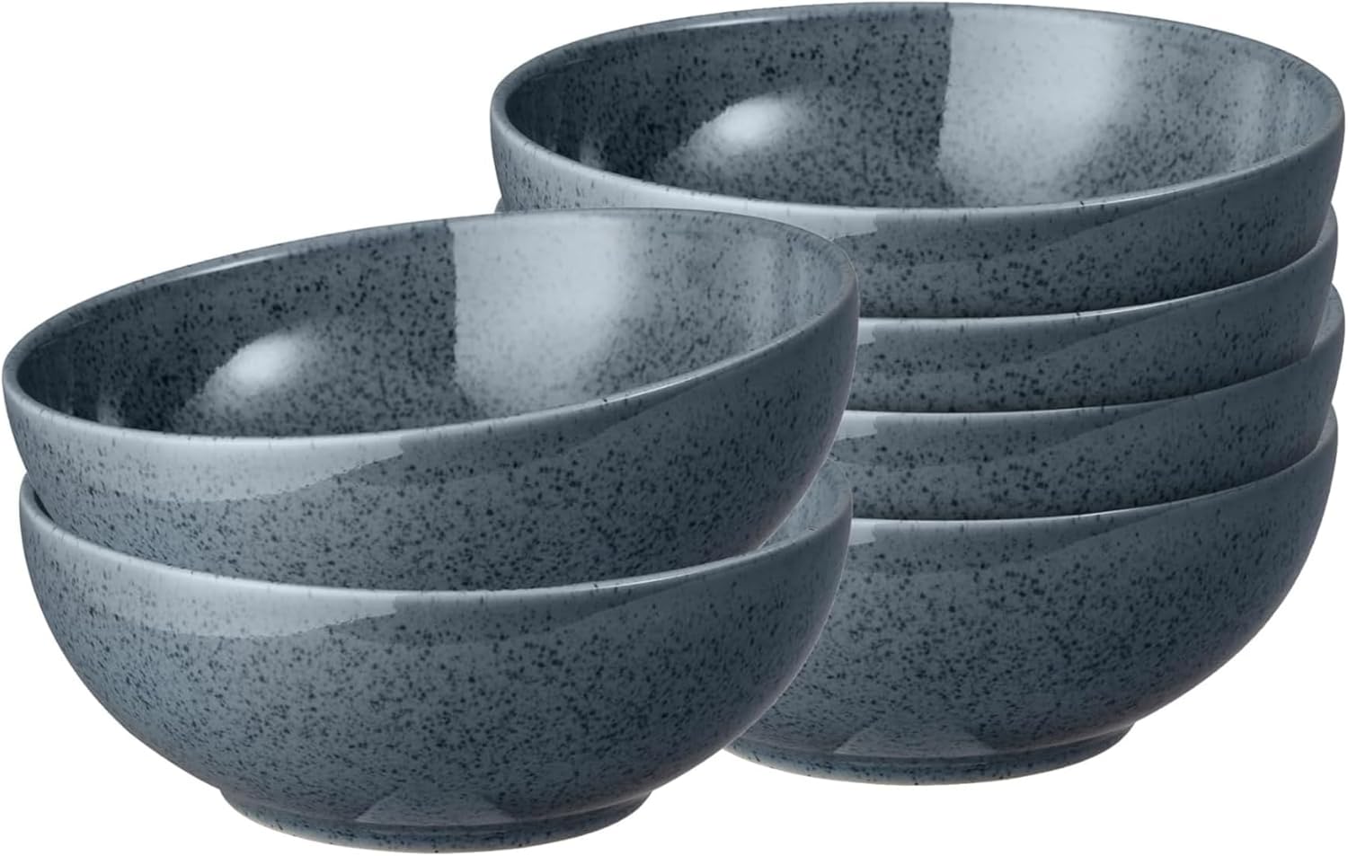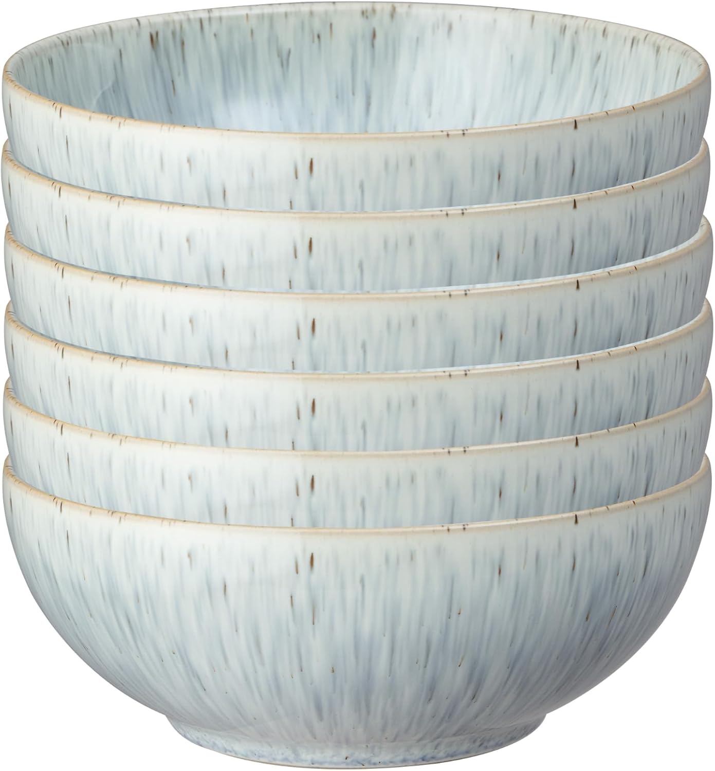 Denby - Azure Haze Coupe Cereal Bowls Set of 6-820ml, 6.75in - Dishwasher Microwave Safe - Blue Teal Reactive Glaze Ceramic Stoneware Soup Bowls Tableware - Scratch Chip Resistant