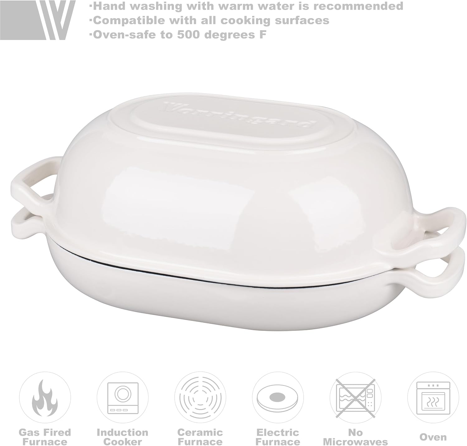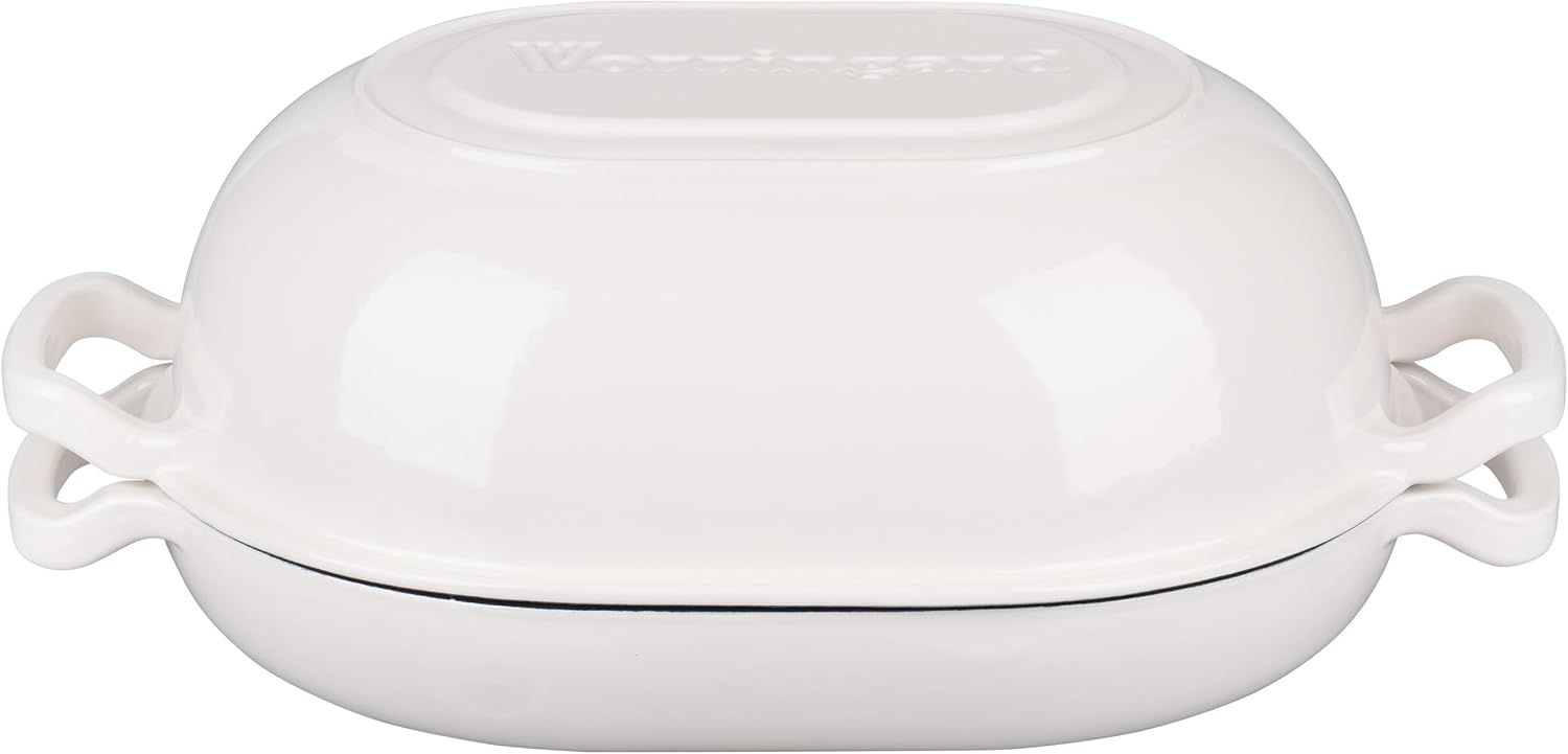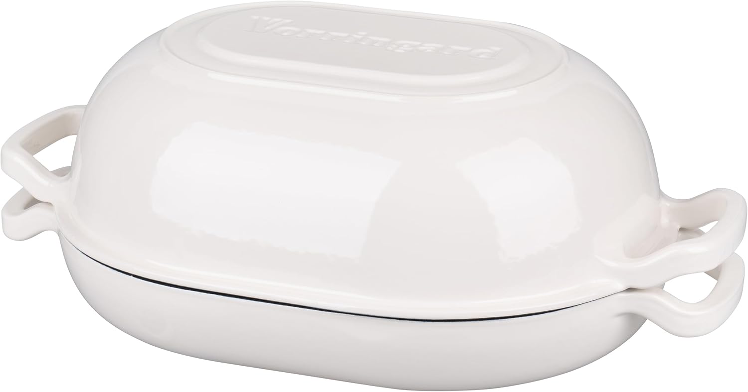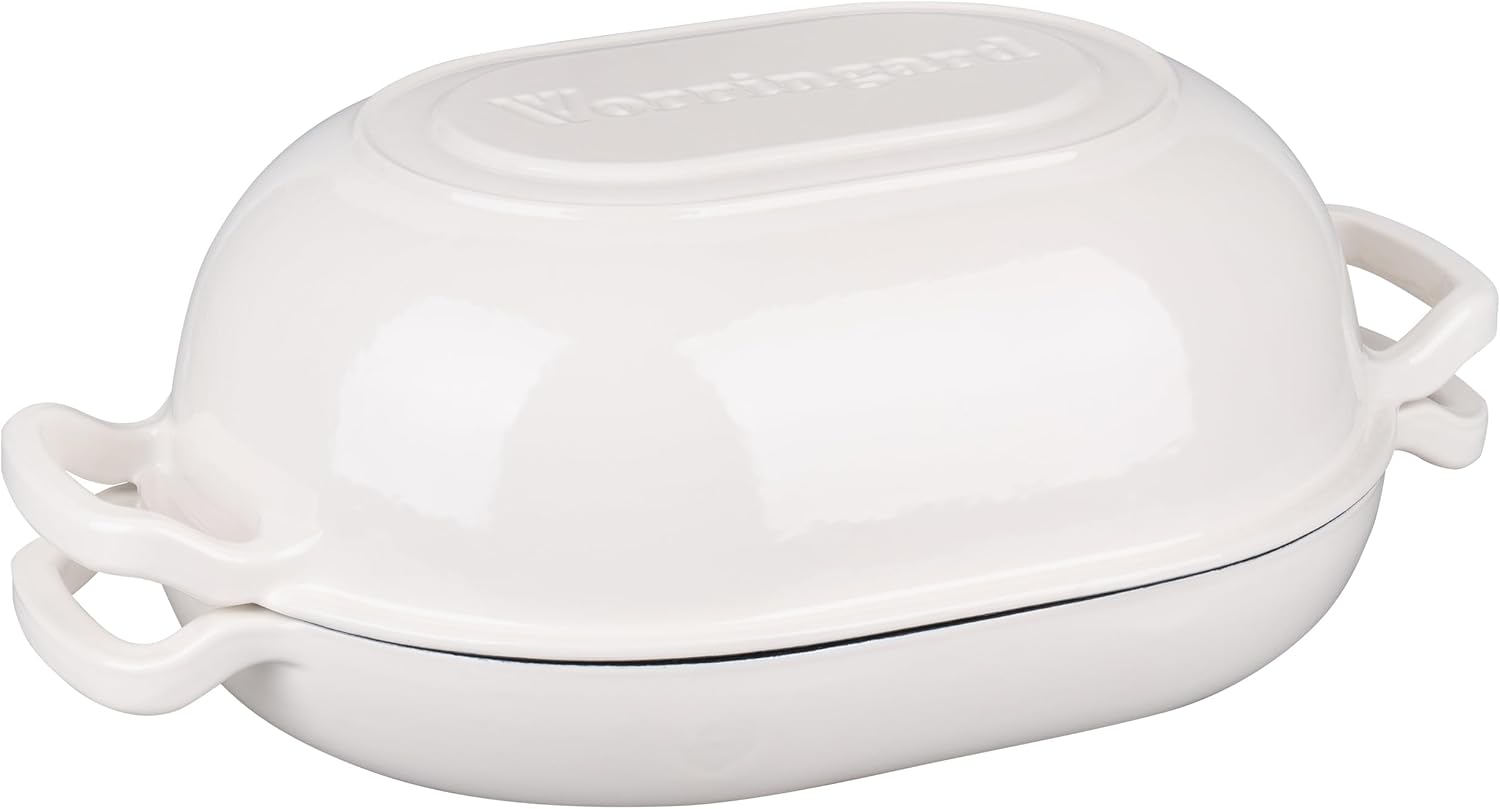 Enameled Cast Iron Sourdough Bread Oven, Dutch Oven, Loaf Cast Iron Bread Pan for Homemade Bread Baking, Meatloaf Pan with Lid, 7QT, White