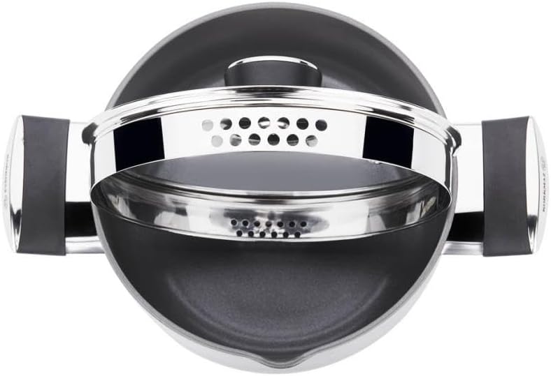 Korkmaz Lena Ceramic Low Dutch Oven with Glass Lid, High-Performance Cookware, 3 Quart, Silver, A3881