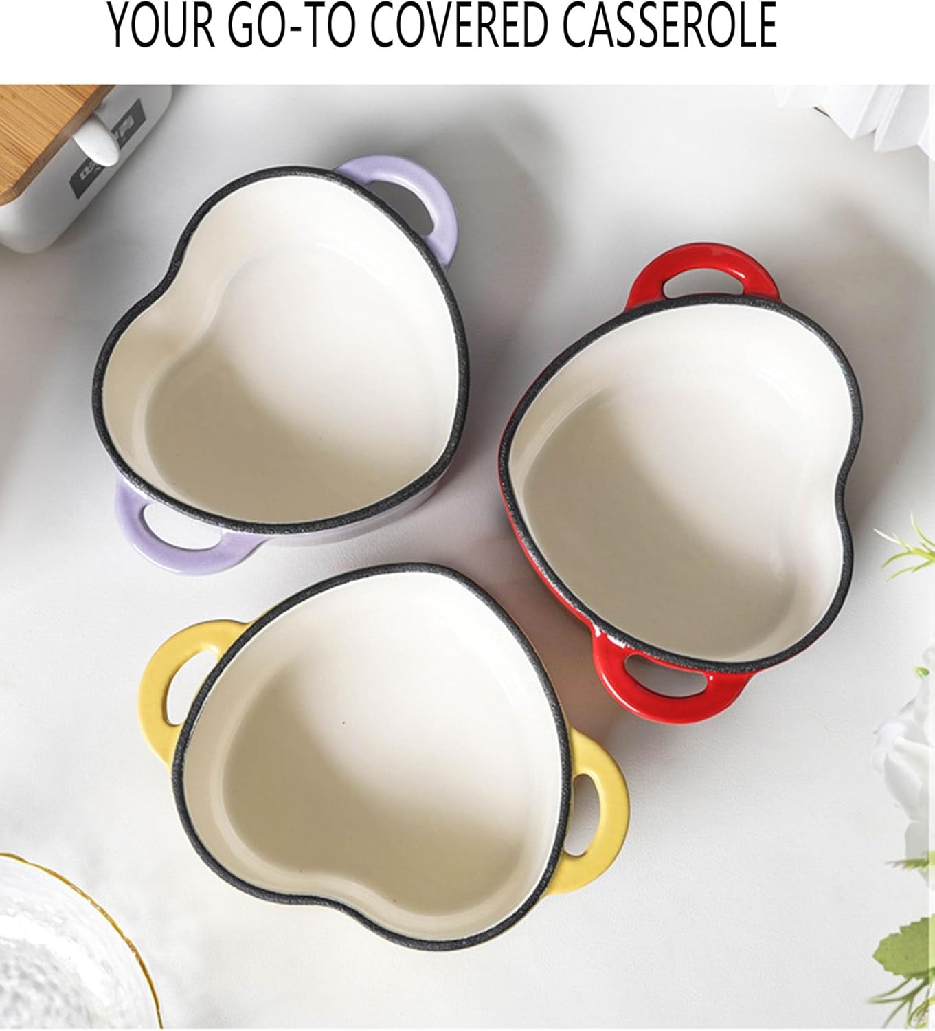 Dutch Oven Pot with Lid, Enameled Cast Iron Coated Dutch Oven,Casserole Dish,Enameled ast Iron Dutch Oven Heart Shaped Enameled Cast Iron Figural Heart,Red