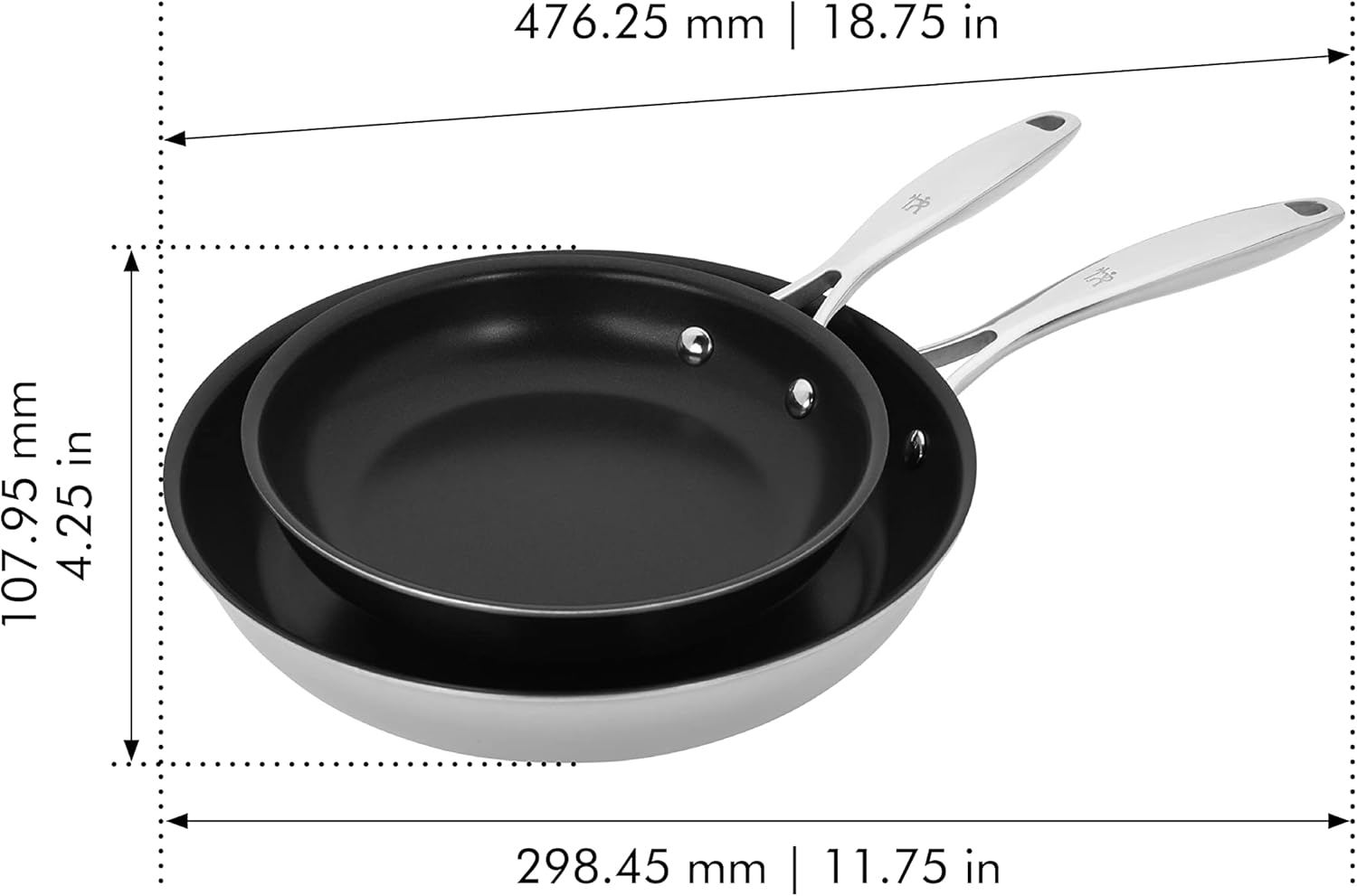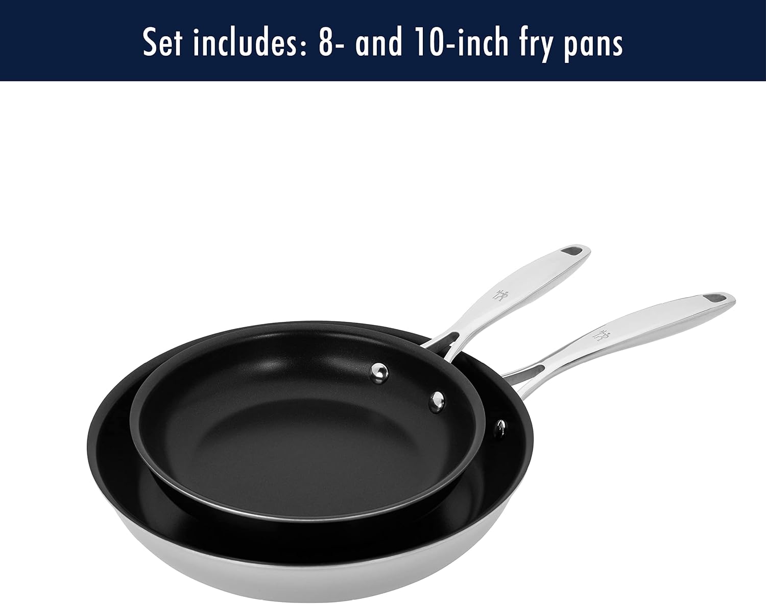 HENCKELS Clad Impulse 2-pc Nonstick Frying Pan Set, 3-Ply Clad Stainless Steel, Mirror Finish, Dishwasher Safe, Oven Safe, Induction Stove Compatible, Teflon