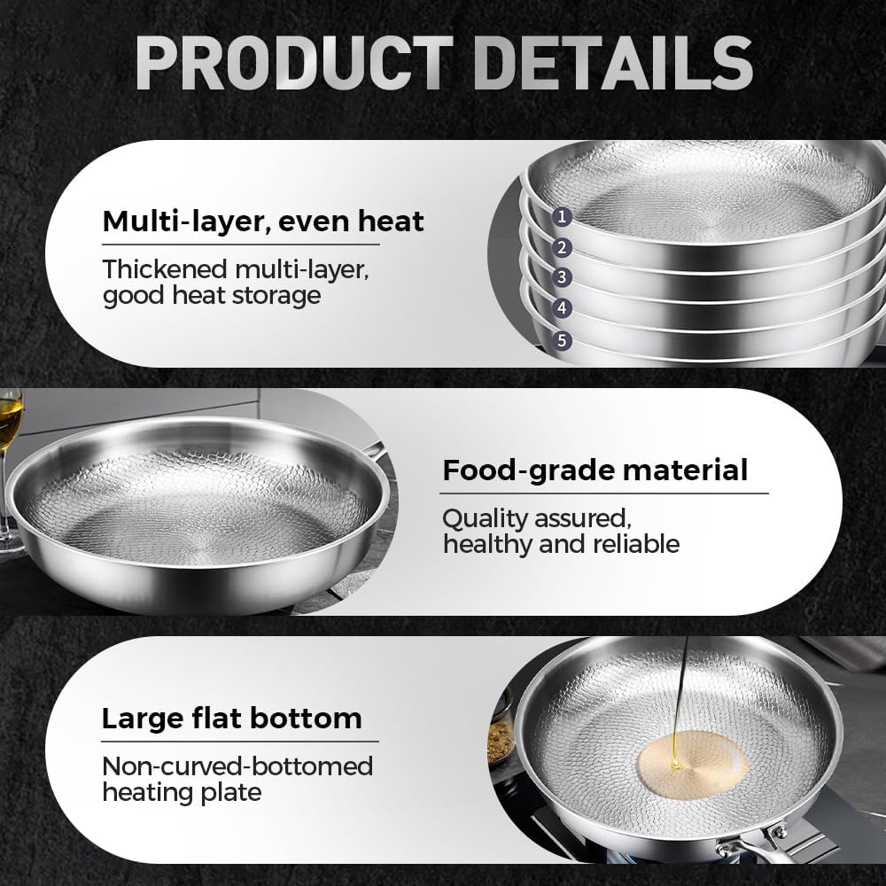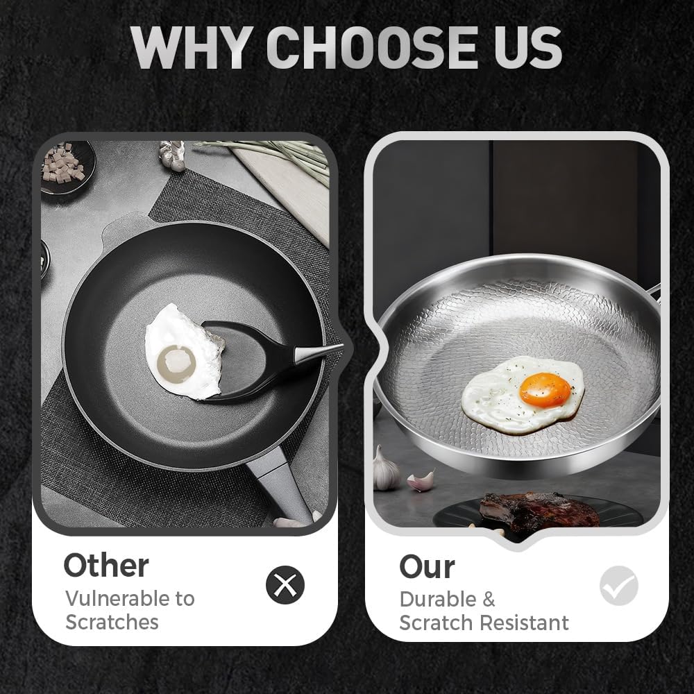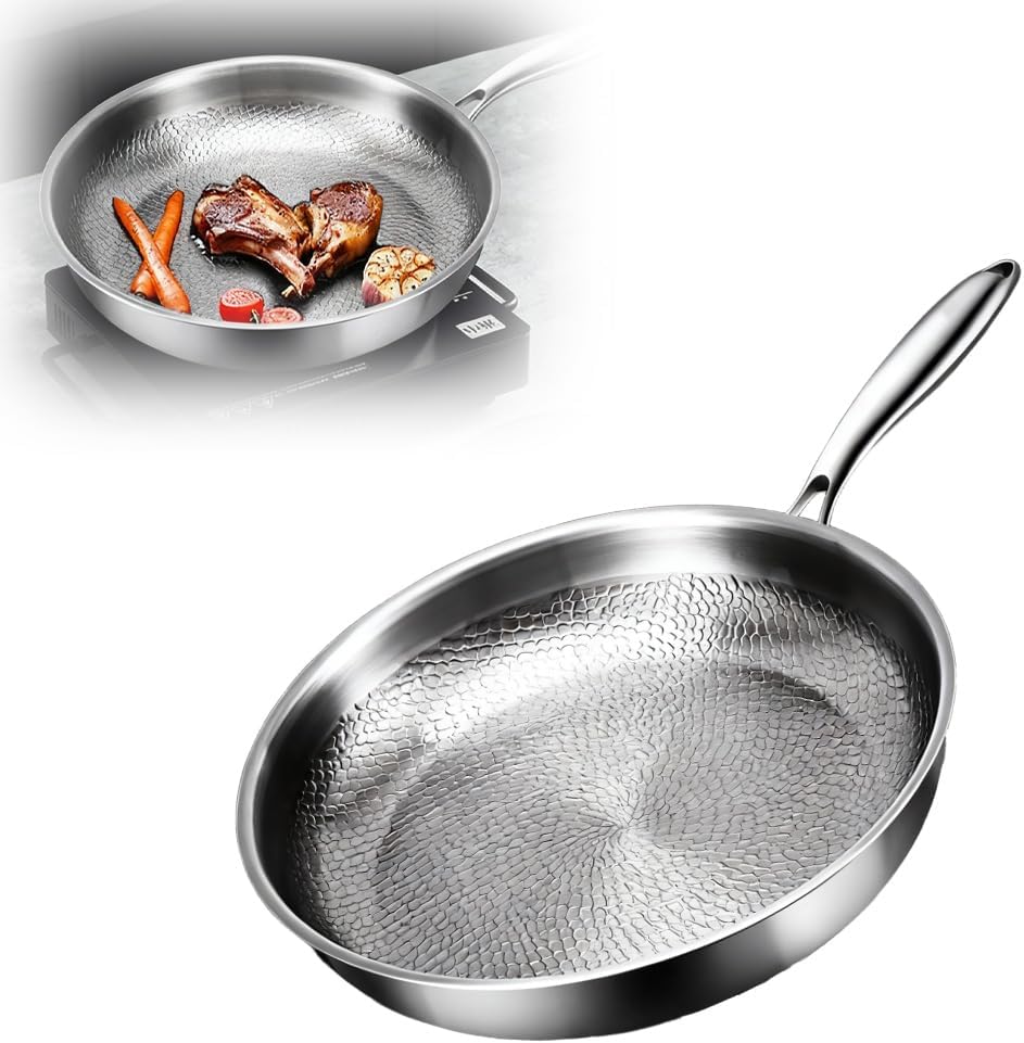 Titanium Hammered Pan Pro with Lid, 2025 New Multifunctional Ultra-Durable Scratch-Resistant Non Stick, 12" Pure Titaniums Pro Pans for Cook, Titanium Frying Pan for All Stovetops (10.23in, With Lid)