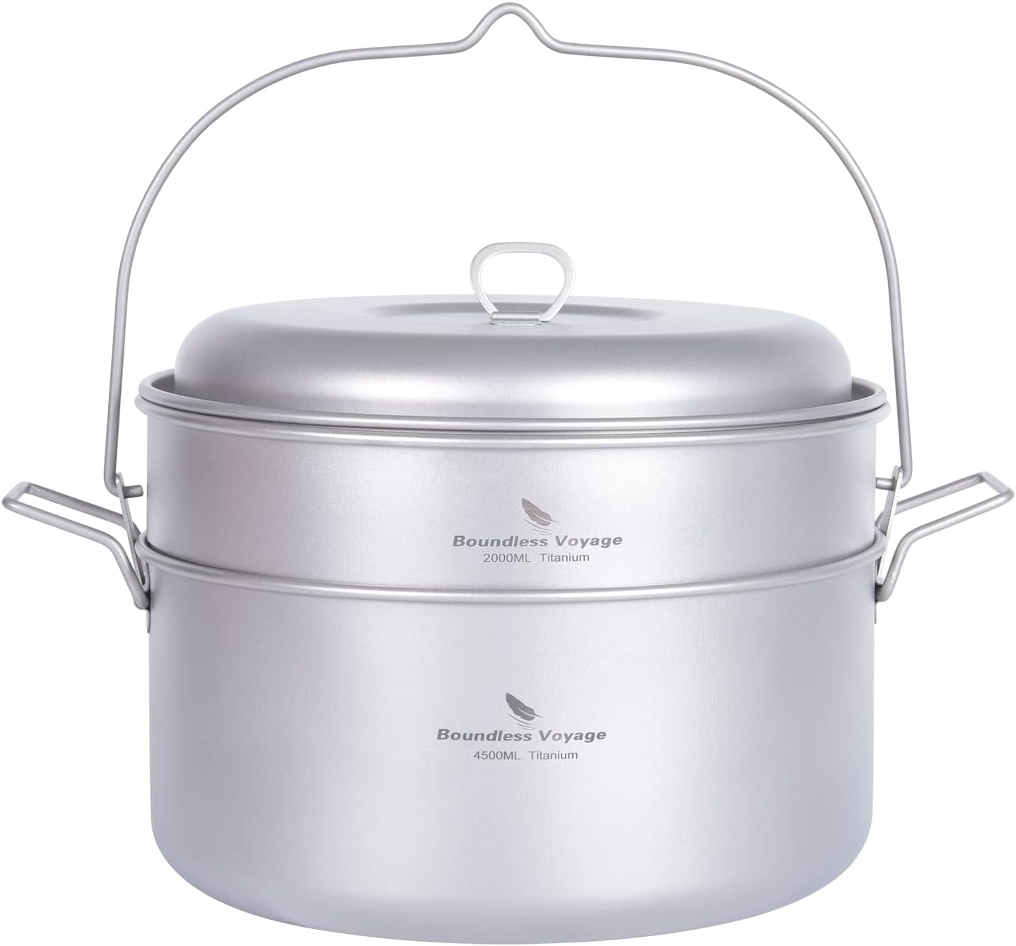 Boundless Voyage Titanium Food Steamer Pan Stock Pot Soup Pot Outdoor Hanging Pot Portable Travel Household Kitchenware Cooking Kit Hot Pot for Camping Picninc