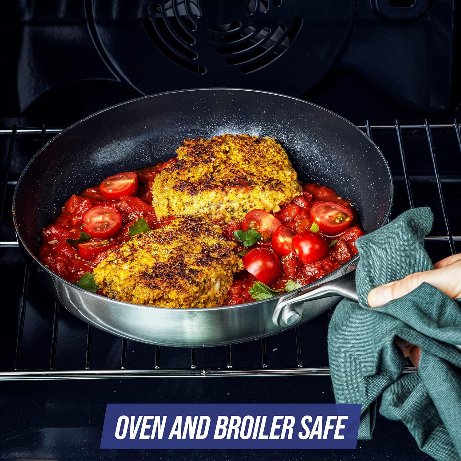 Granitestone Stainless Steel Nonstick 12” Frying Pan, Tri-Ply Base, Stainless Steel Fry Pan with Nonstick Mineral Coating, 100% PFOA Free, Cool Touch Handles, Induction, Oven & Dishwasher Safe…