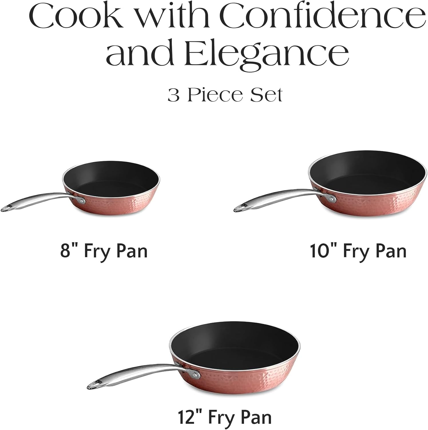 Luxurious Non-Stick Ceramic 3 Piece Rose Gold Cookware Set, Lightweight, Scratch-Resistant, Dishwasher Safe, Oven Safe up to 500°F, Suitable for All Stove Types