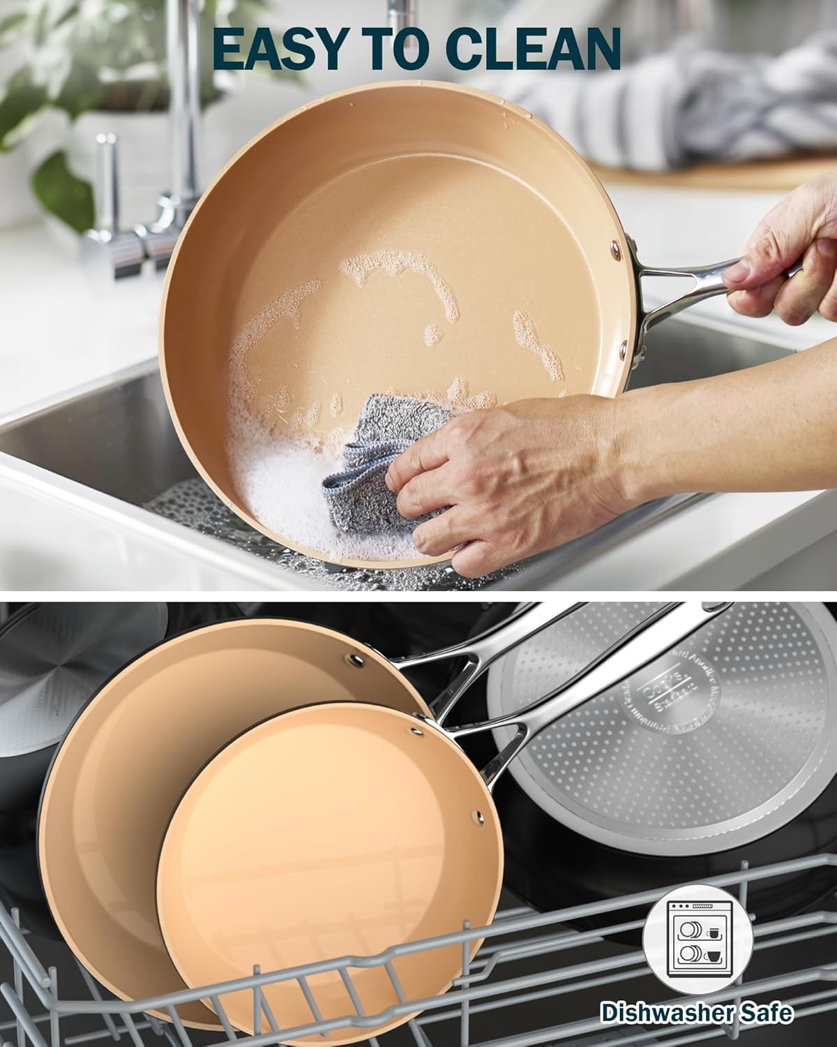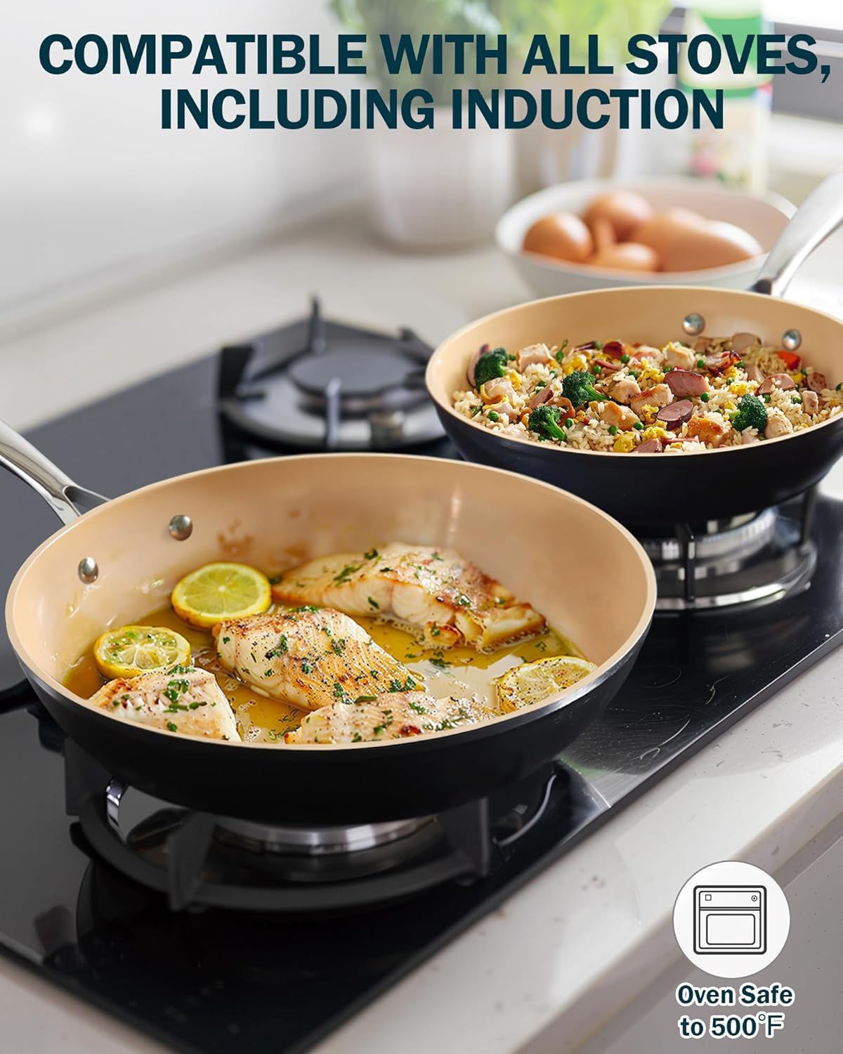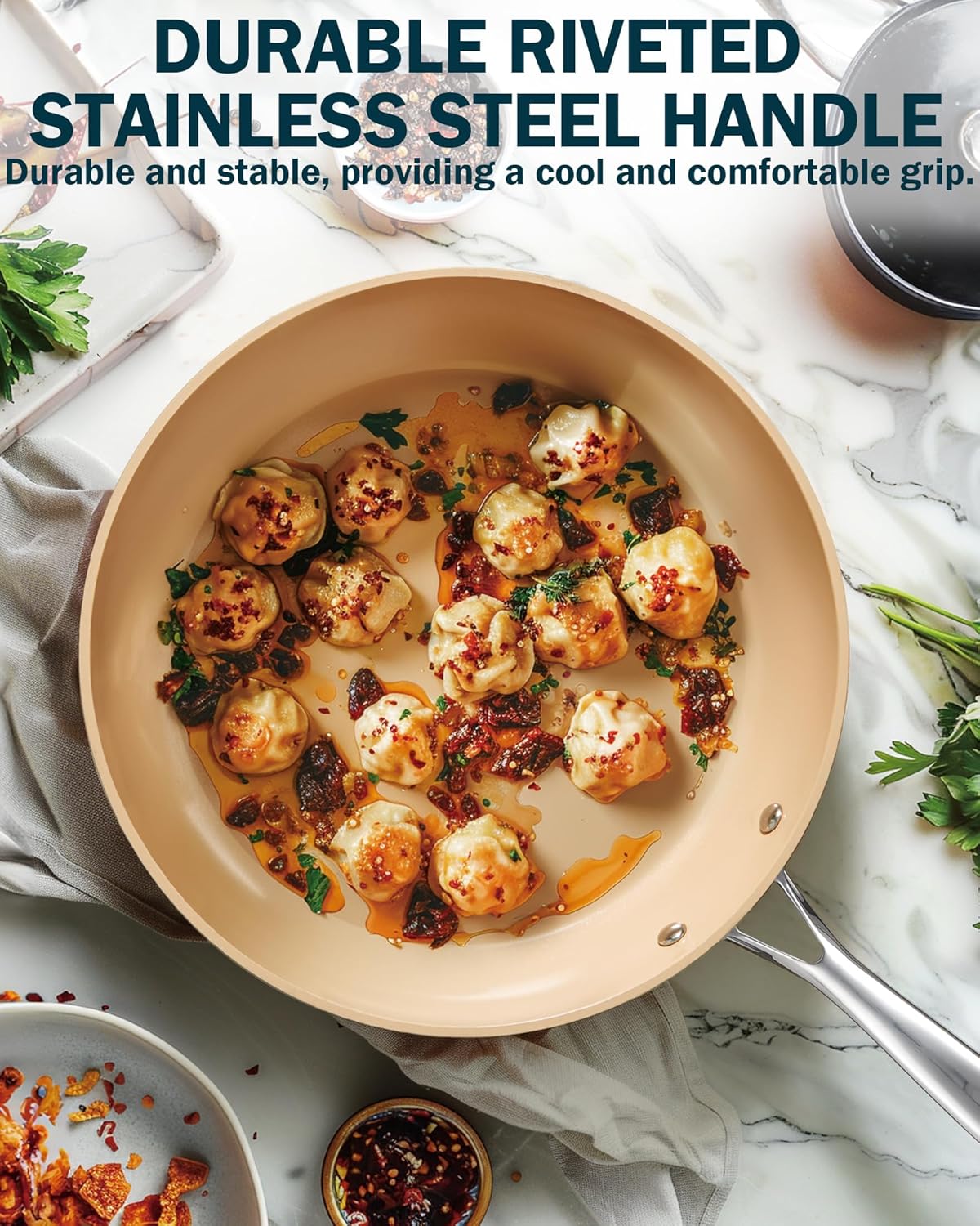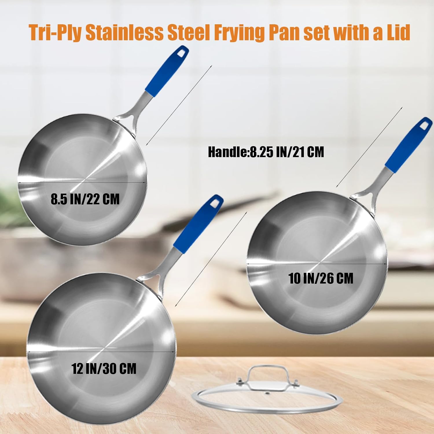 Inqibee 8.5-10-12 Inch Tri-Ply Stainless Steel Frying Pan Set with Lid,Skillets,Induction Cooking Pans,Pots and Pans Set,Dishwasher and Oven Safe,Detachable Handle.