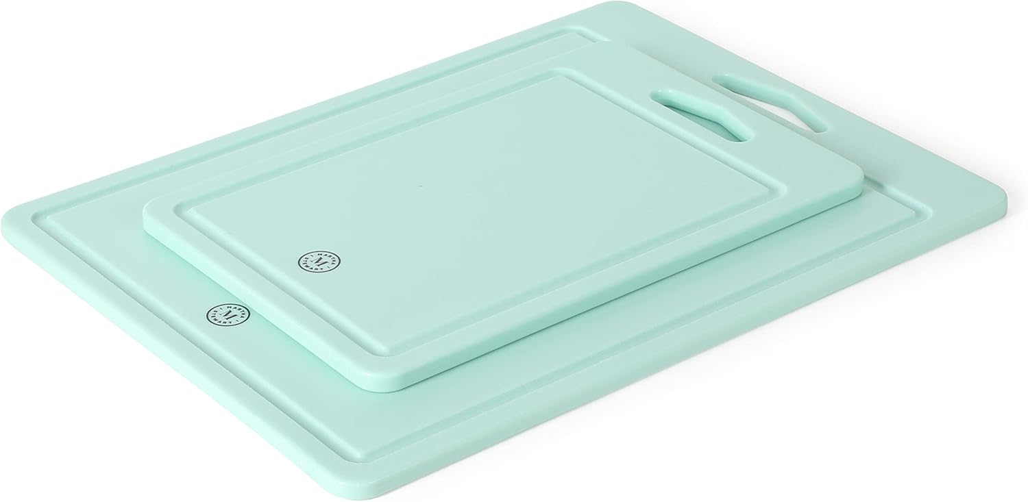 MARTHA STEWART Gatwick 7 QT Enamel Cast Iron Dutch Oven, Martha Blue & BPA Free Plastic Cutting Board (16" x 12" and 12" x 8") - Martha Blue - Dishwasher Safe, 2-Pack