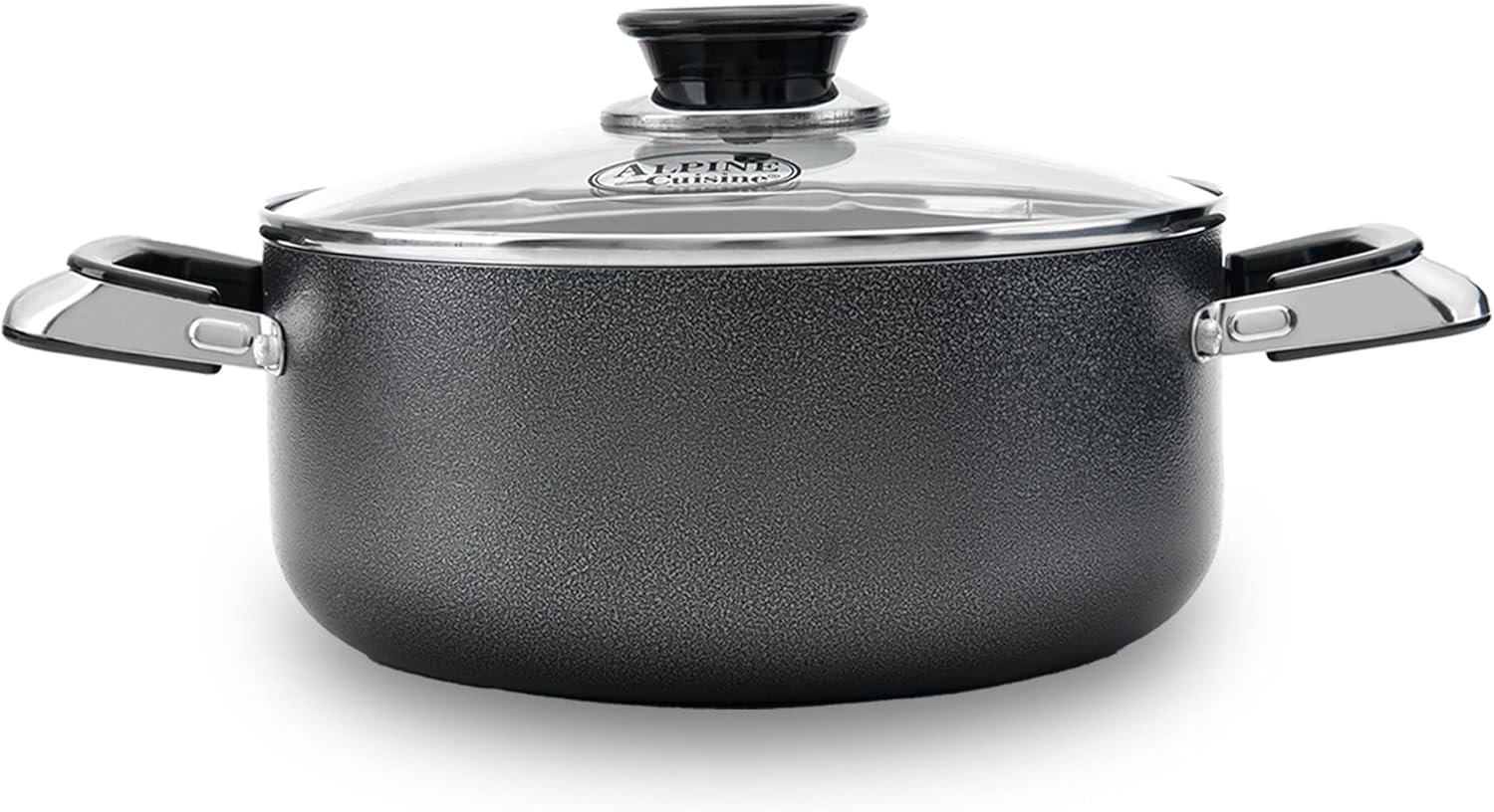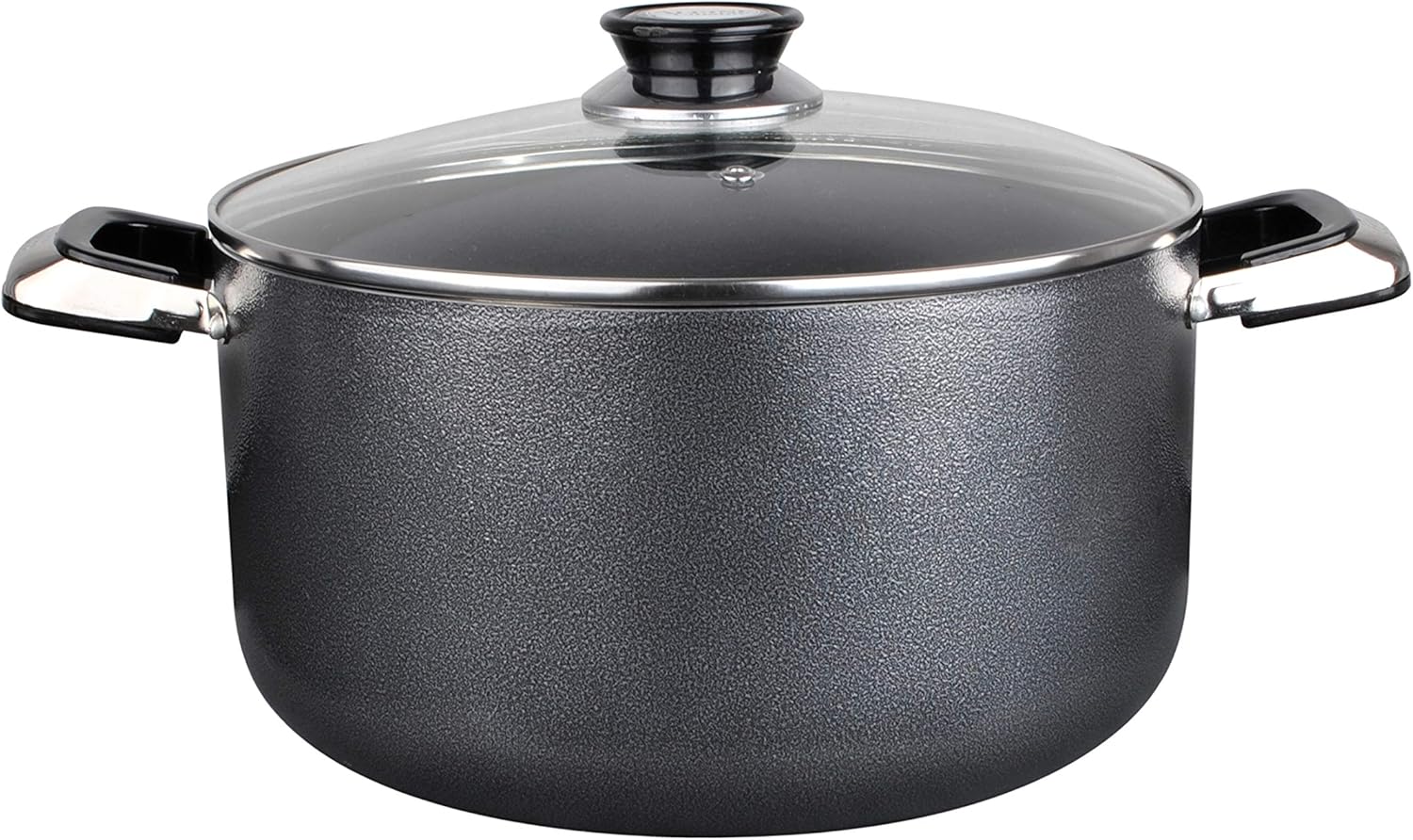 Alpine Cuisine 22 Quart Non-stick Stock Pot with Tempered Glass Lid and Carrying Handles, Multi-Purpose Cookware Aluminum Dutch Oven for Braising, Boiling, Stewing