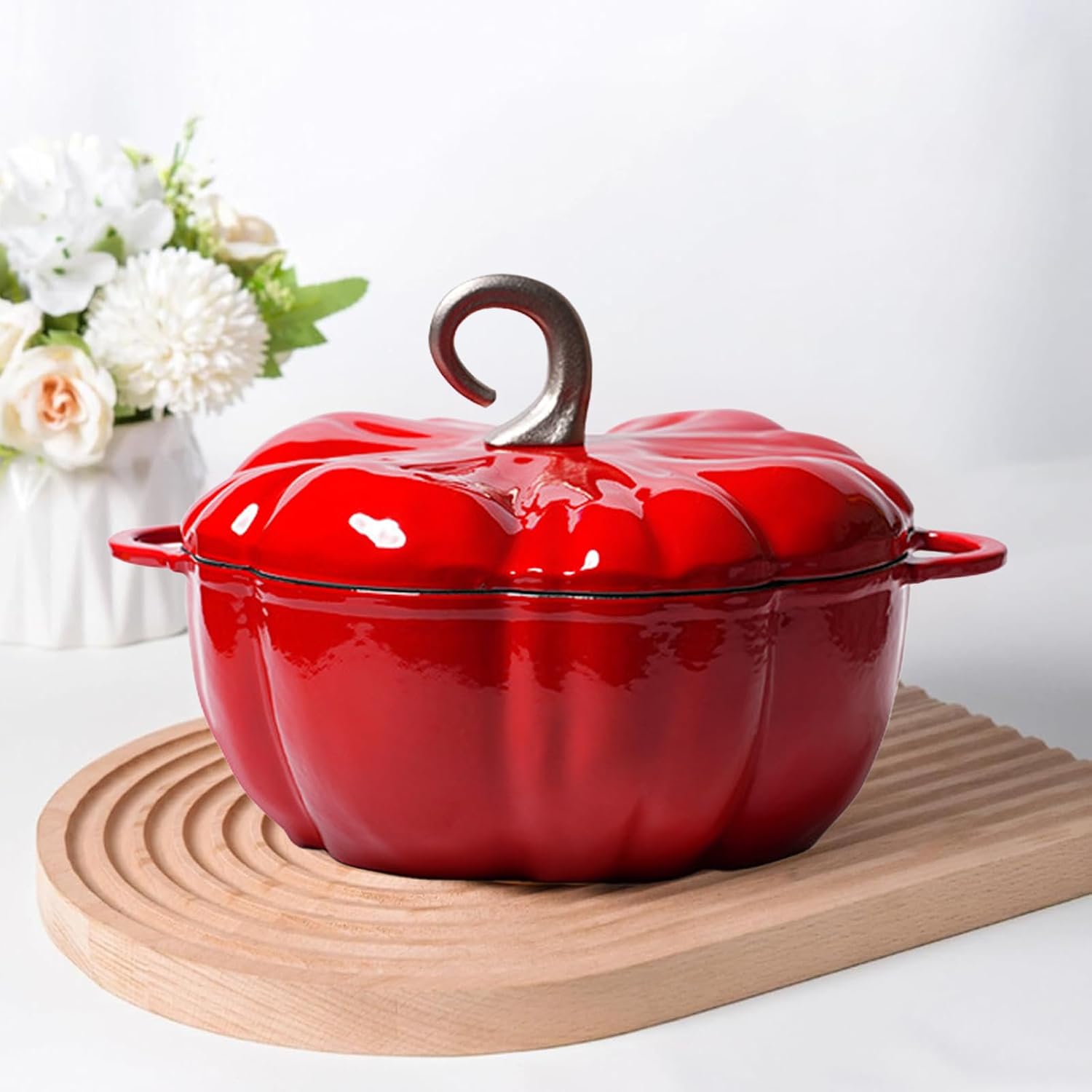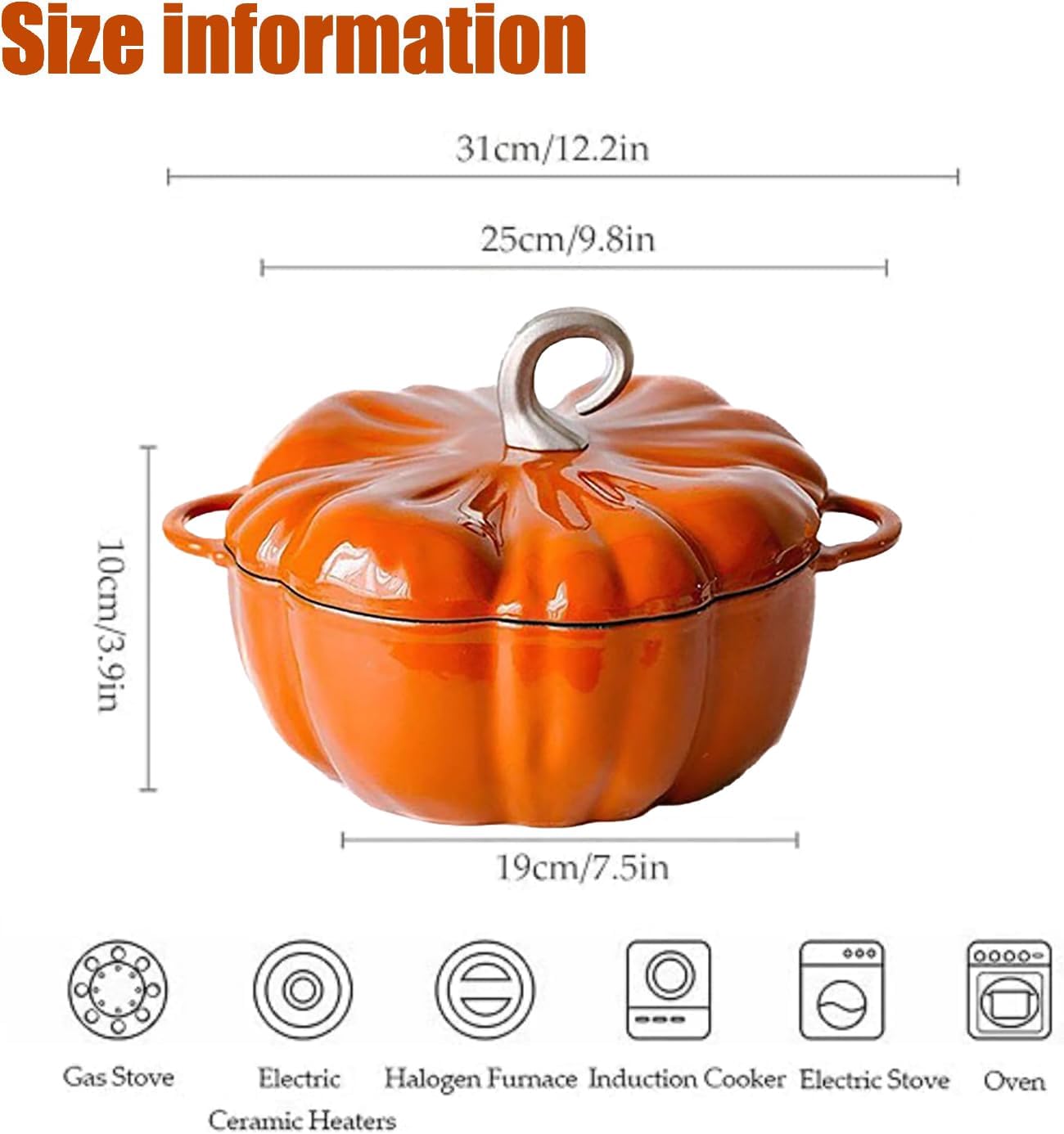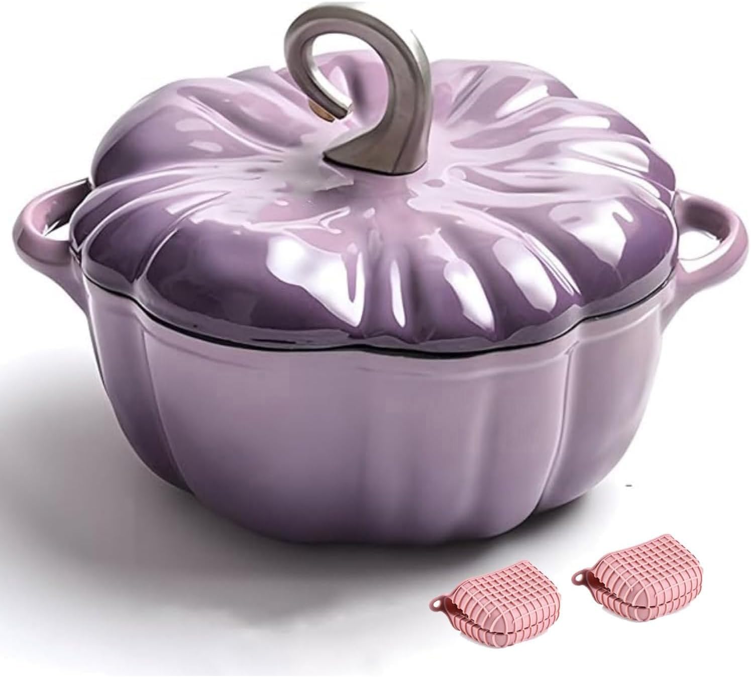 Pumpkin Dutch Oven with Lid, 4 Qt Enameled Cast Iron Pot - Non-Stick, Oven Safe, for Cooking, Soups & Stews, Serves 3-5, Halloween & Thanksgiving Decor Gift (Orange)