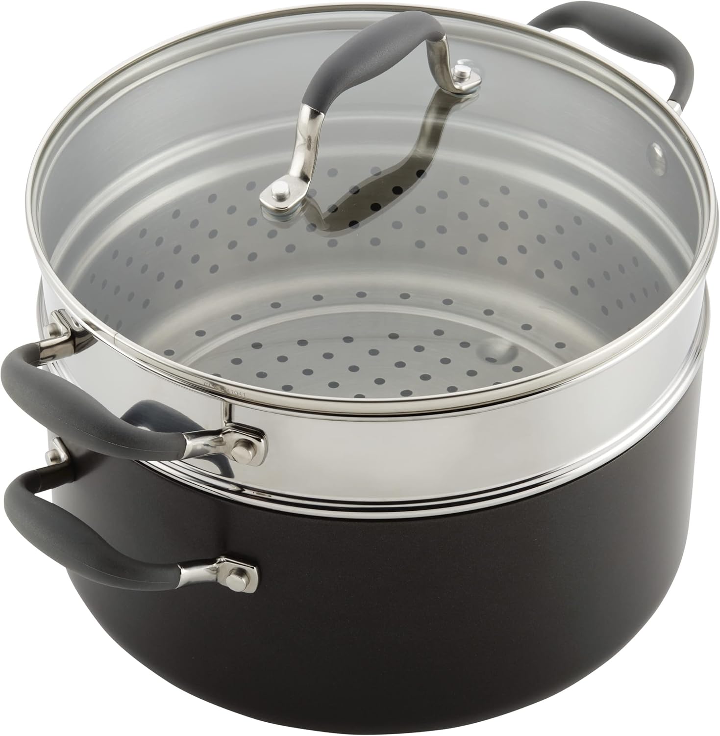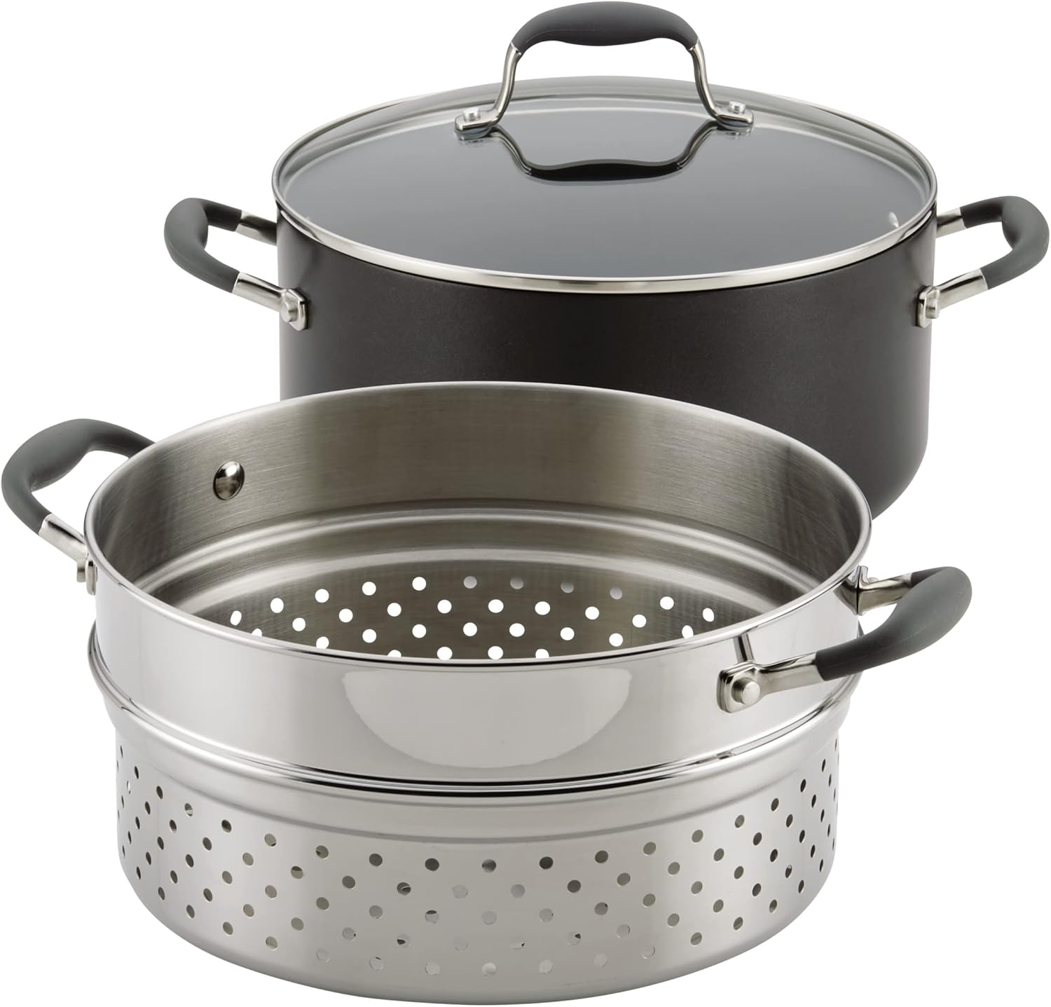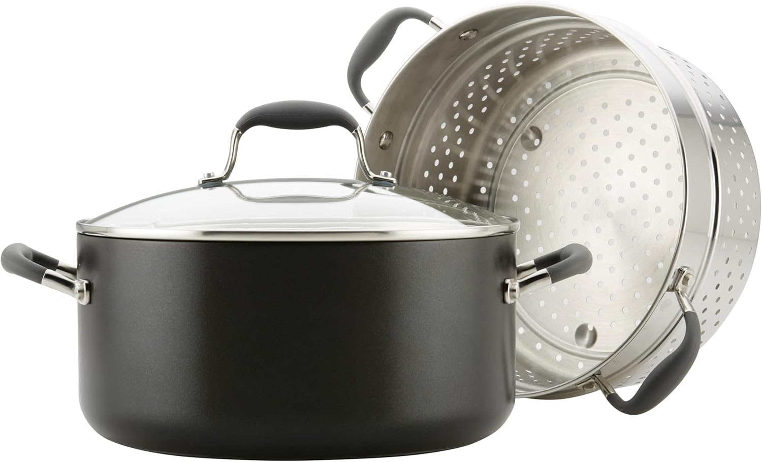 Anolon Advanced Hard-Anodized Dutch Oven Multipurpose Steamer Set, 8.5-Quart, Graphite