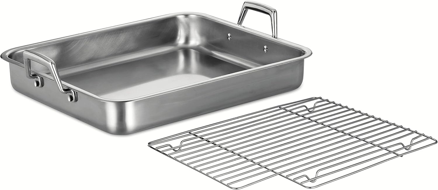 Tramontina 16.5-Inch Stainless Steel Roasting Pan with Rack, Turkey Roaster for Oven, Dishwasher Safe, Made in Brazil