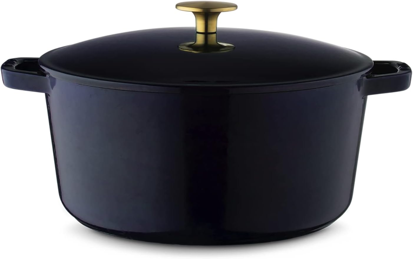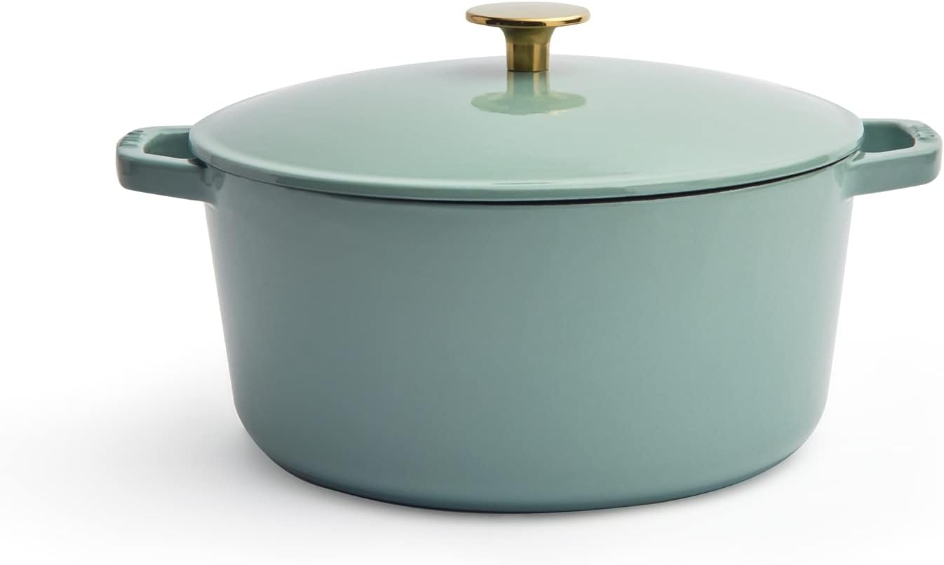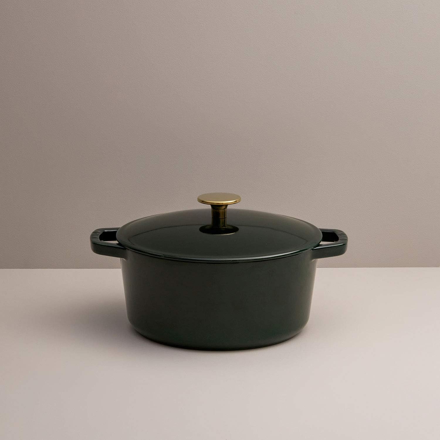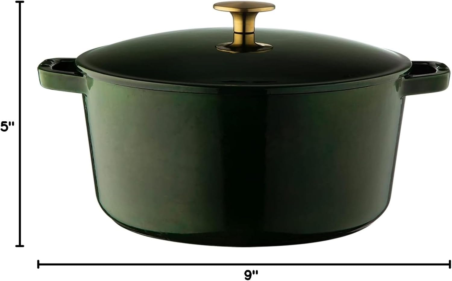 Milo by Kana 3.5-quart Enameled Cast Iron Dutch Oven with Lid | Premium Casserole Cooking Pot | Enamel Coating Inside and Out | Oven Safe and Dishwasher Friendly (Emerald Green with Gold Knob)