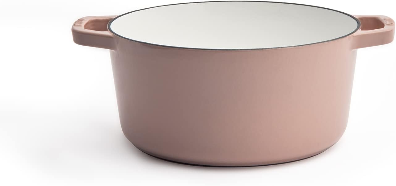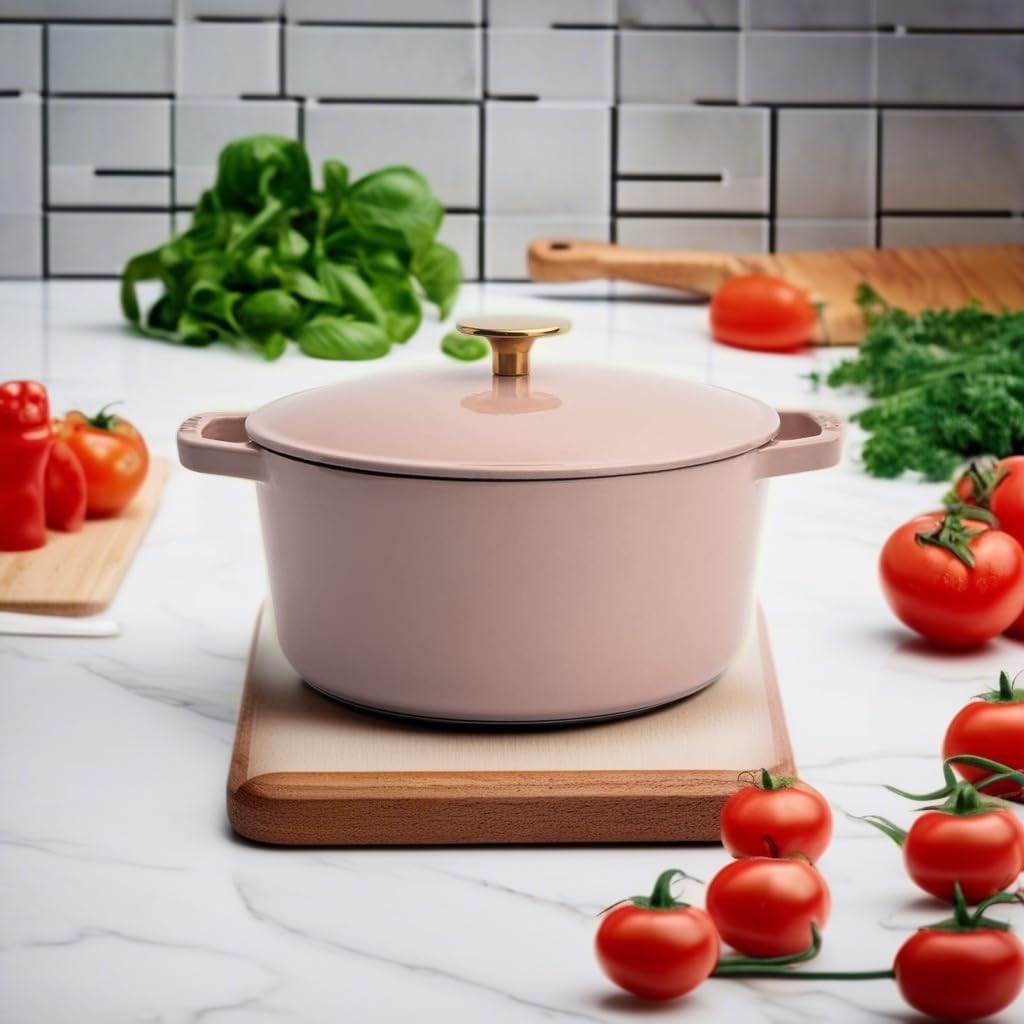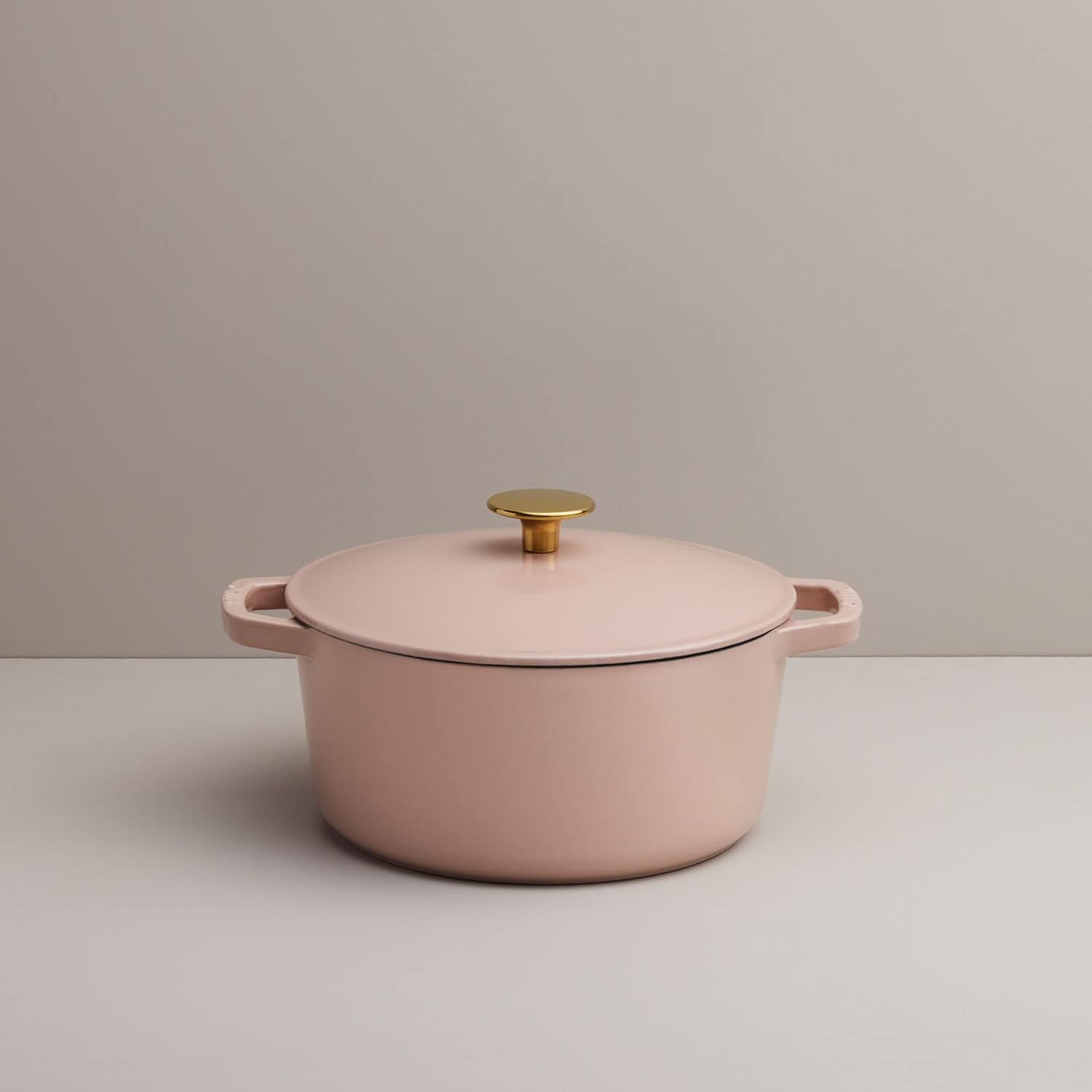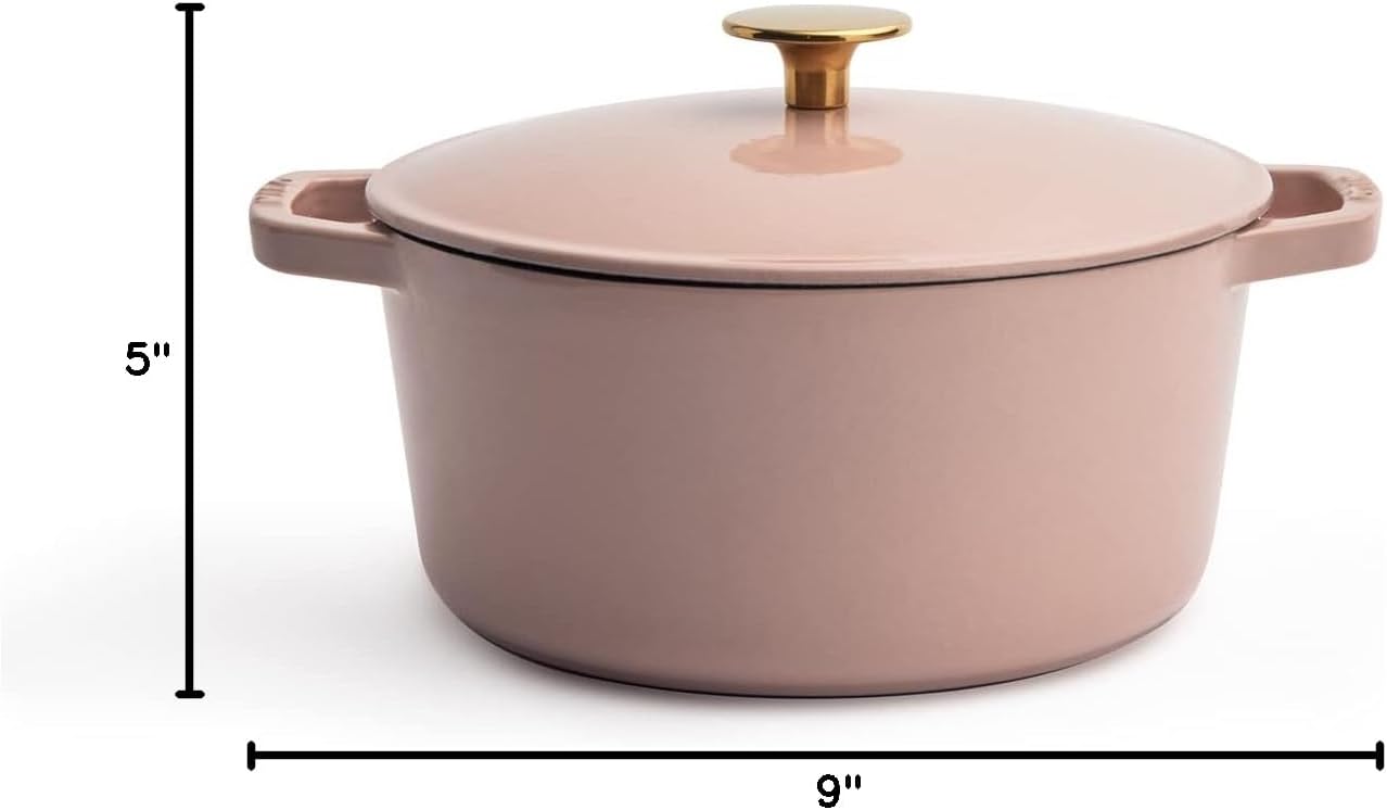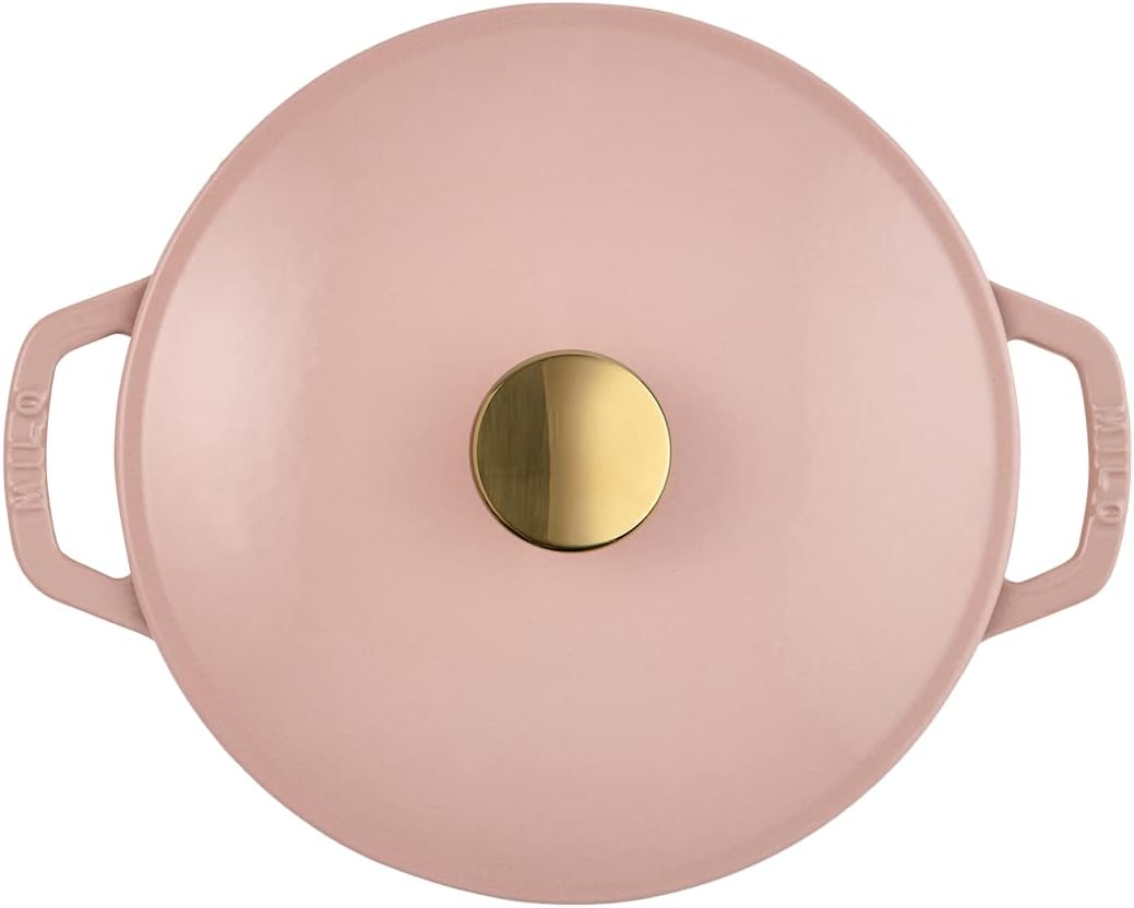 Milo by Kana 3.5-quart Enameled Cast Iron Dutch Oven with Lid | Premium Casserole Cooking Pot | Enamel Coating Inside and Out | Oven Safe and Dishwasher Friendly (Dusty Pink with Gold Knob)
