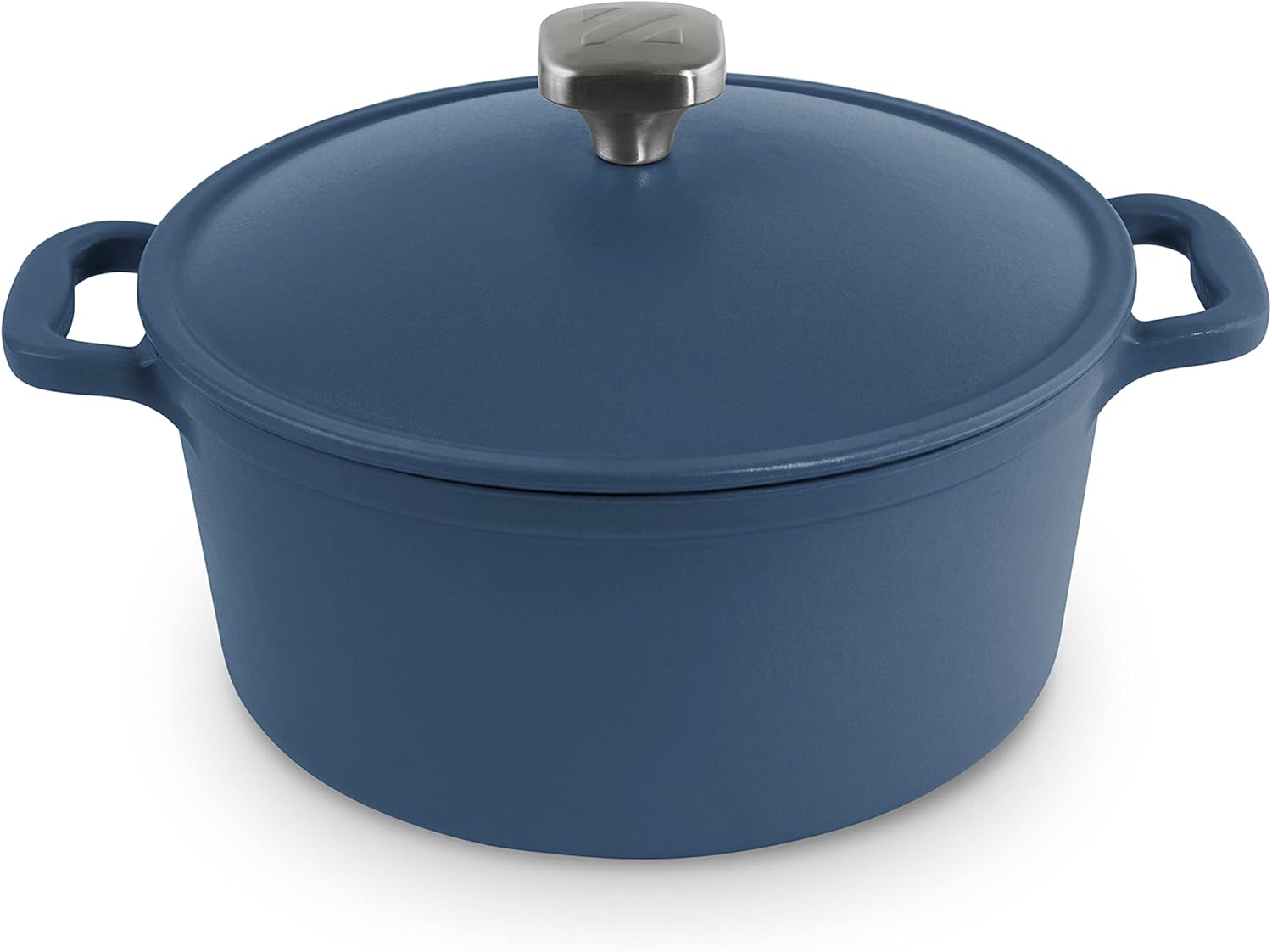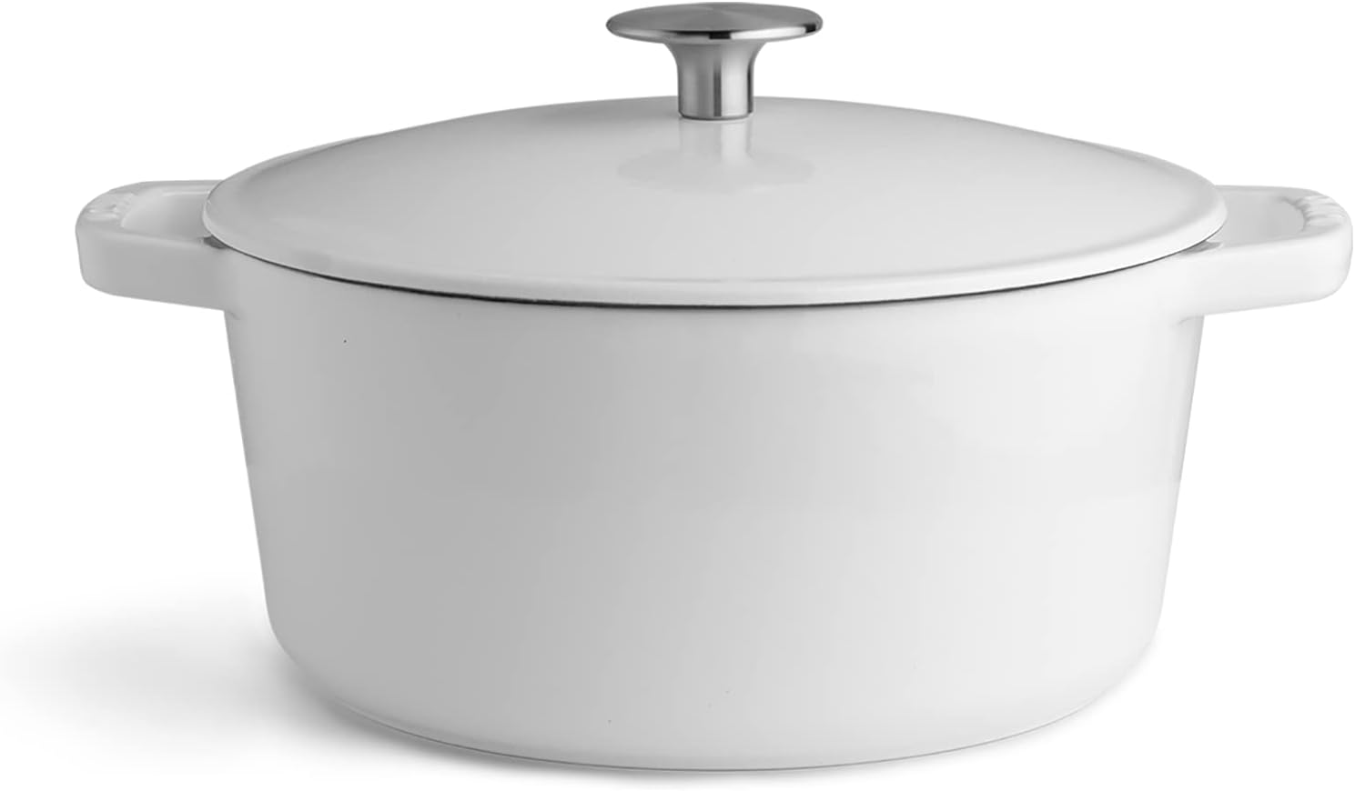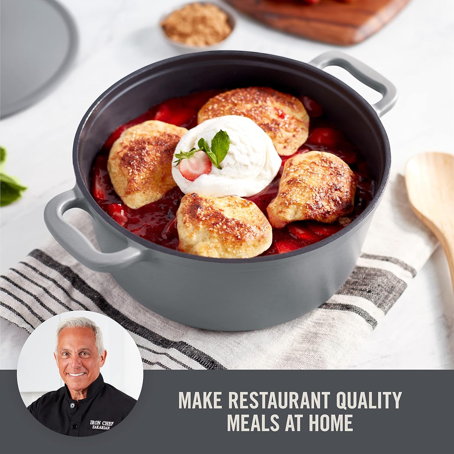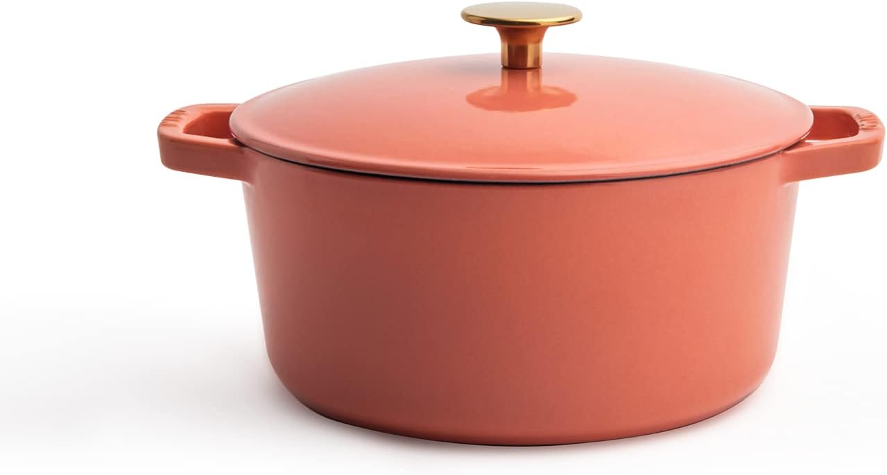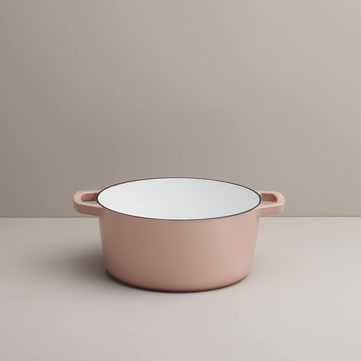 Milo by Kana 3.5-quart Enameled Cast Iron Dutch Oven with Lid | Premium Casserole Cooking Pot | Enamel Coating Inside and Out | Oven Safe and Dishwasher Friendly (Dusty Pink with Gold Knob)