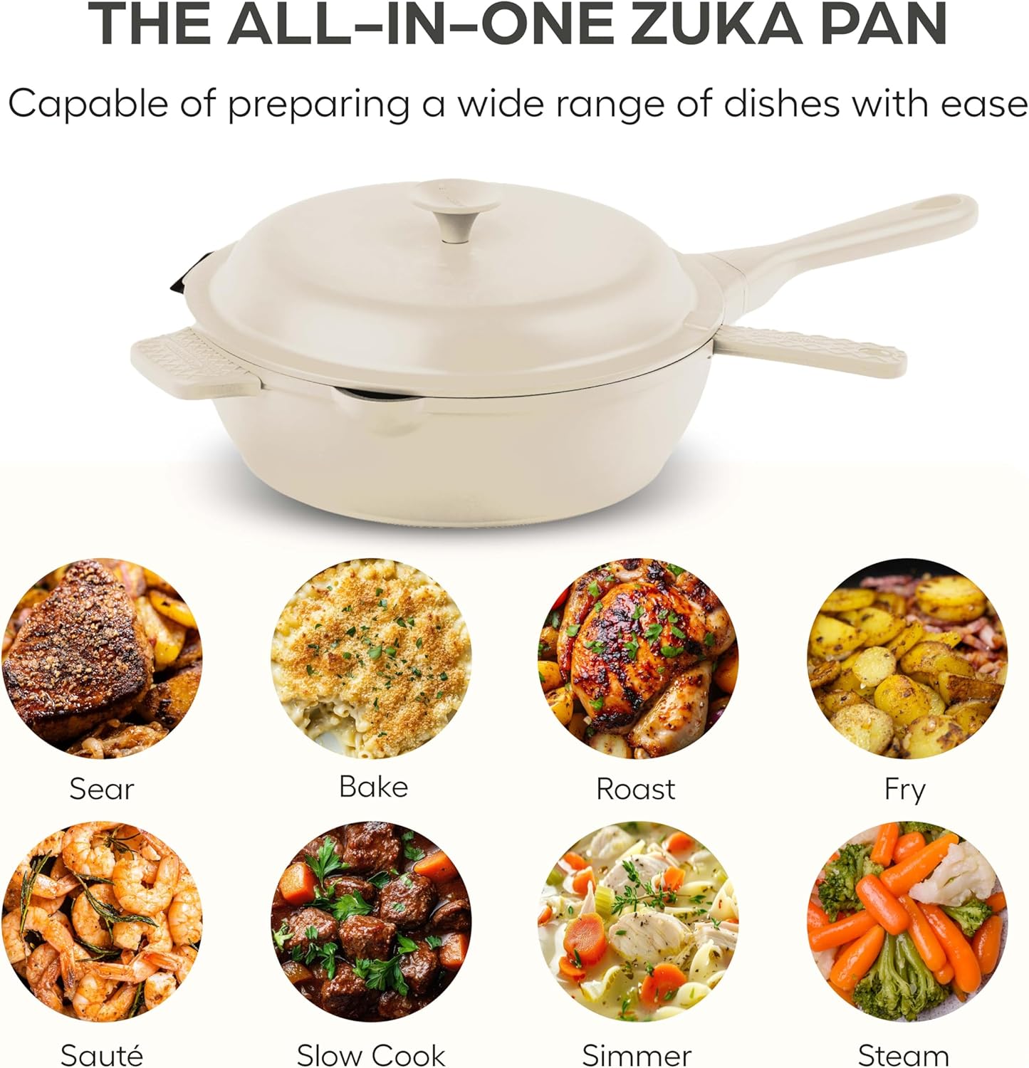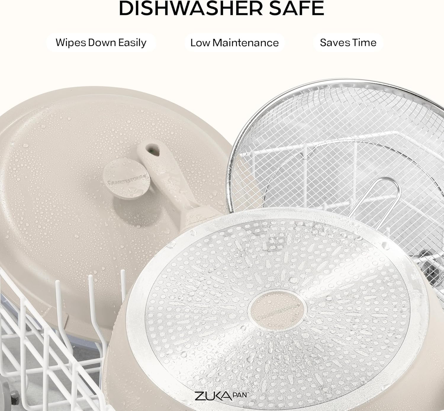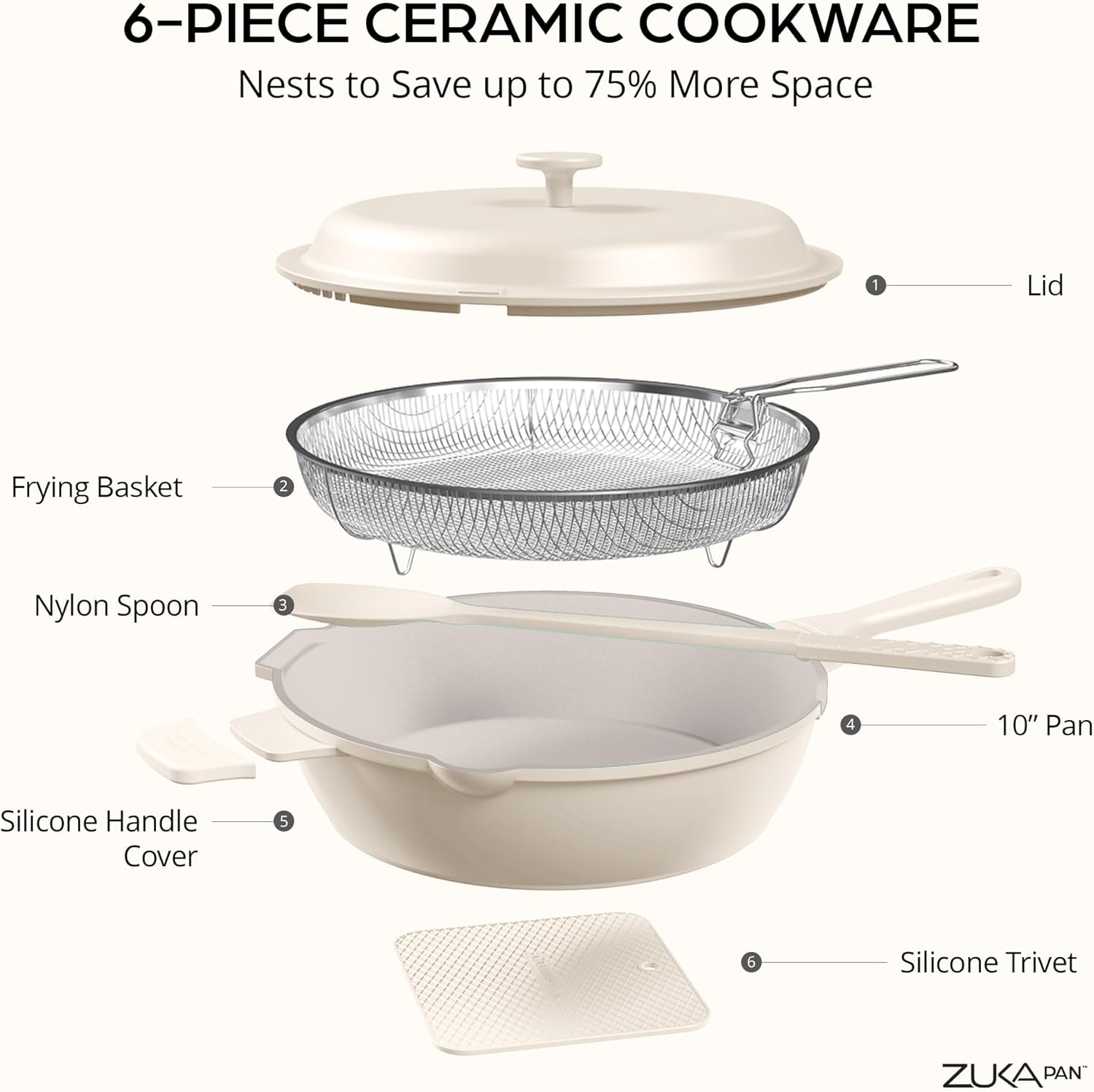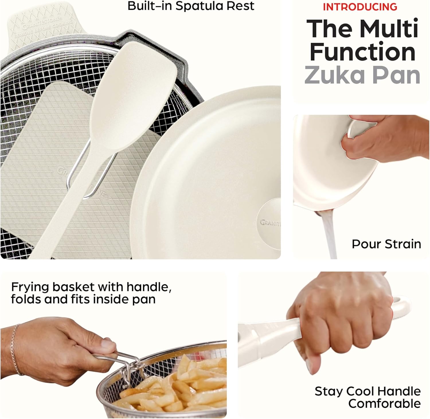 ZUKA 10 in 1 Ceramic Pan by Granitestone, Large 10 Inch Saute Pan with Lid Serves as Deep Frying Pan Set with Steamer, Everyday Skillet, Non Toxic Ceramic Nonstick, Induction Oven & Dishwasher Safe