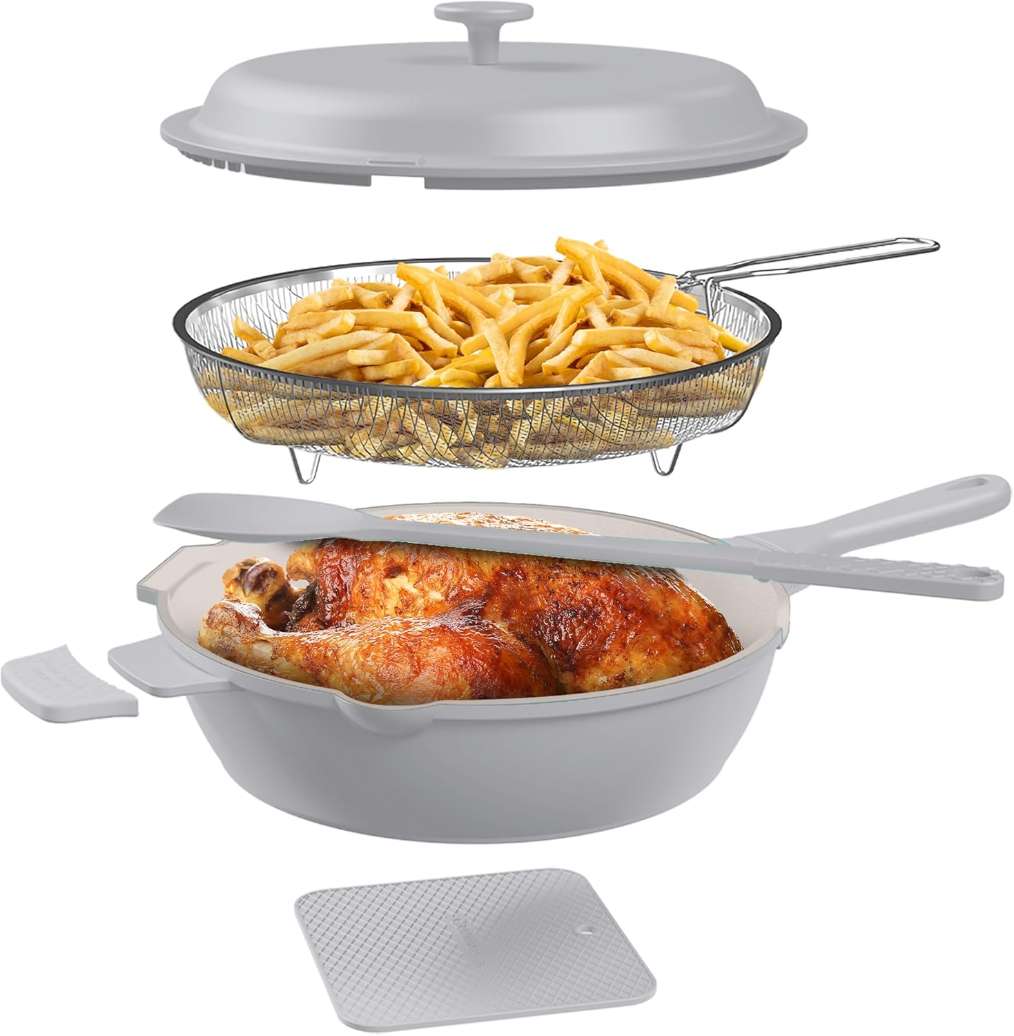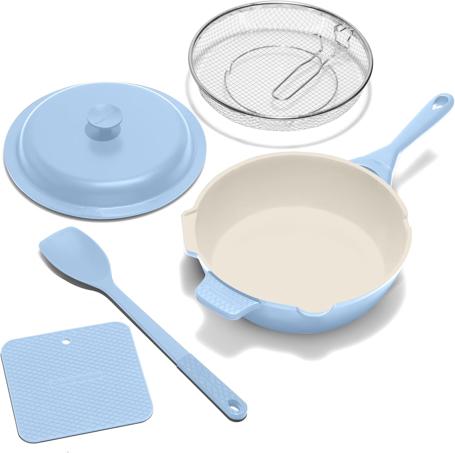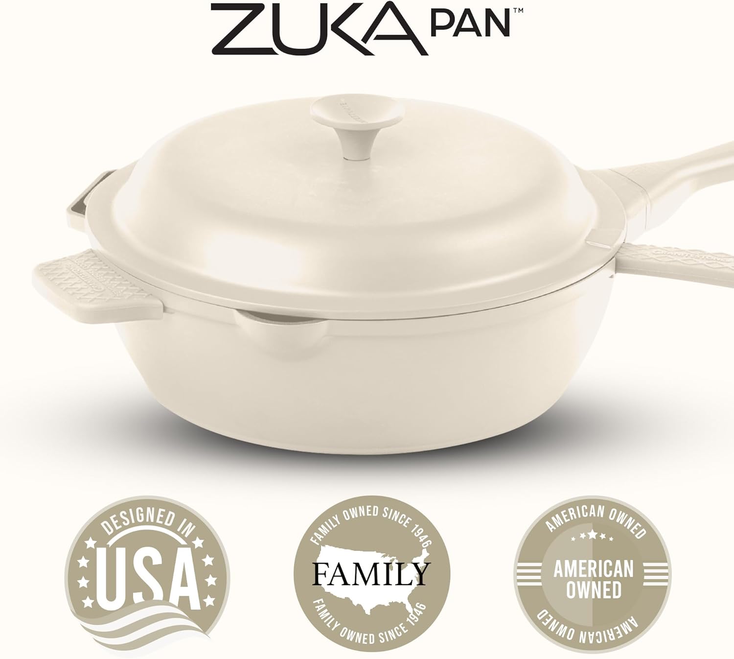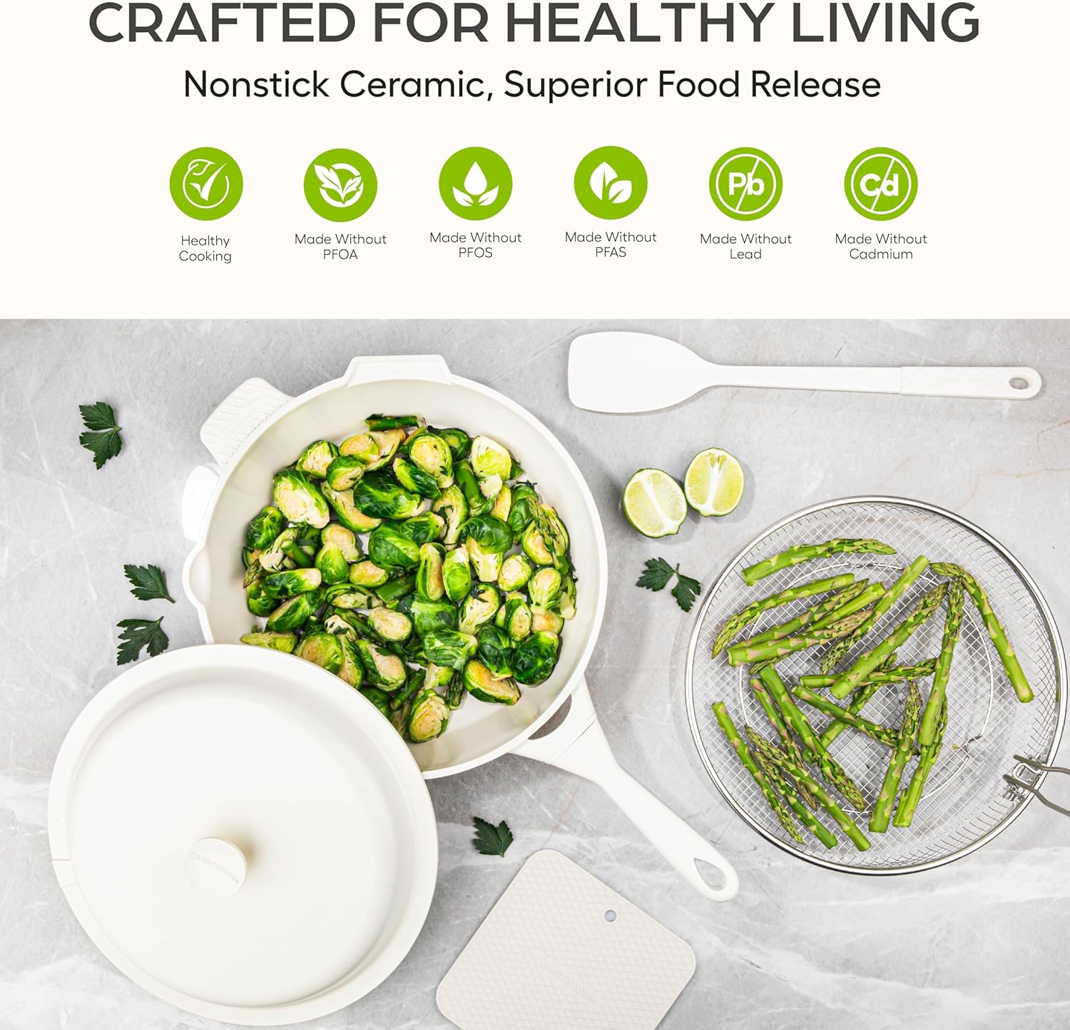 ZUKA 10 in 1 Ceramic Pan by Granitestone, Large 10 Inch Saute Pan with Lid Serves as Deep Frying Pan Set with Steamer, Everyday Skillet, Non Toxic Ceramic Nonstick, Induction Oven & Dishwasher Safe