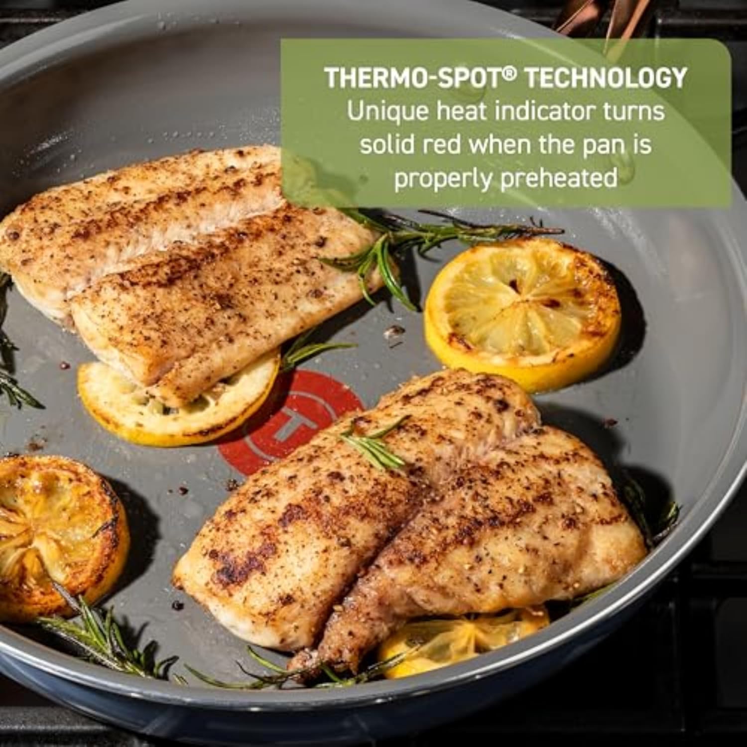 T-Fal Preserve Ceramic Nonstick Frying Pan 2-Pc Set, 8.5" & 11", Oven Broiler Safe up to 350°F Cookware, InoCeram Glide Technology, Frying Pan Skillet, Pots & Pans, Blue