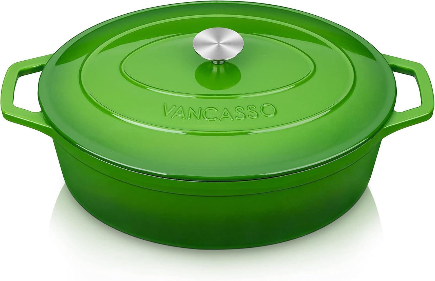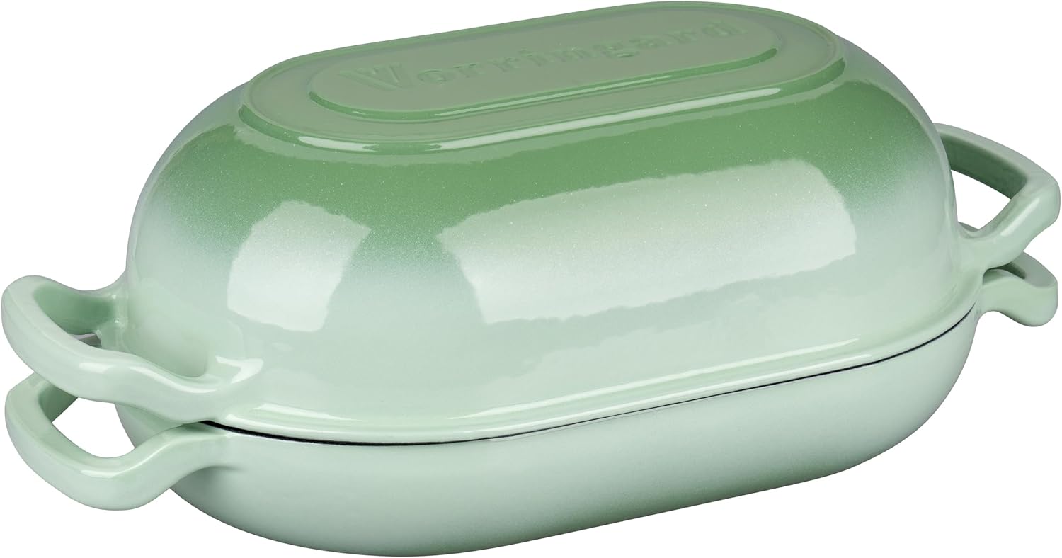 Enameled Cast Iron Sourdough Bread Oven, Dutch Oven, Loaf Cast Iron Bread Pan for Homemade Bread Baking, Meatloaf Pan with Lid, 5QT, Green