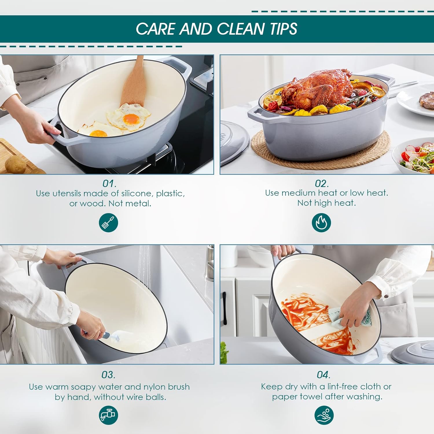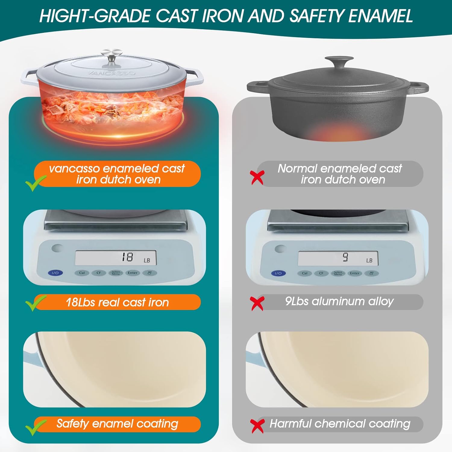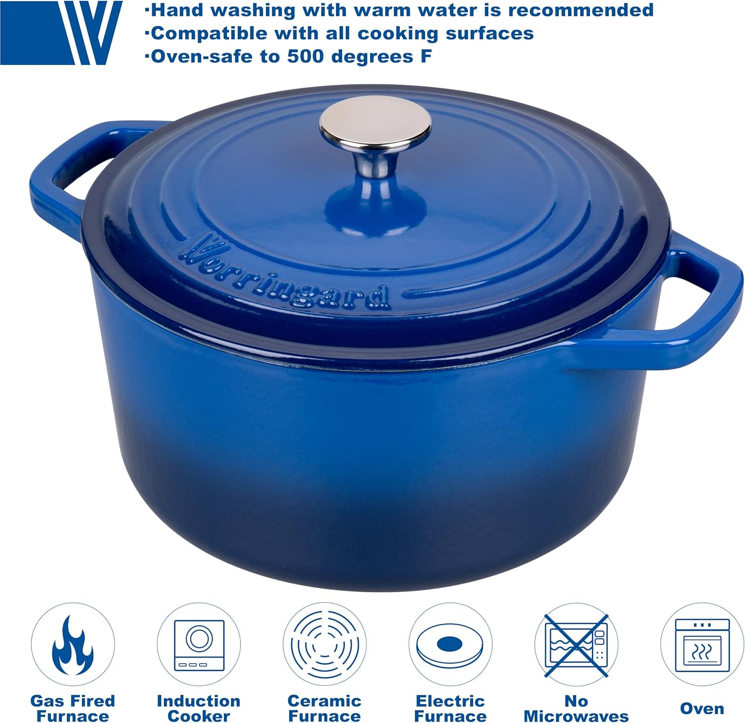 Enameled Cast Iron Dutch Oven Pot with Lid, for Bread Baking, Round Bread Oven- include Sourdough Bread Baking Supplies Set, 6QT, Blue