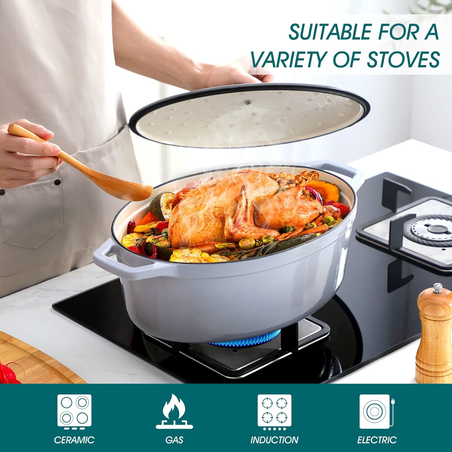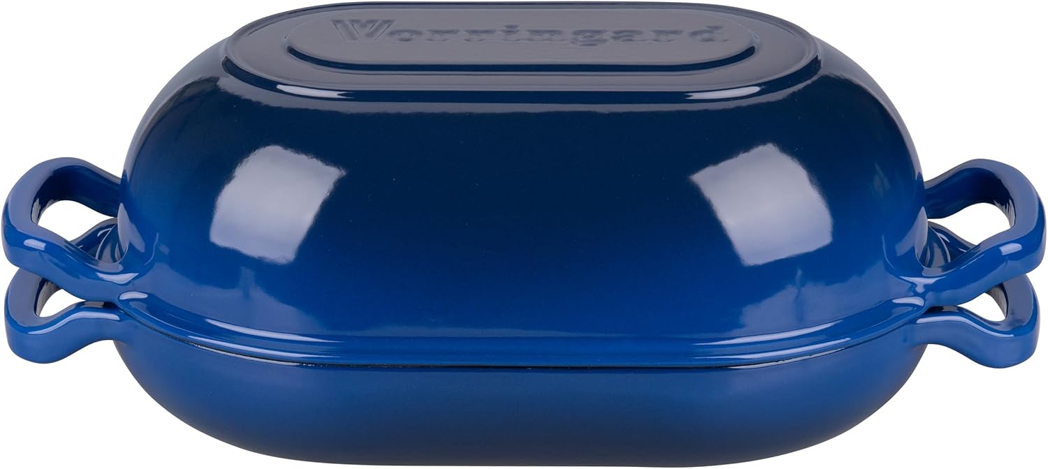 Enameled Cast Iron Sourdough Bread Oven, Dutch Oven, Loaf Cast Iron Bread Pan for Homemade Bread Baking, Meatloaf Pan with Lid, 5QT, Blue