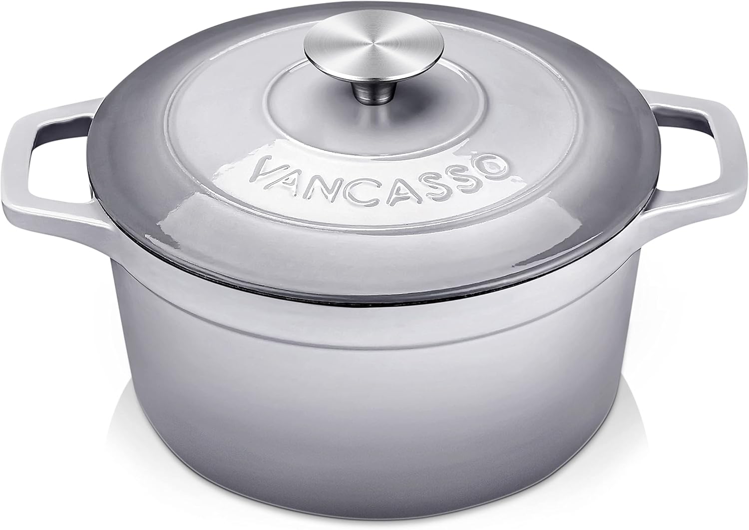 Enamelled Cast Iron Dutch Oven Pot – Dutch Oven For Sourdough Bread Baking – Cast Iron Bread Pot – Black, 6 Quarts, 26cm – by Nuovva