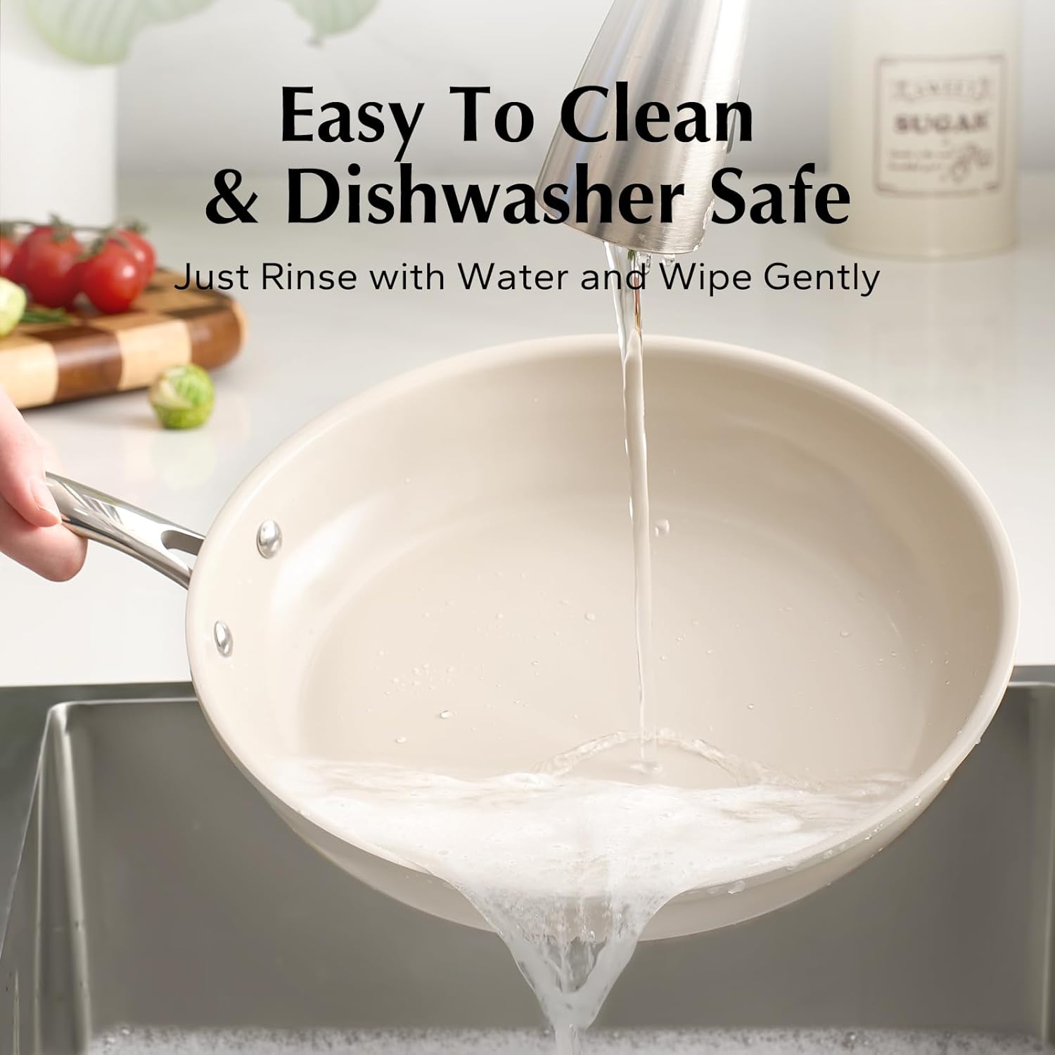 Redchef Nonstick Frying Pans Set, Ceramic Pan Skillet, Non Toxic Pans for Cooking, 8" 9.5" 11" Ceramic Frying Pan Set PFAS & PTFE & PFOA Free with Stay Cool Handle, Dishwasher & Oven Safe, Beige White