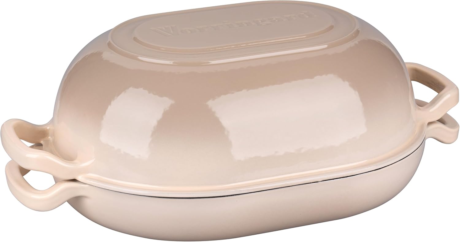 Enameled Cast Iron Sourdough Bread Oven, Dutch Oven, Loaf Cast Iron Bread Pan for Homemade Bread Baking, Meatloaf Pan with Lid, 5QT, Latte